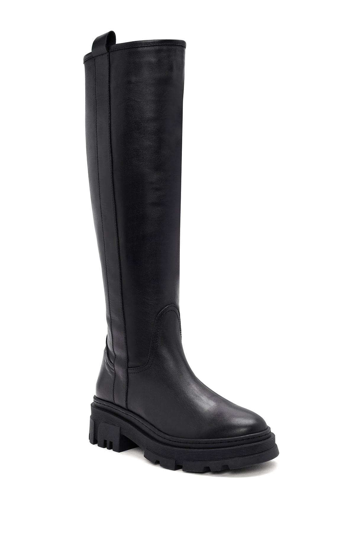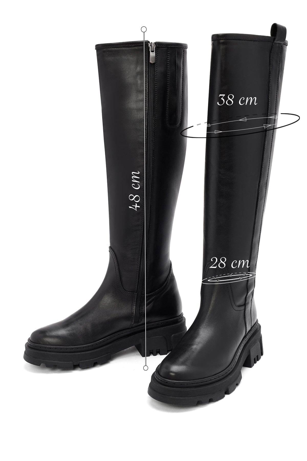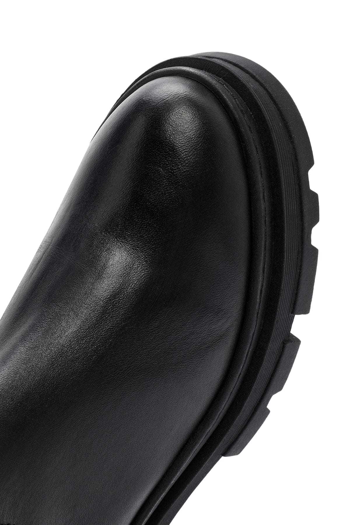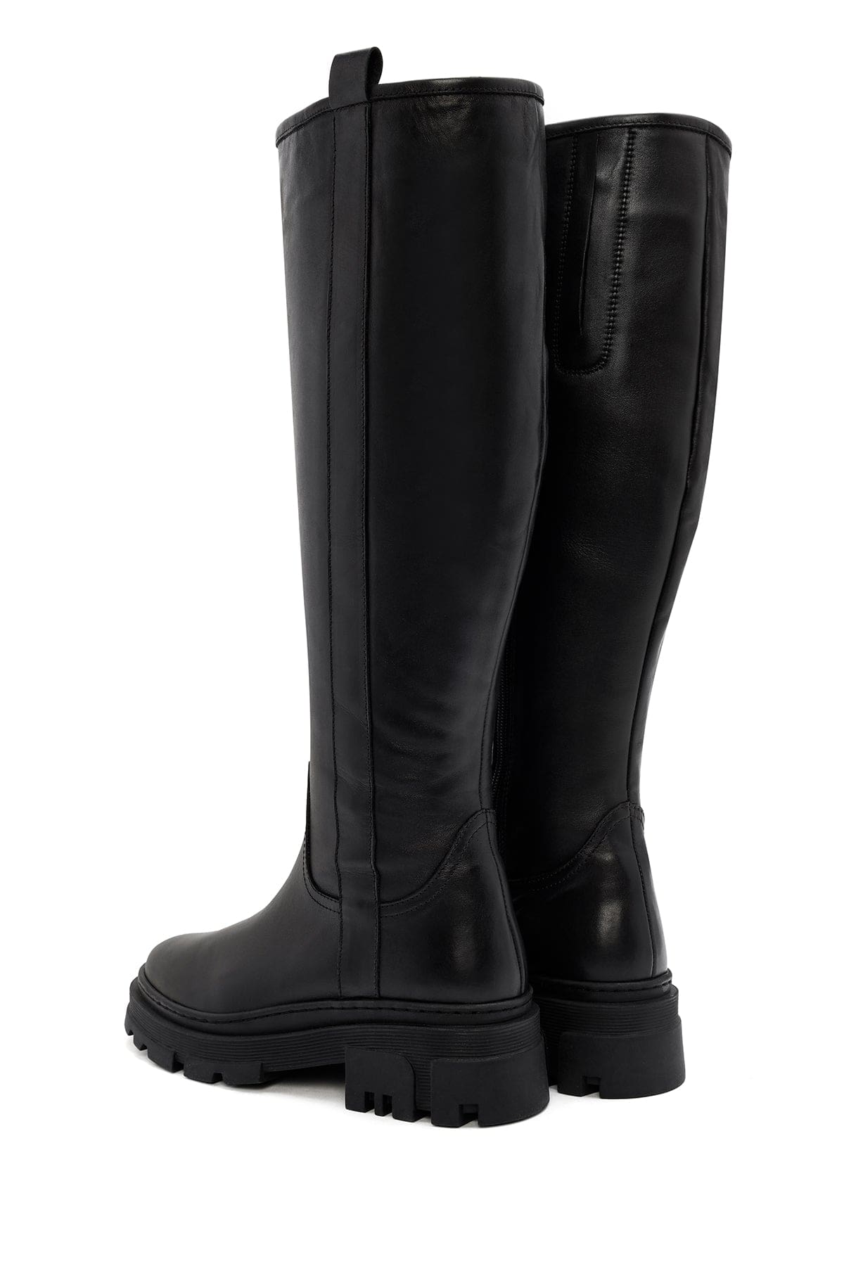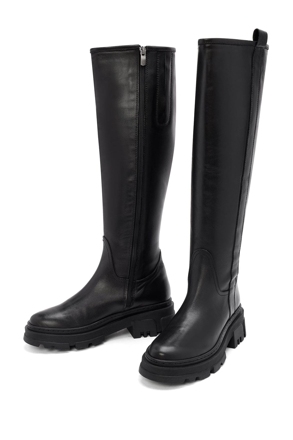 Kadın Siyah Fermuarlı Kalın Tabanlı Deri Çizme