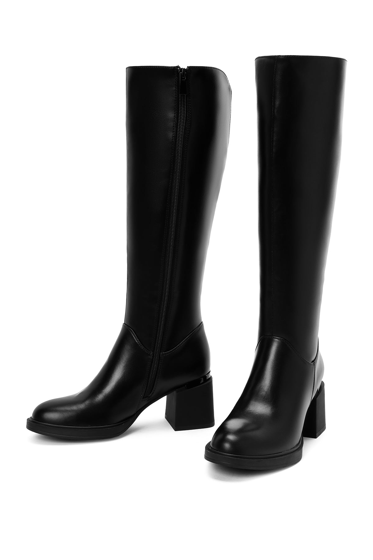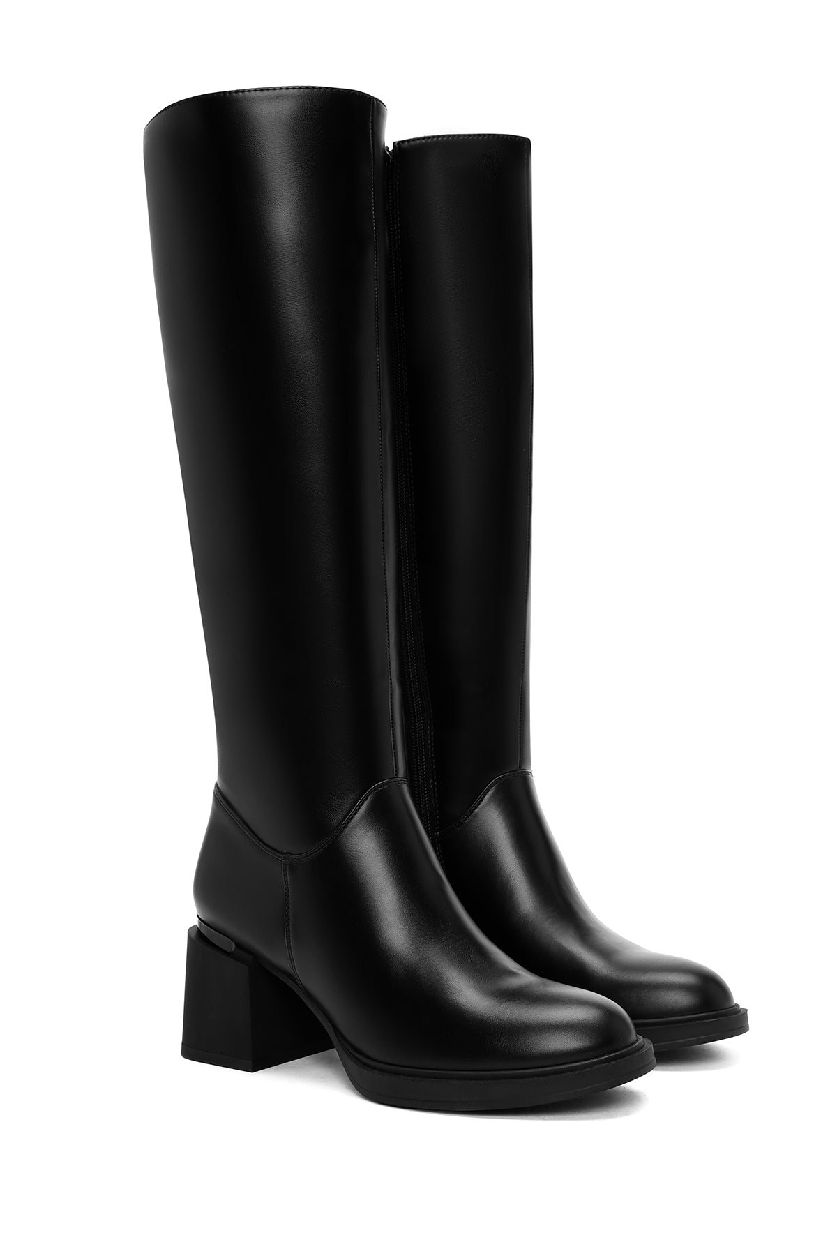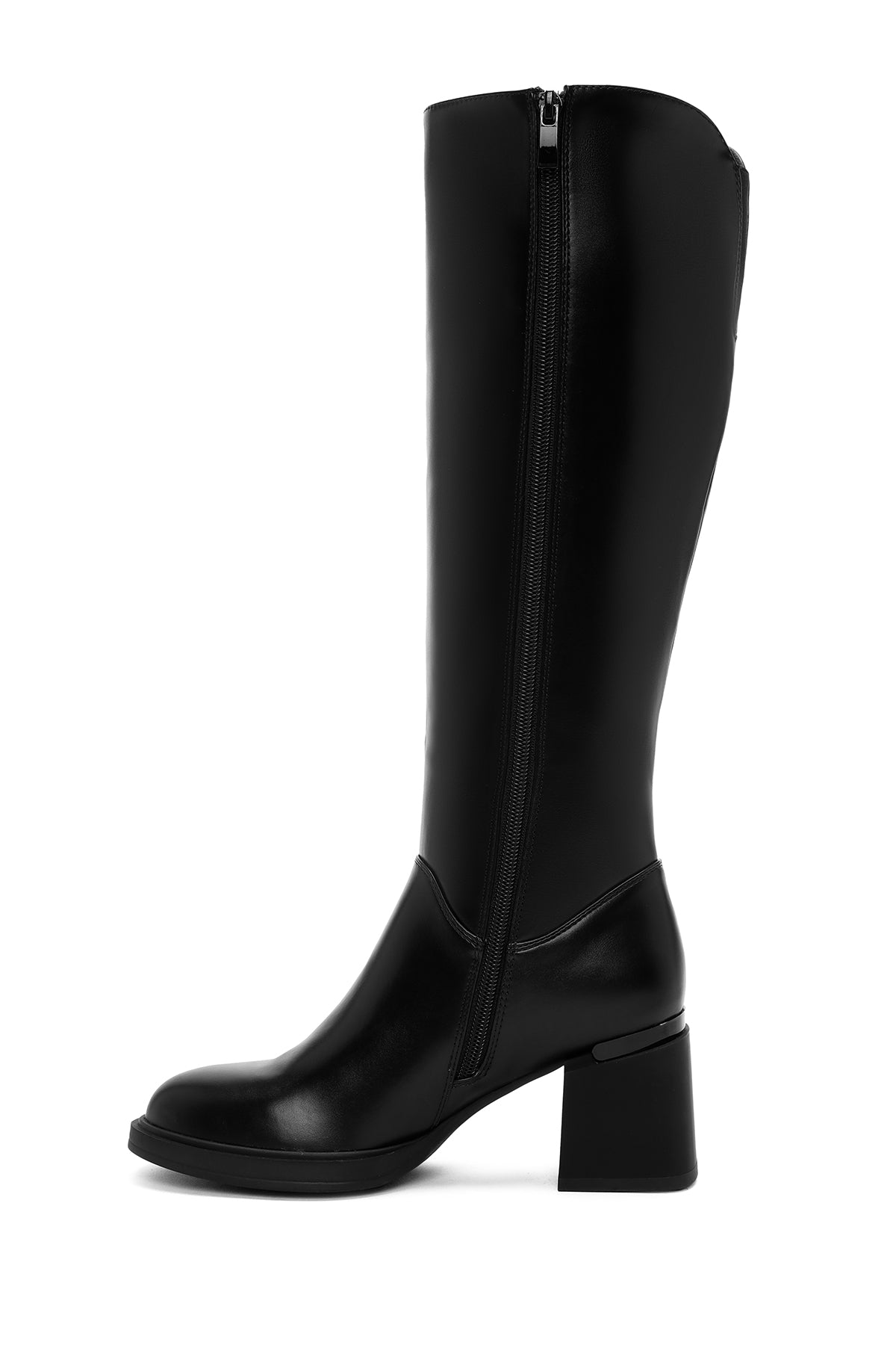 Kadın Siyah Fermuarlı Kalın Topuklu Çizme