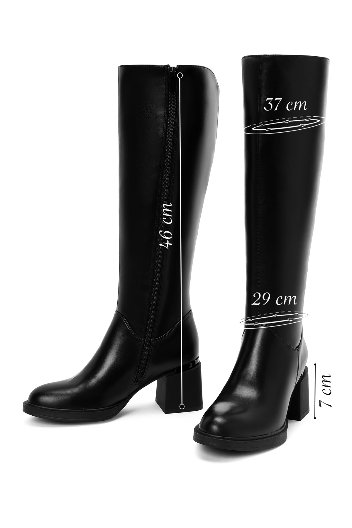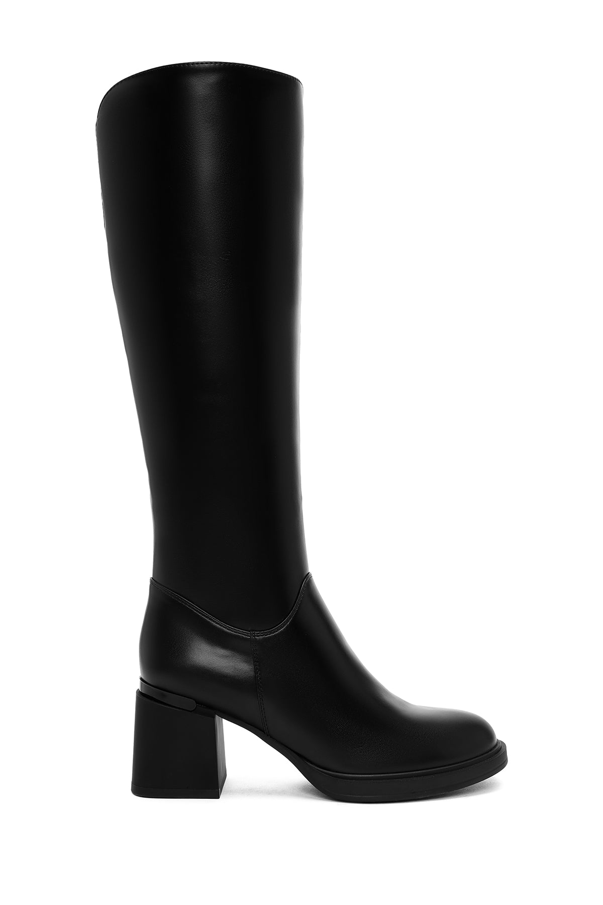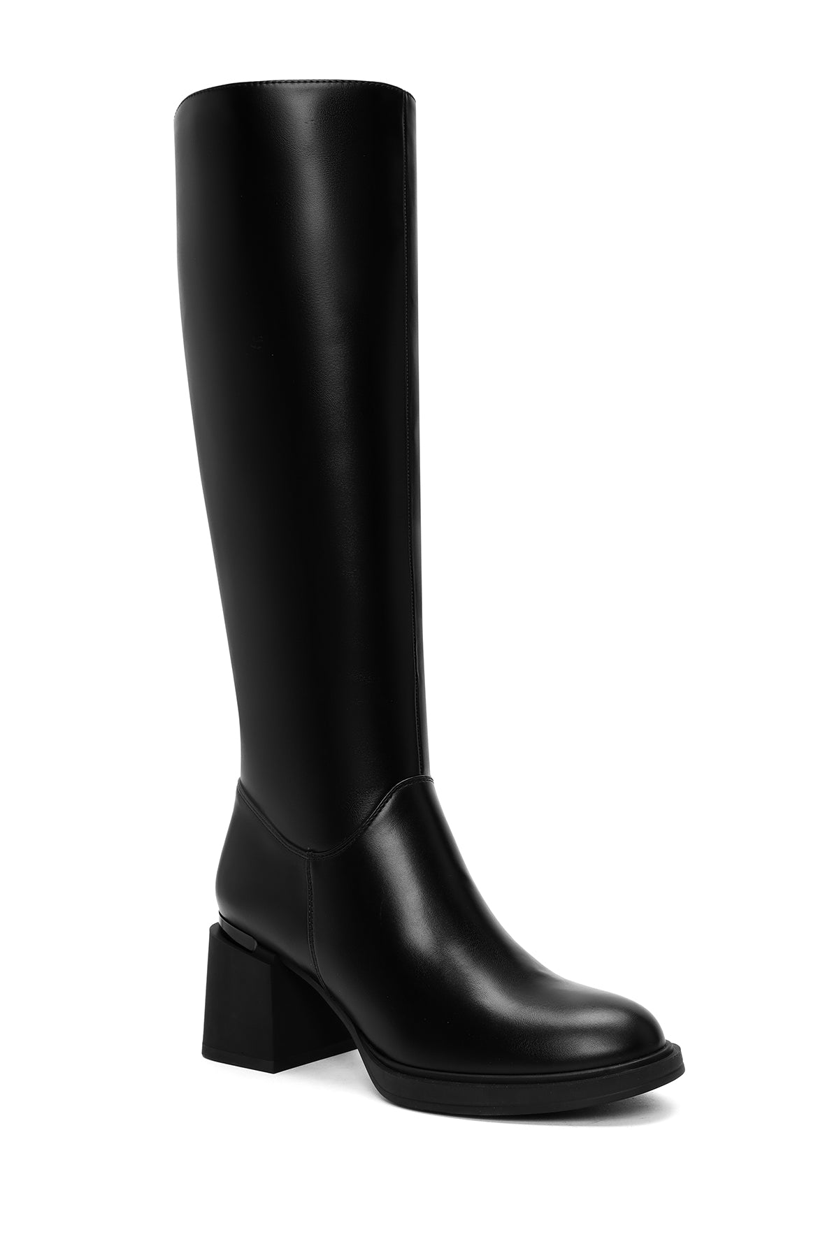 Kadın Siyah Fermuarlı Kalın Topuklu Çizme