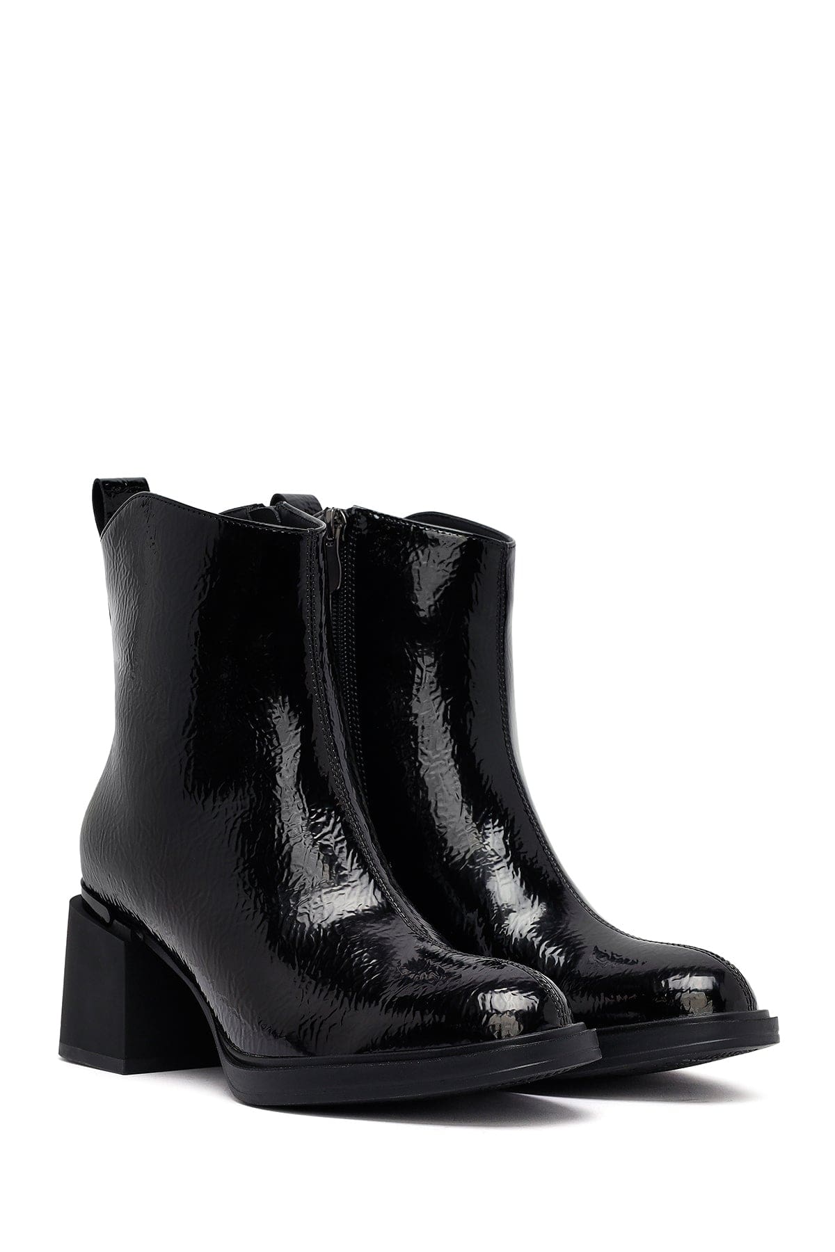 Kadın Siyah Fermuarlı Kalın Topuklu Bot