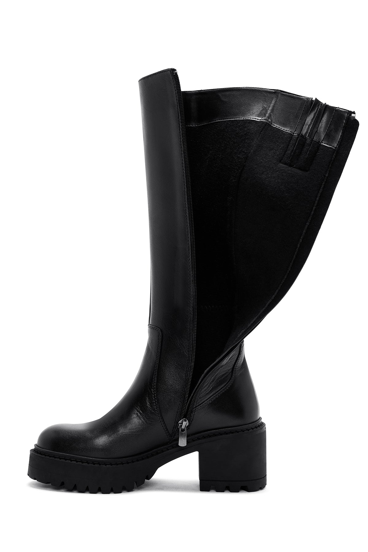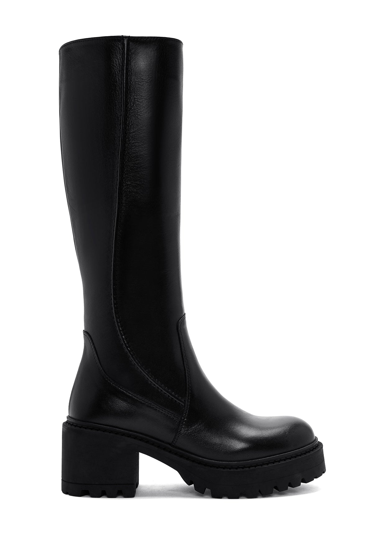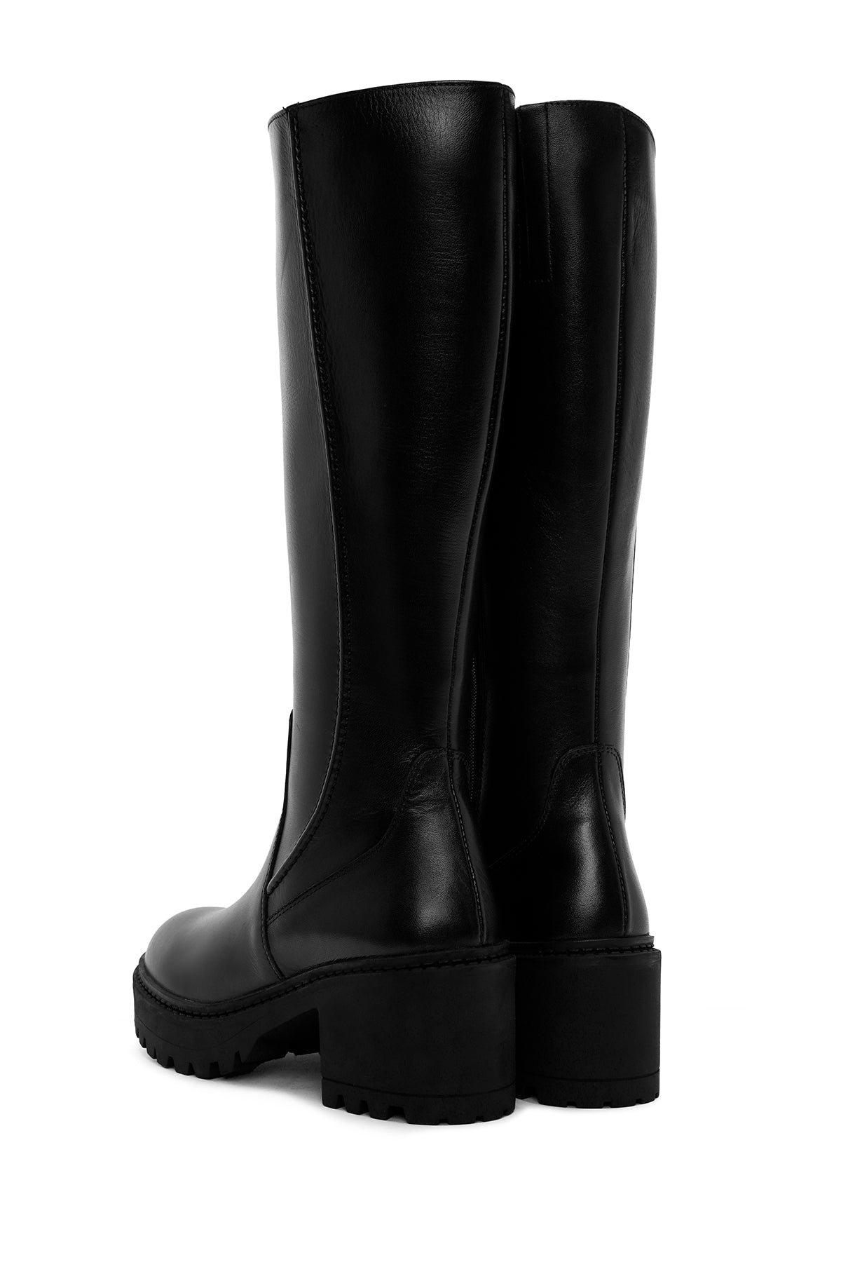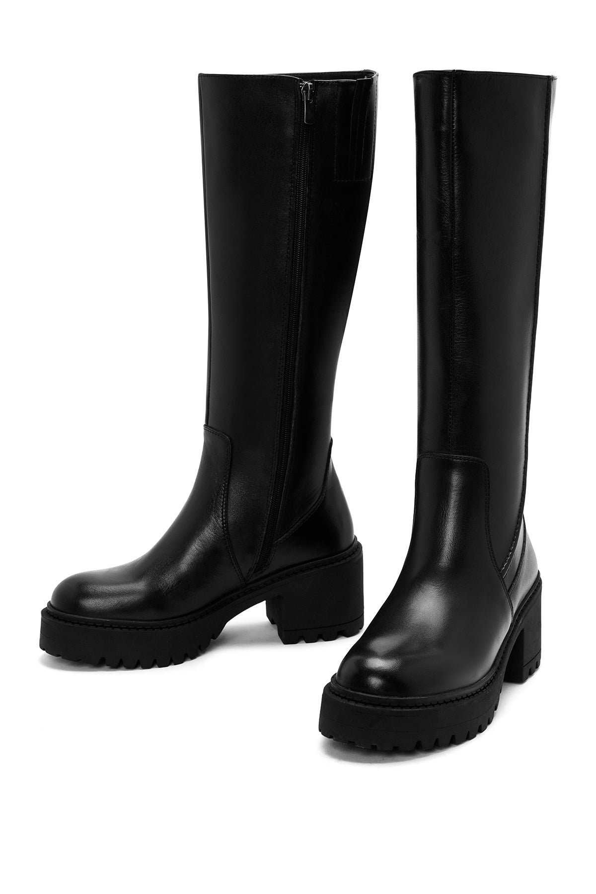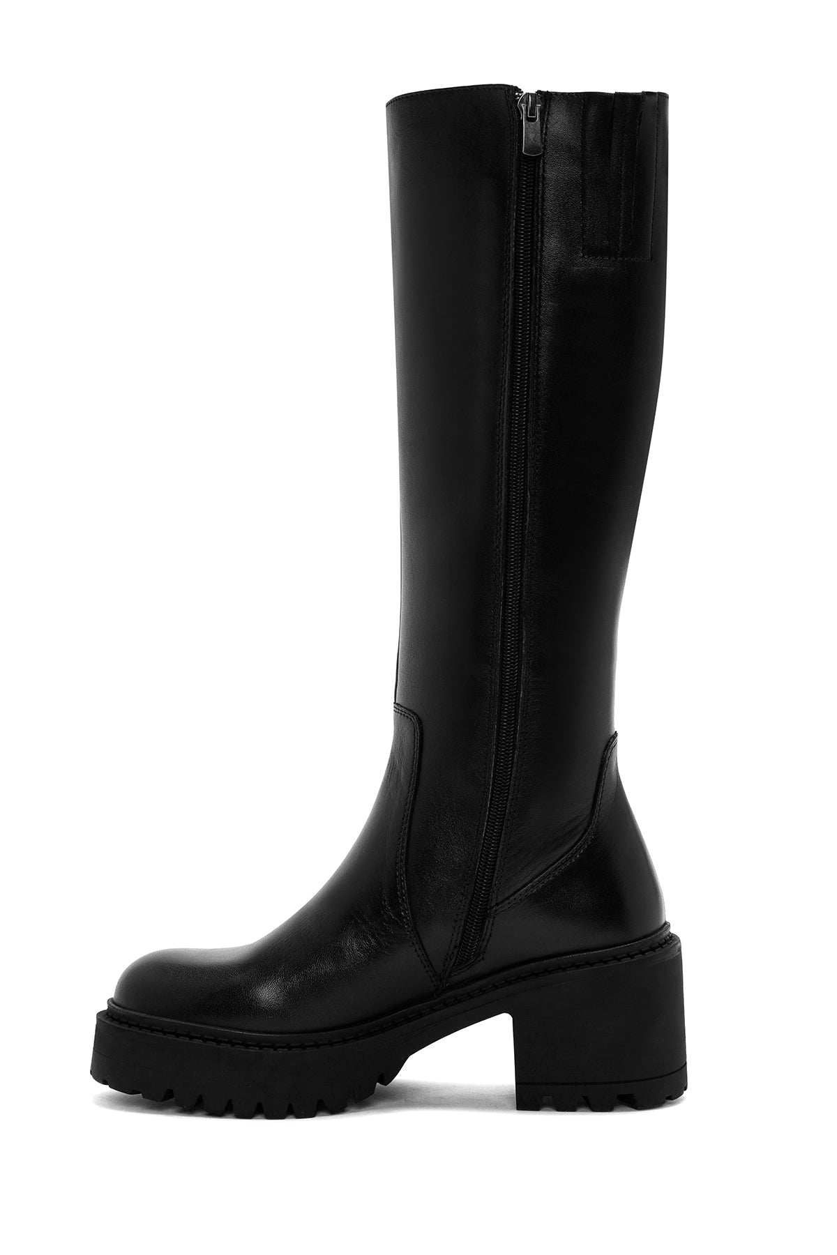 Kadın Siyah Fermuarlı Kalın Topuklu Deri Çizme