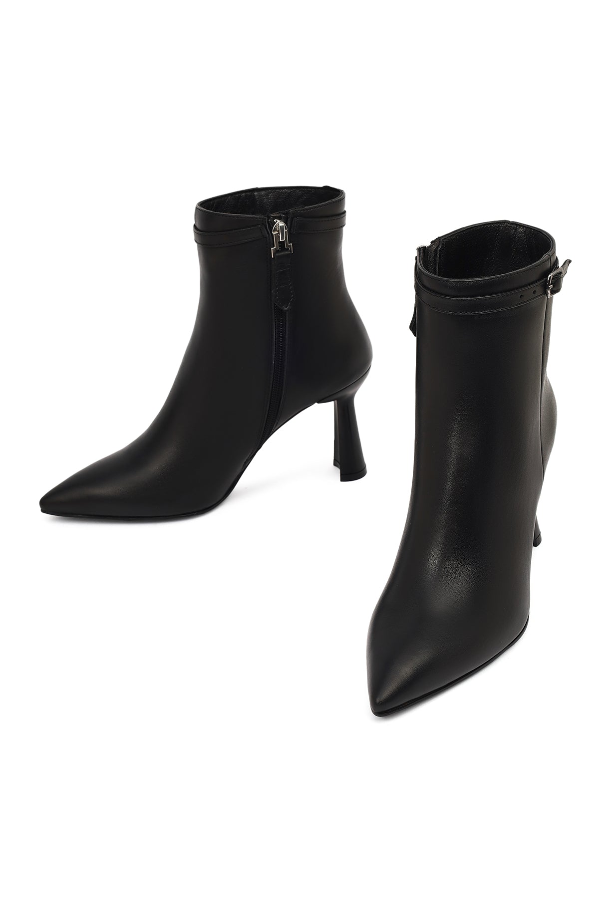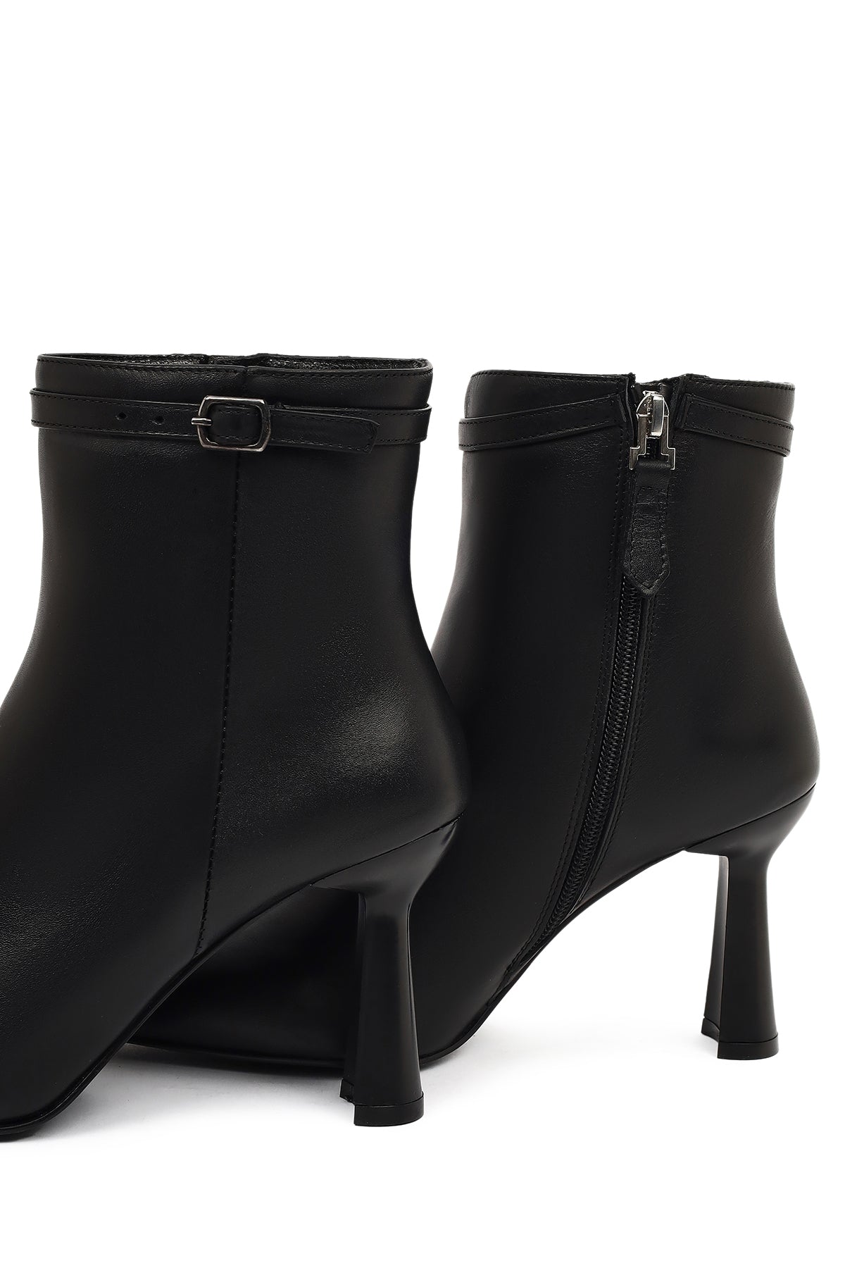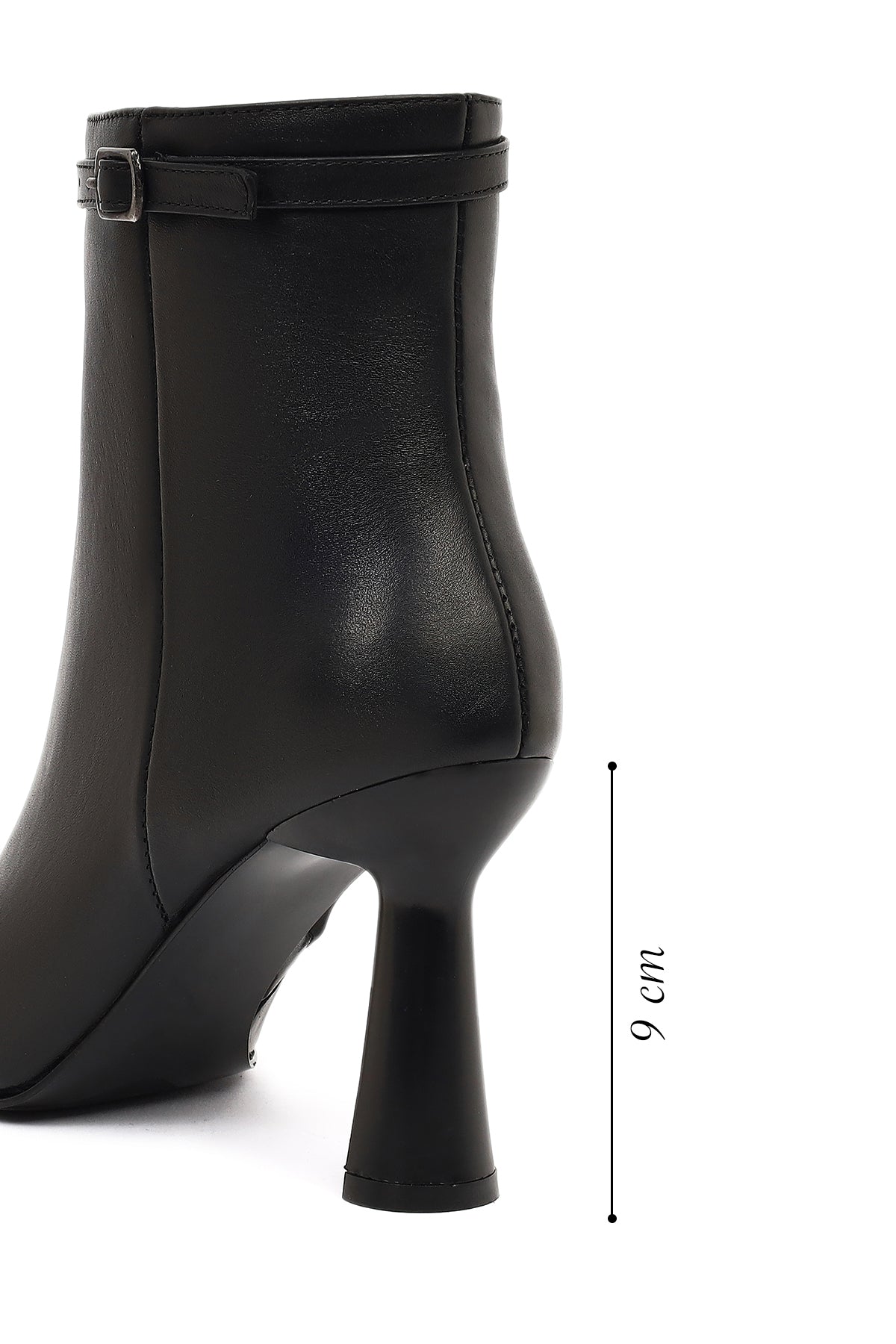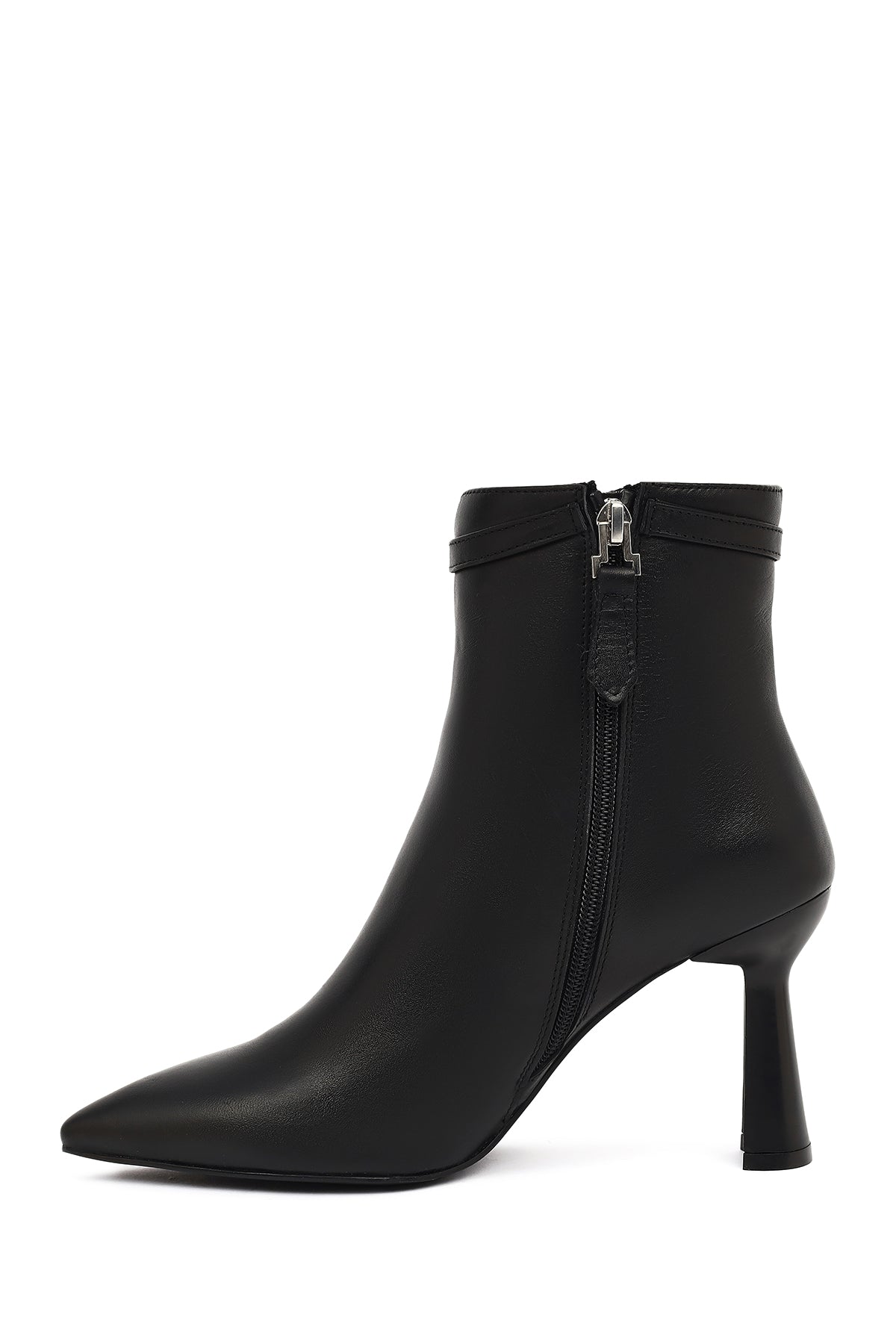 Kadın Siyah Fermuarlı Topuklu Deri Bot