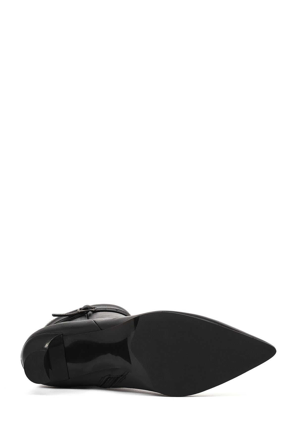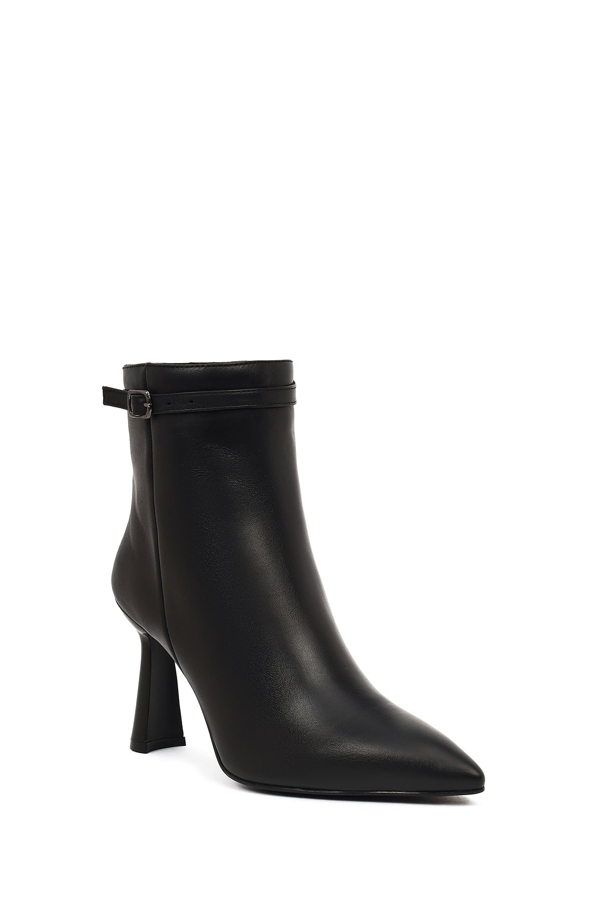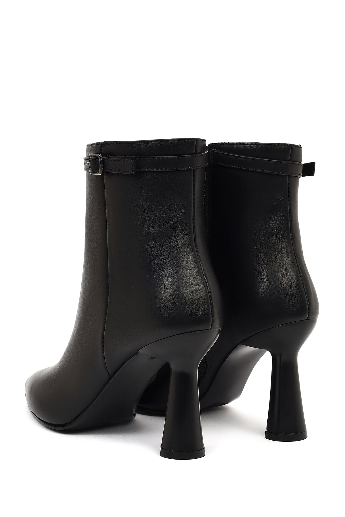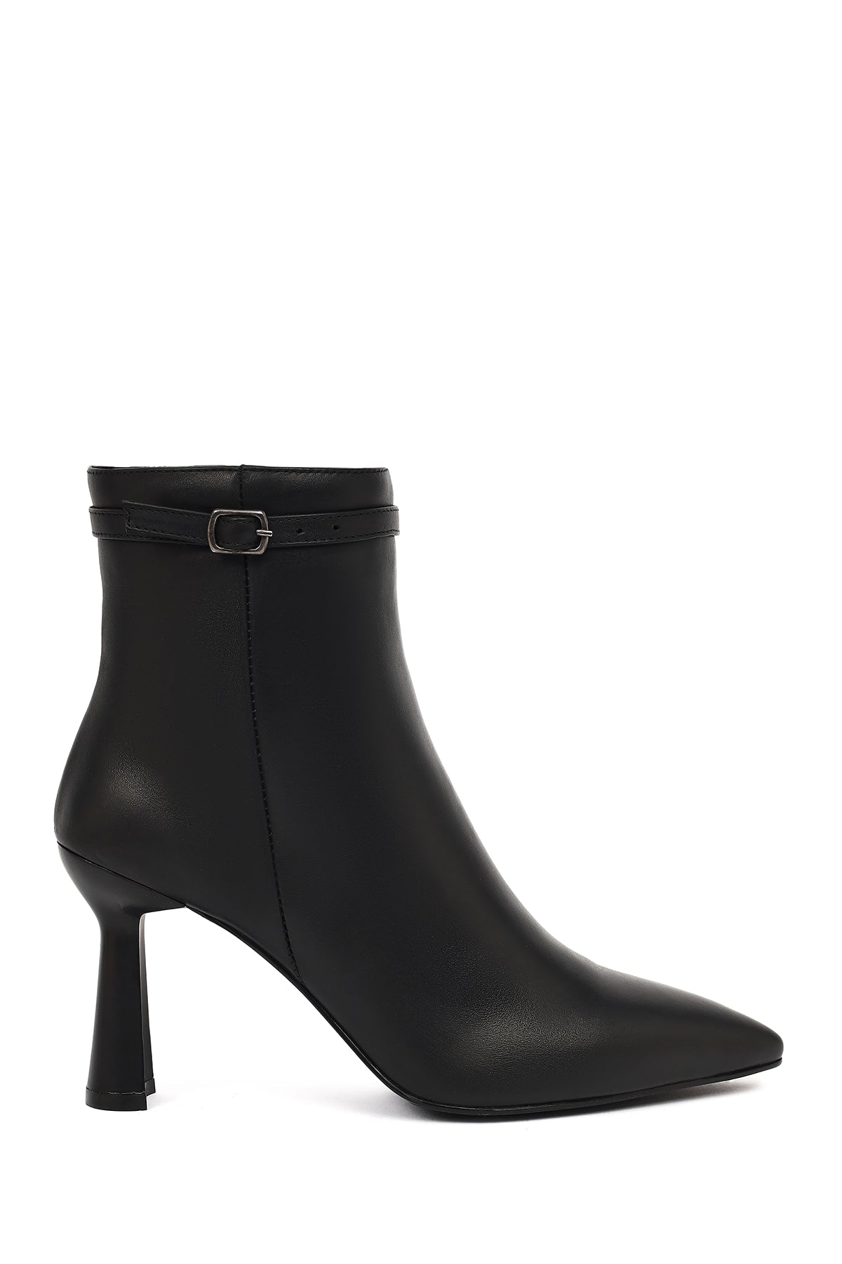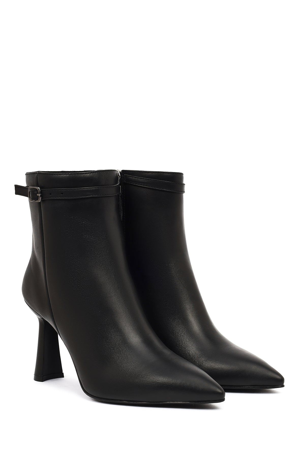 Kadın Siyah Fermuarlı Topuklu Deri Bot