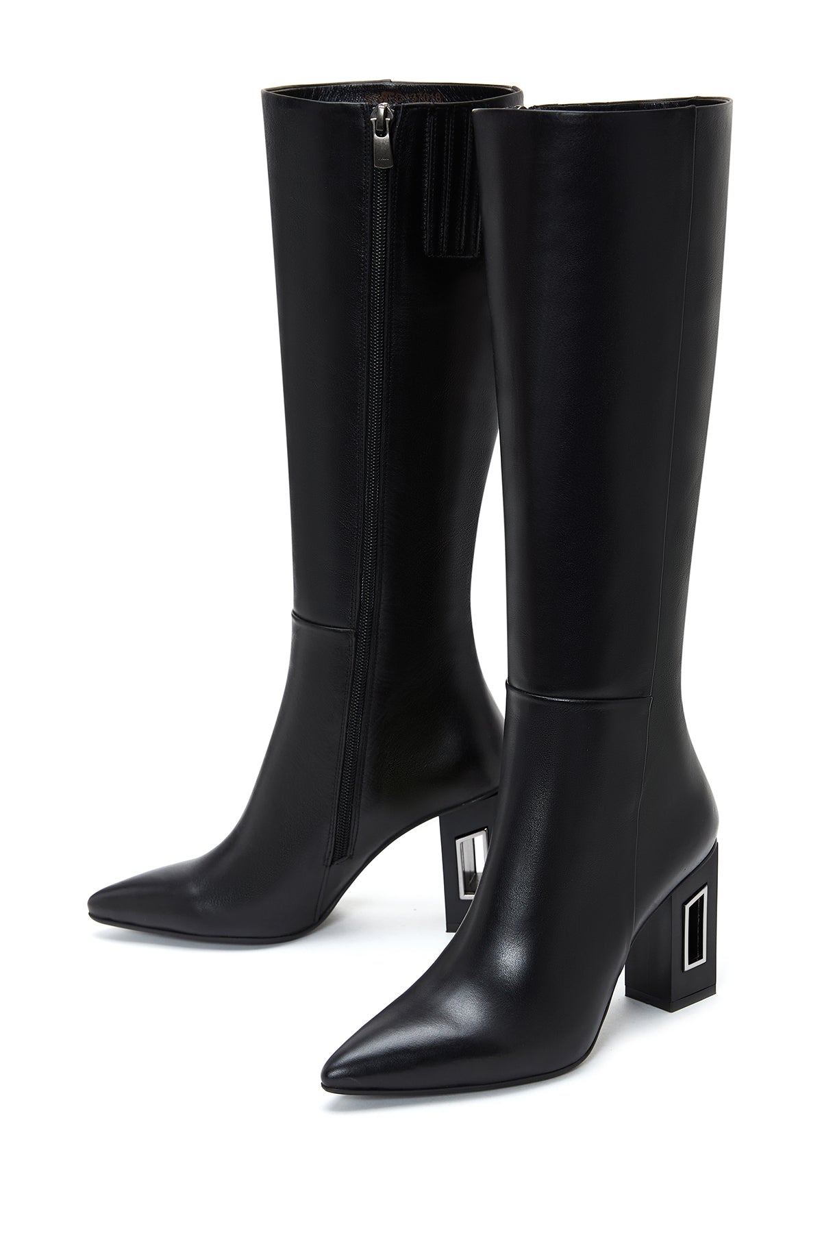 Kadın Siyah Fermuarlı Topuklu Deri Çizme