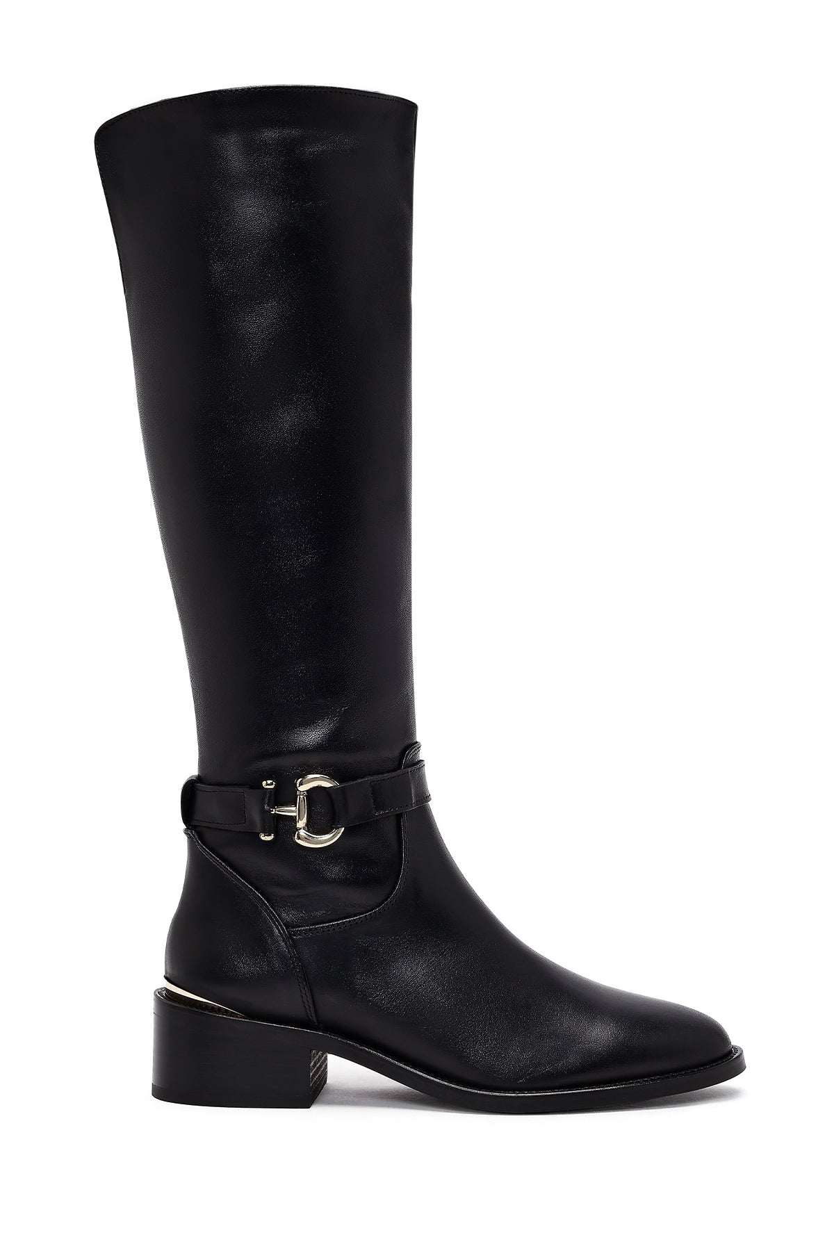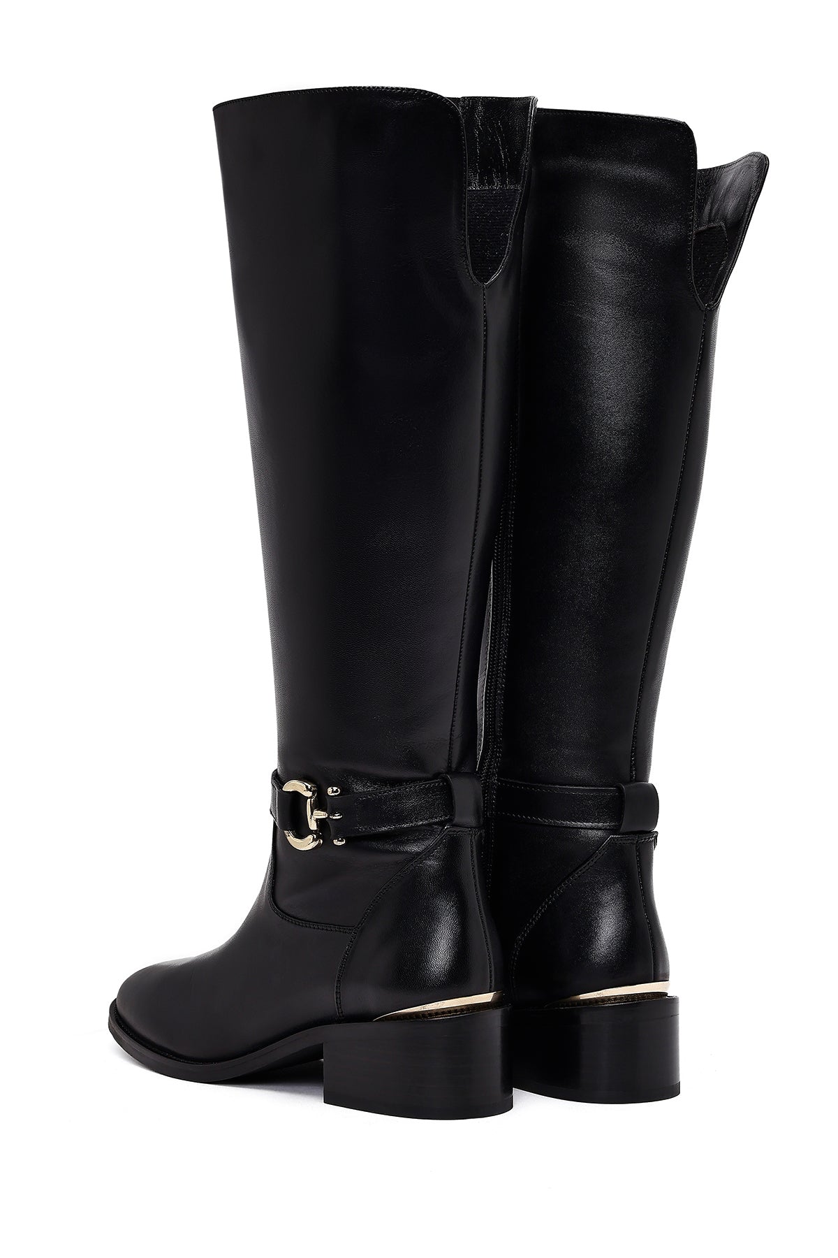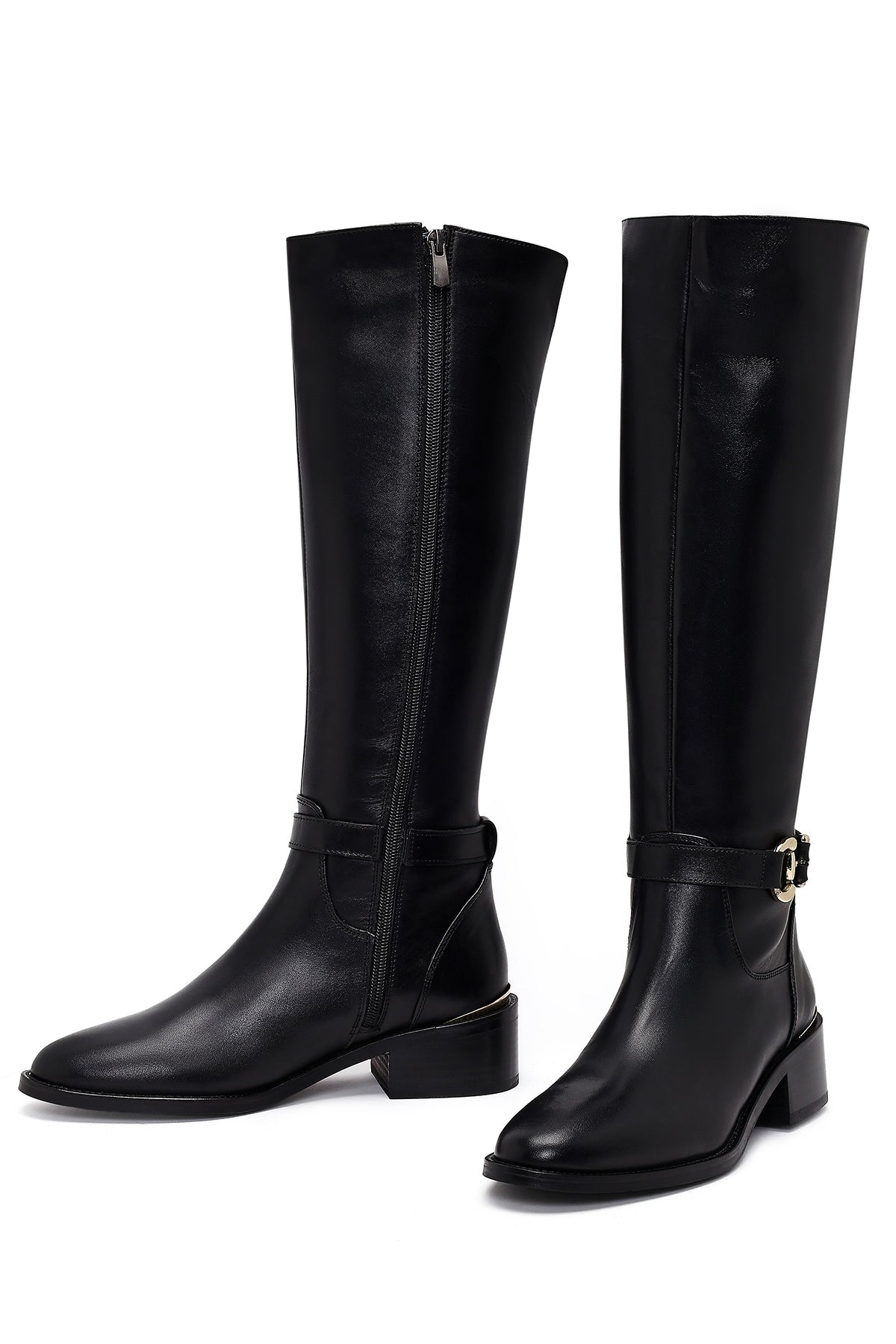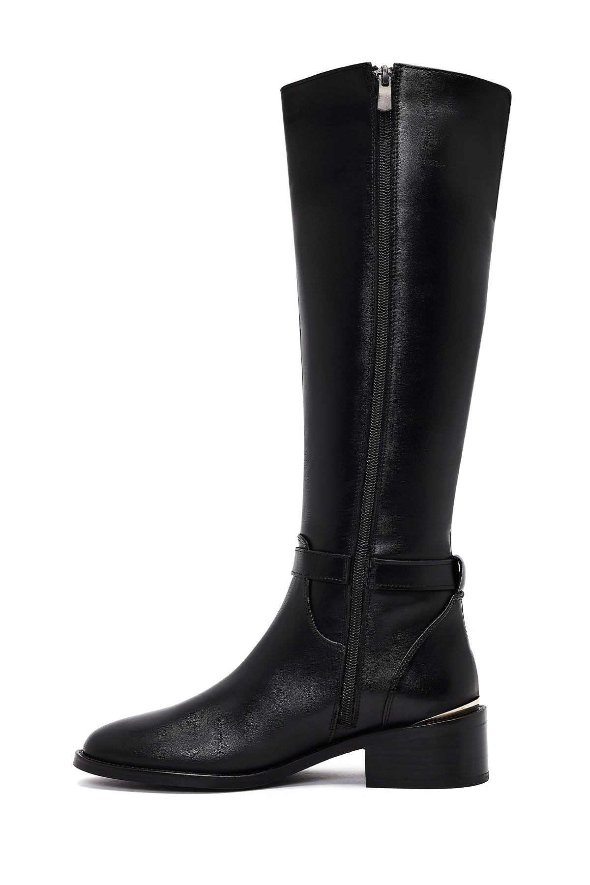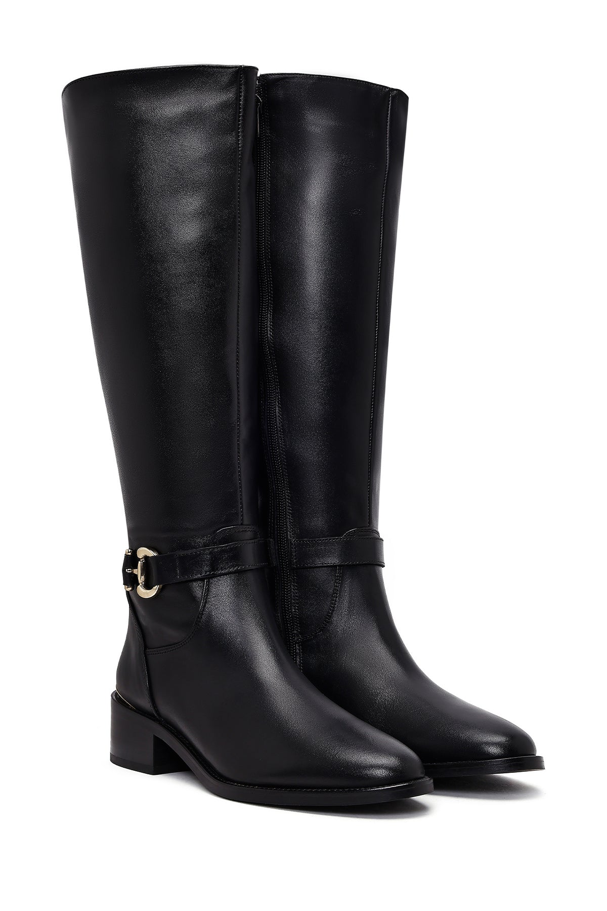 Kadın Siyah Fermuarlı Deri Çizme