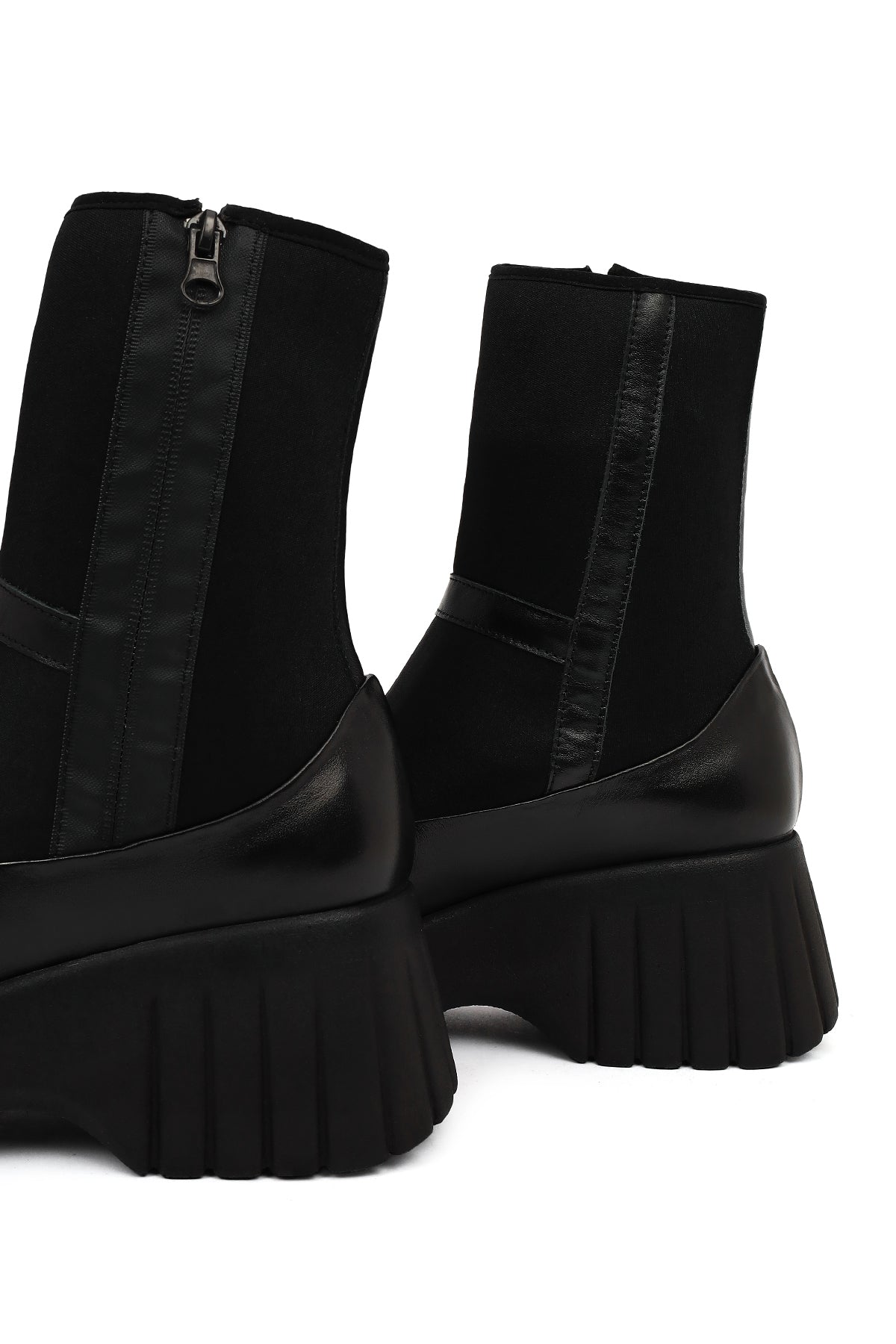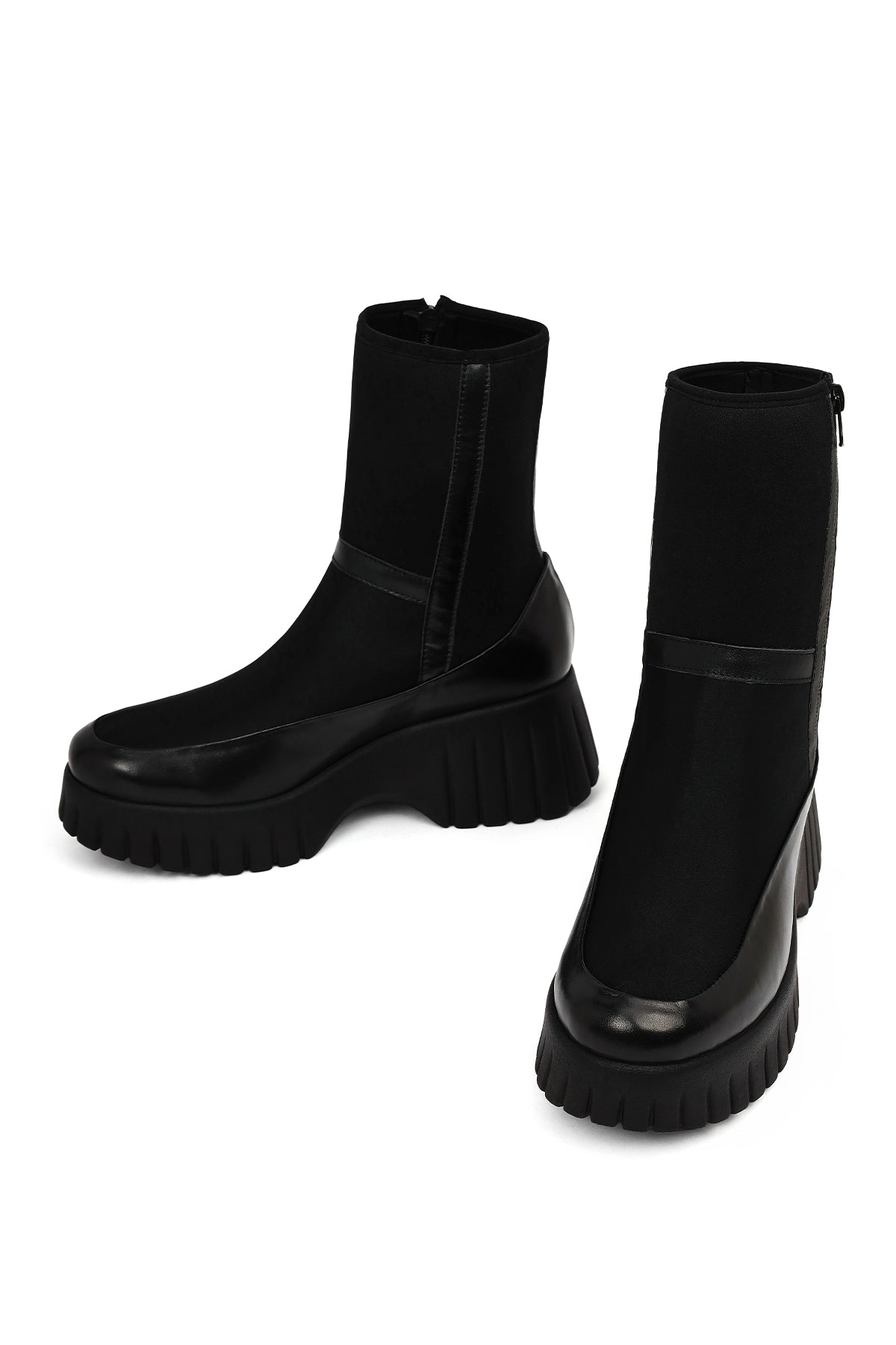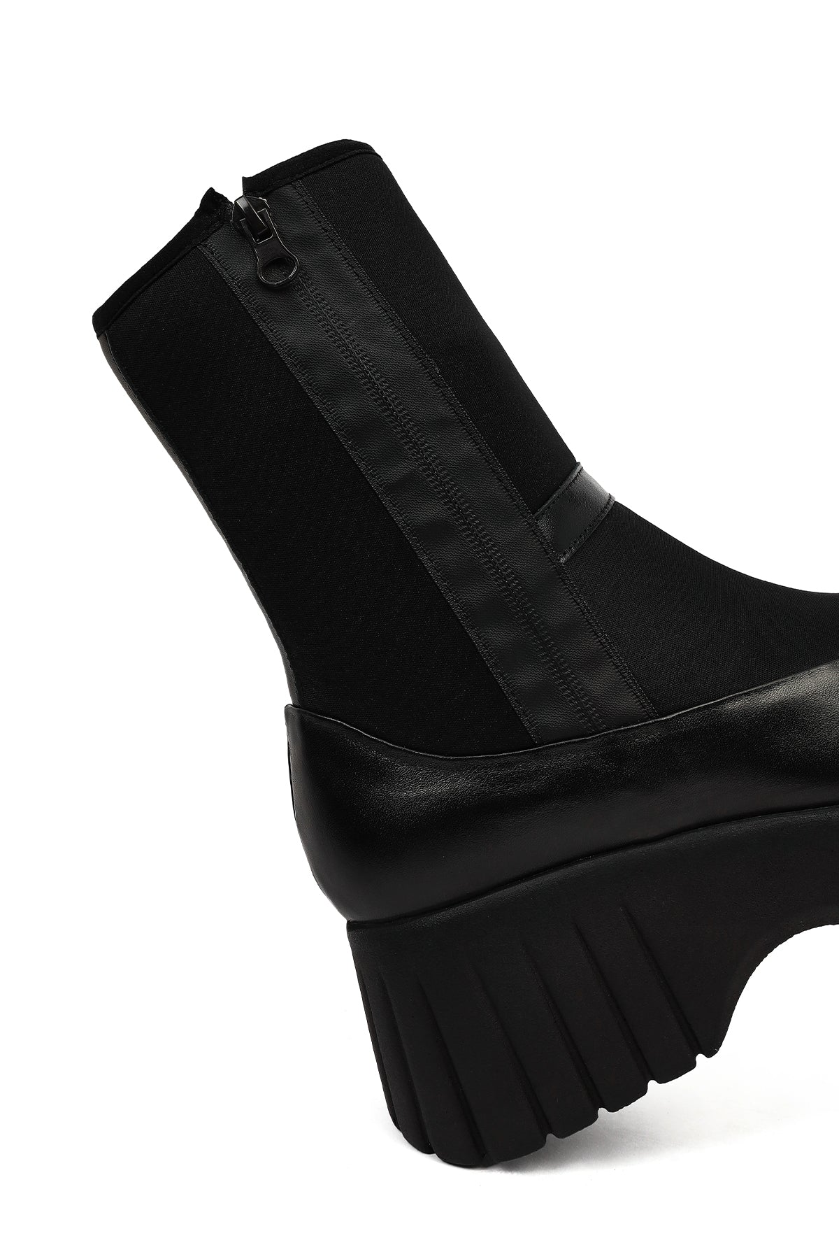 Kadın Siyah Fermuarlı Kalın Tabanlı Deri Bot