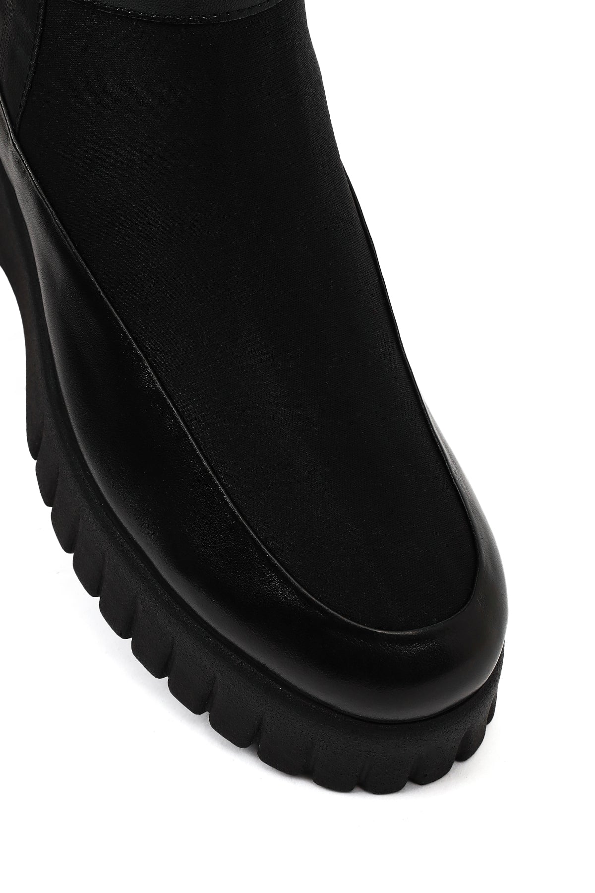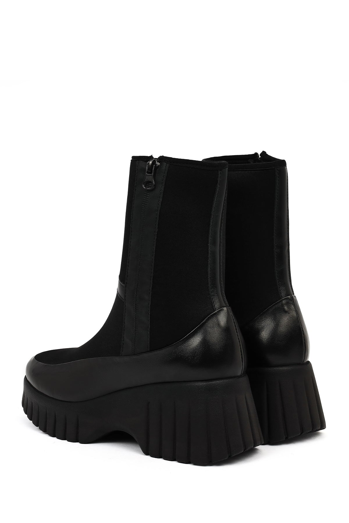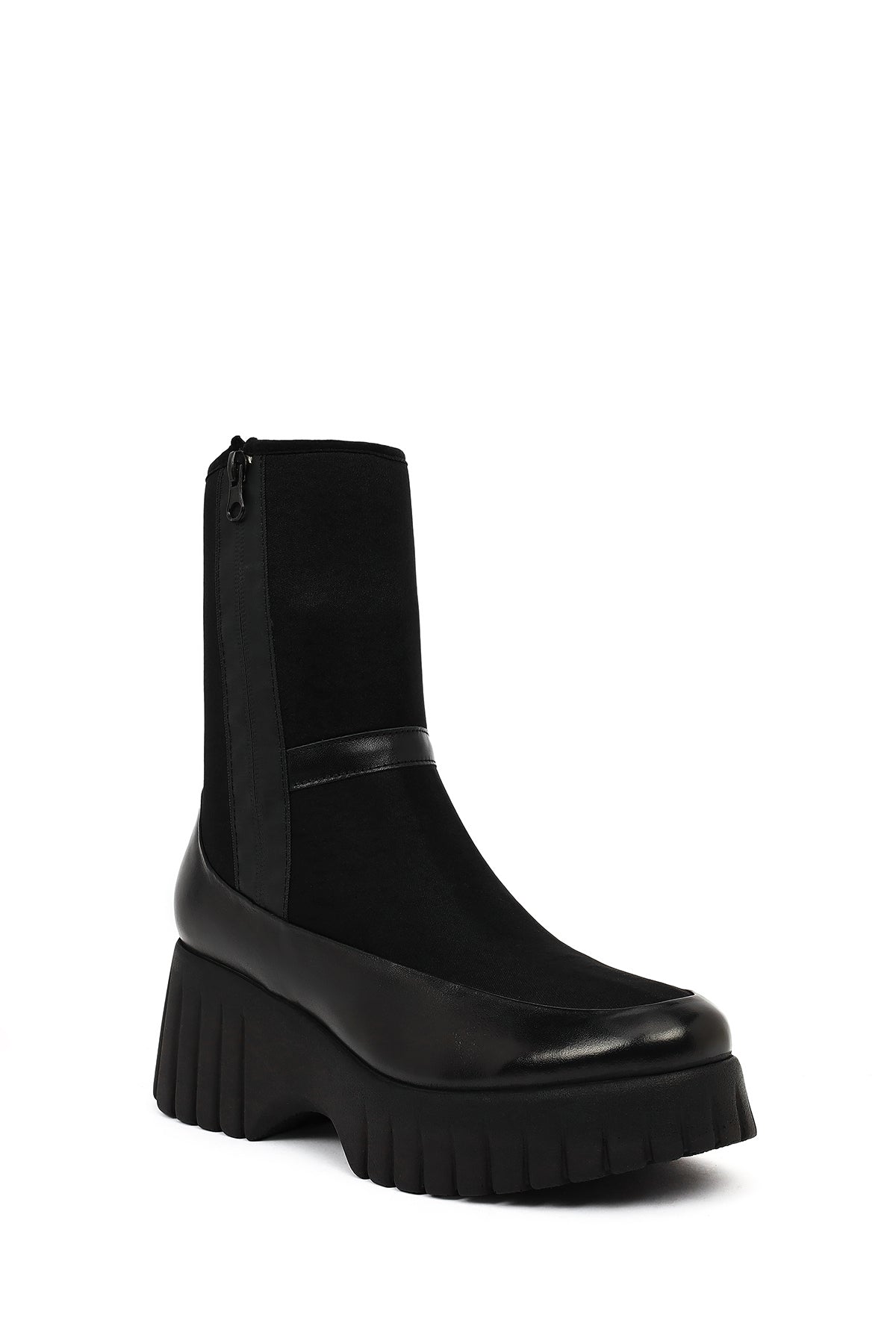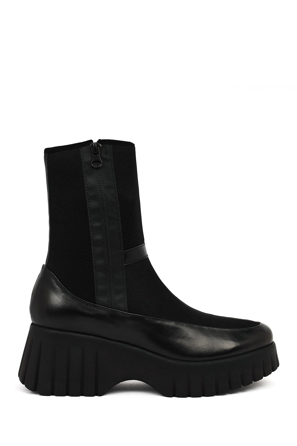 Kadın Siyah Fermuarlı Kalın Tabanlı Deri Bot