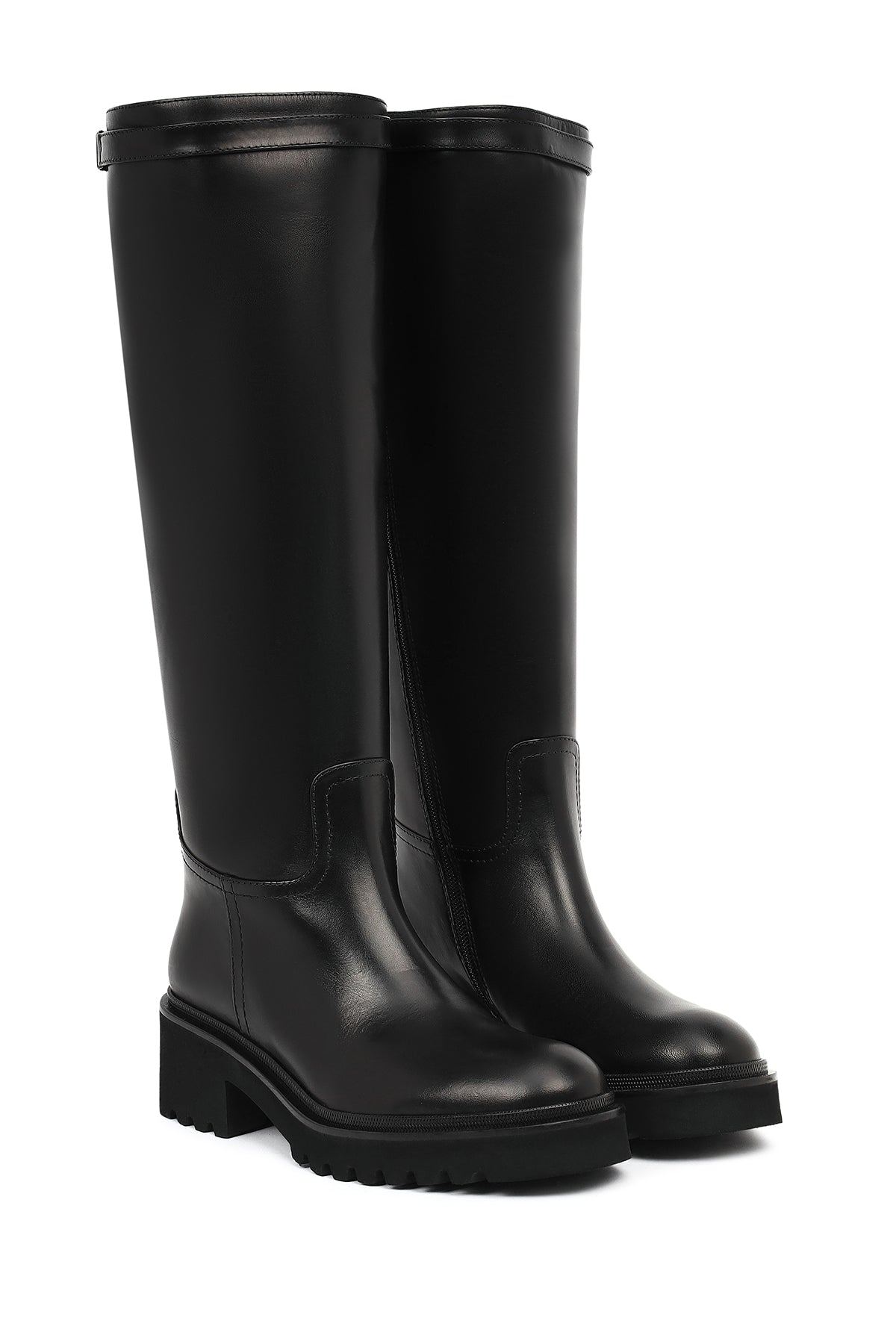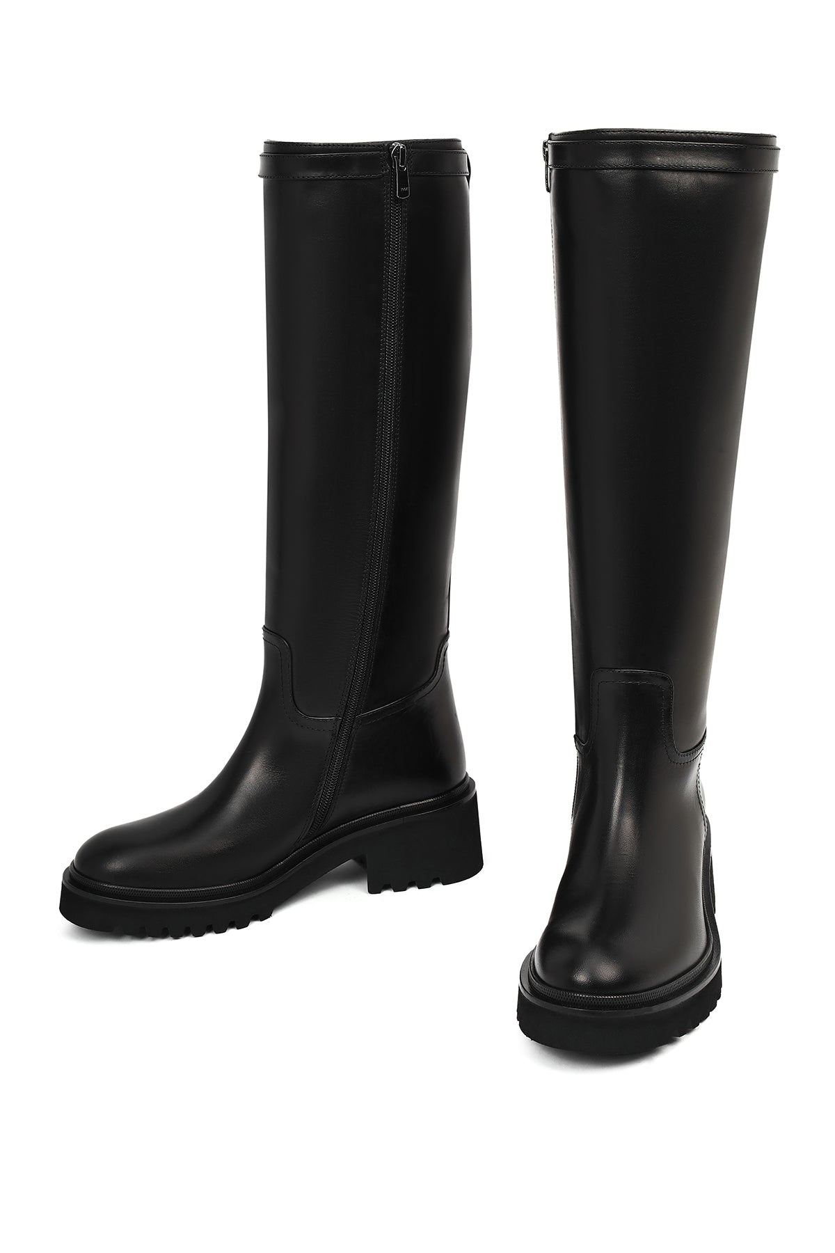 چکمه زنانه چرم مشکی زیپدار زیرهضخیم دری مد