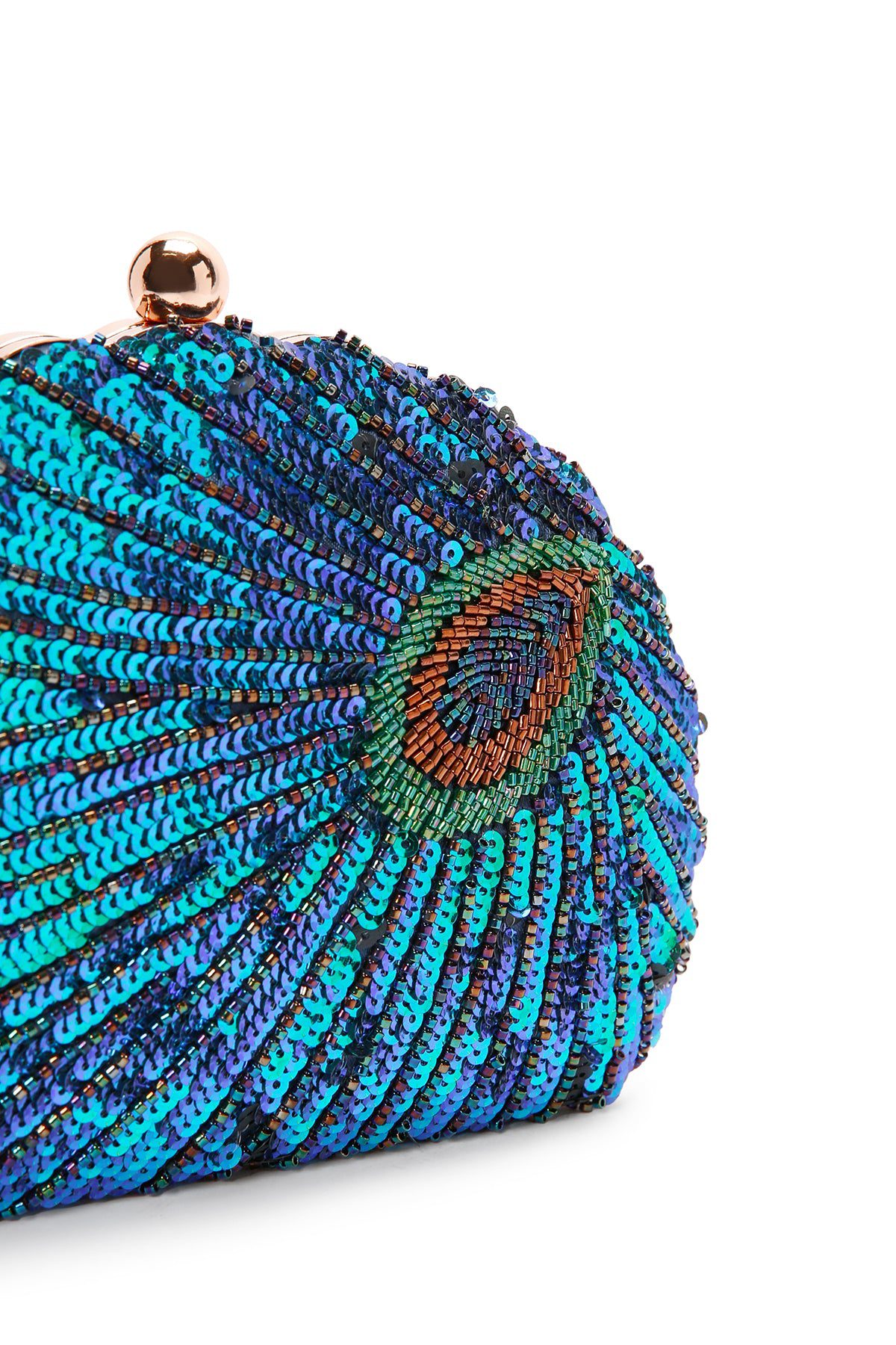 کیف زنانه آبی مجلسی زنجیردار پولکی باکس دستی دری مد