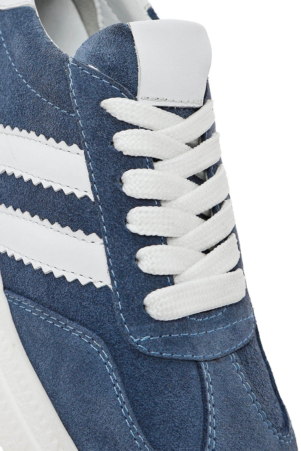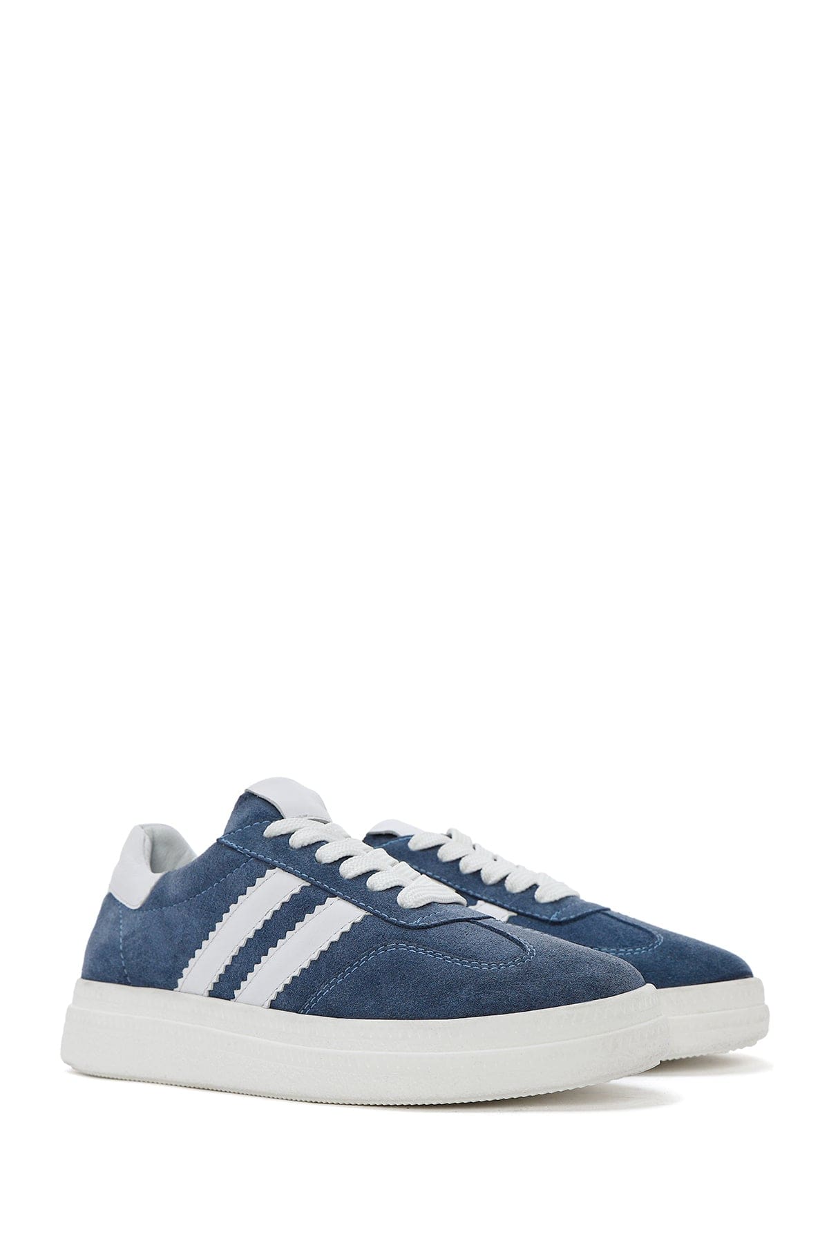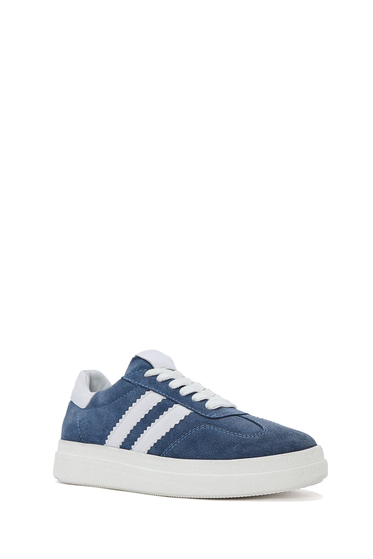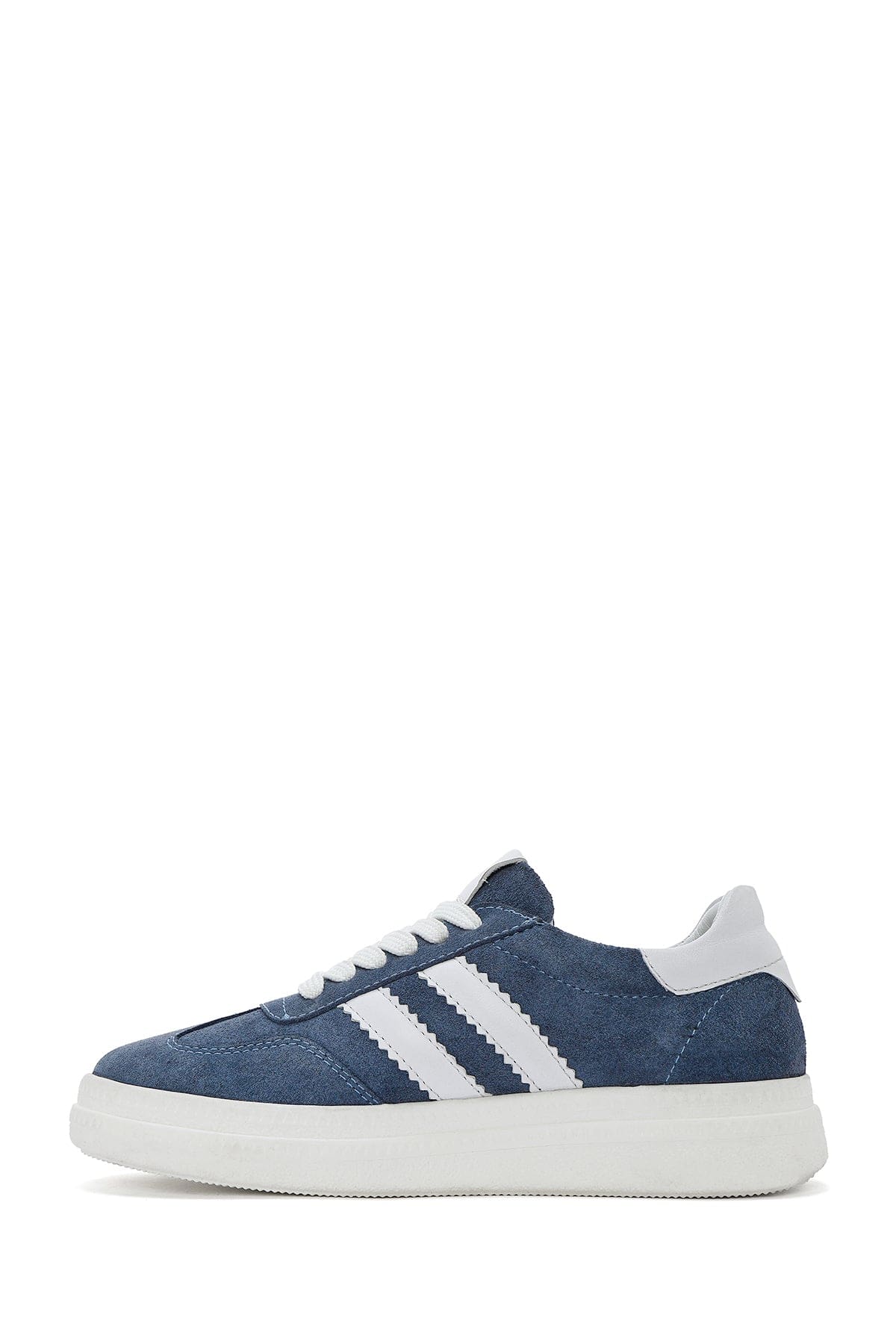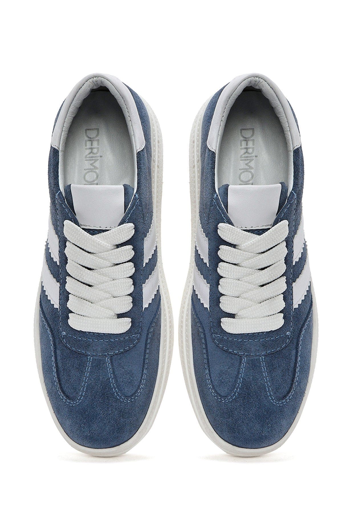 Kadın Mavi Bağcıklı Kalın Tabanlı Süet Deri Sneaker