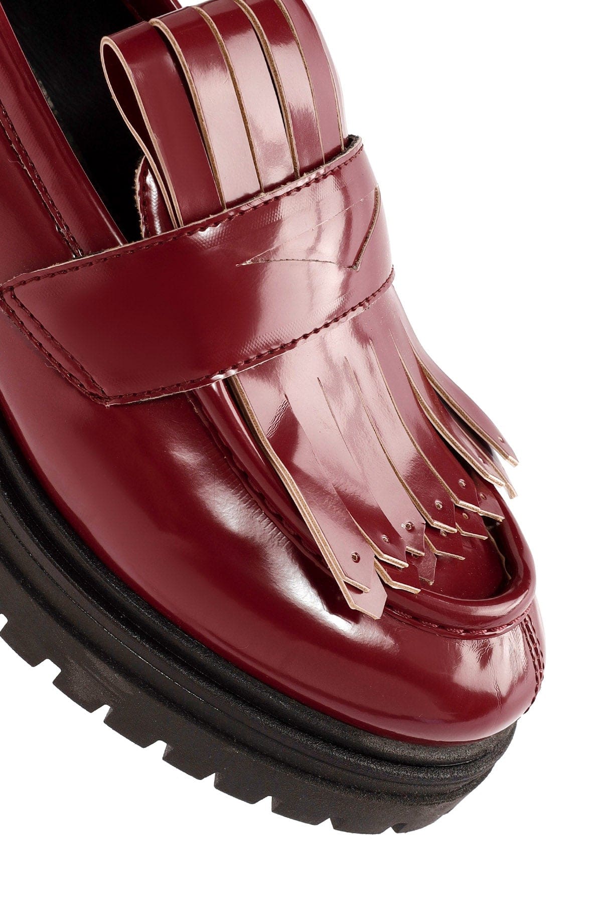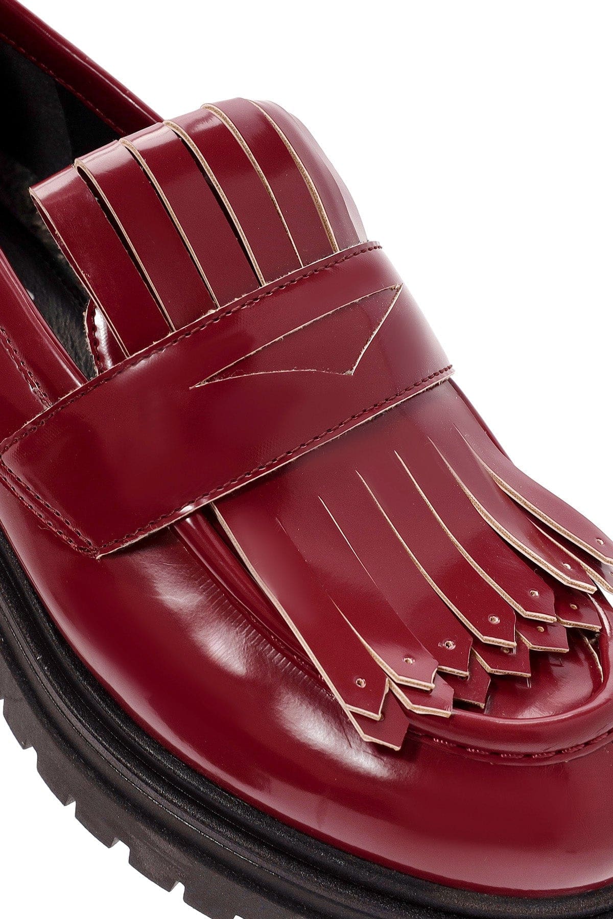 کفش لوفر زنانه زرشکی چرمی پاشنه لژدار دری مد