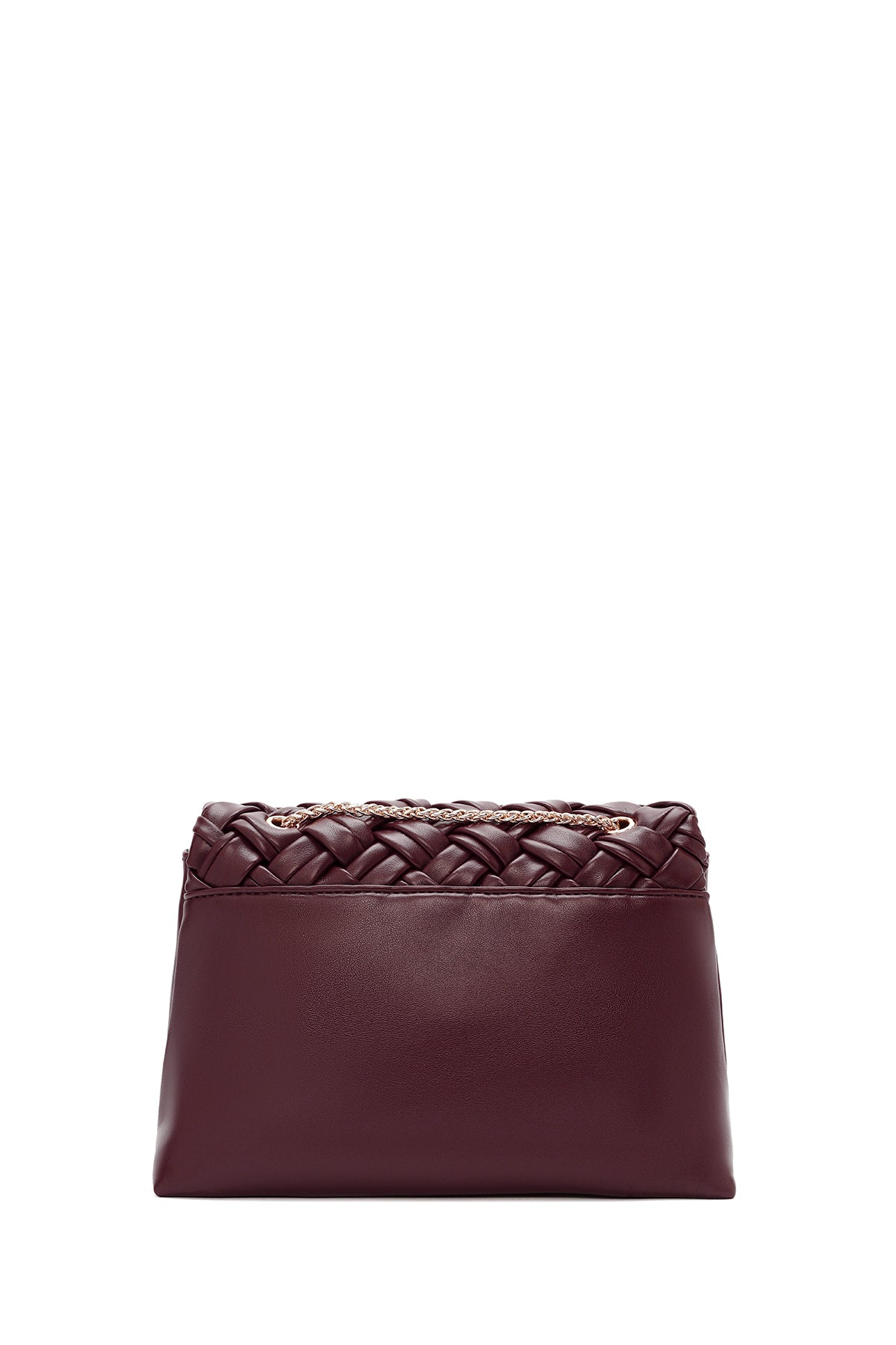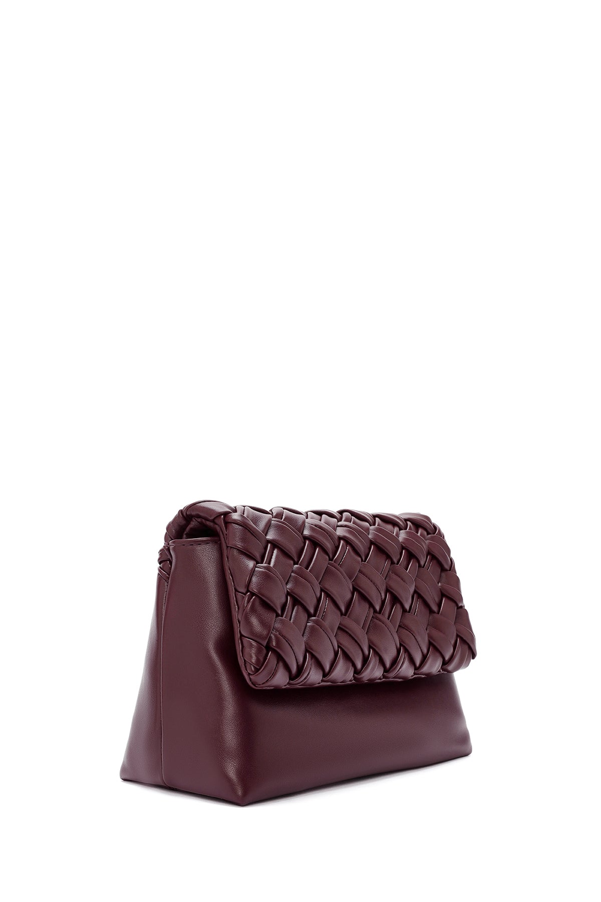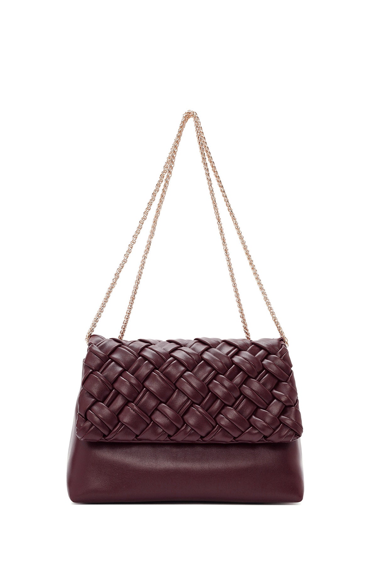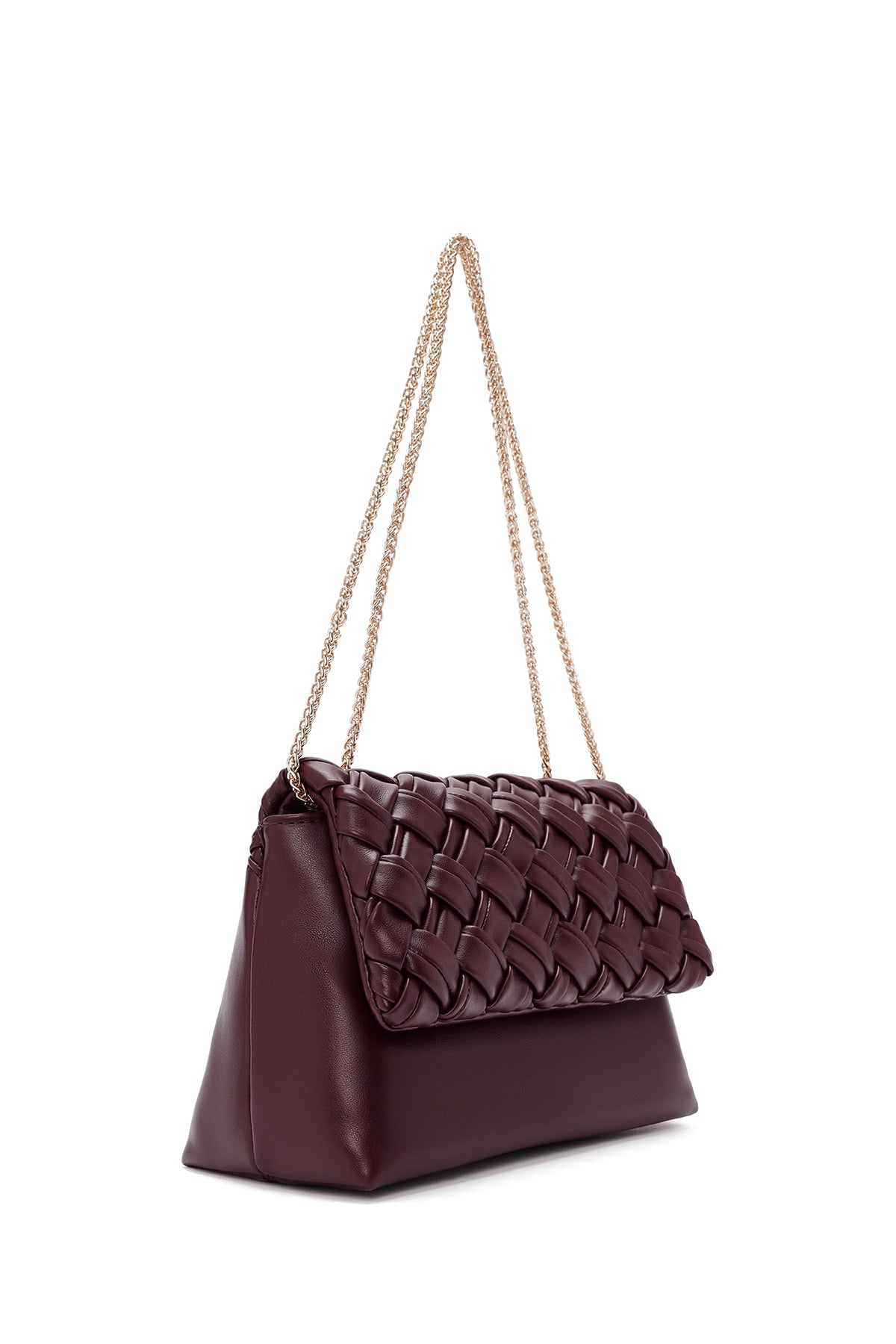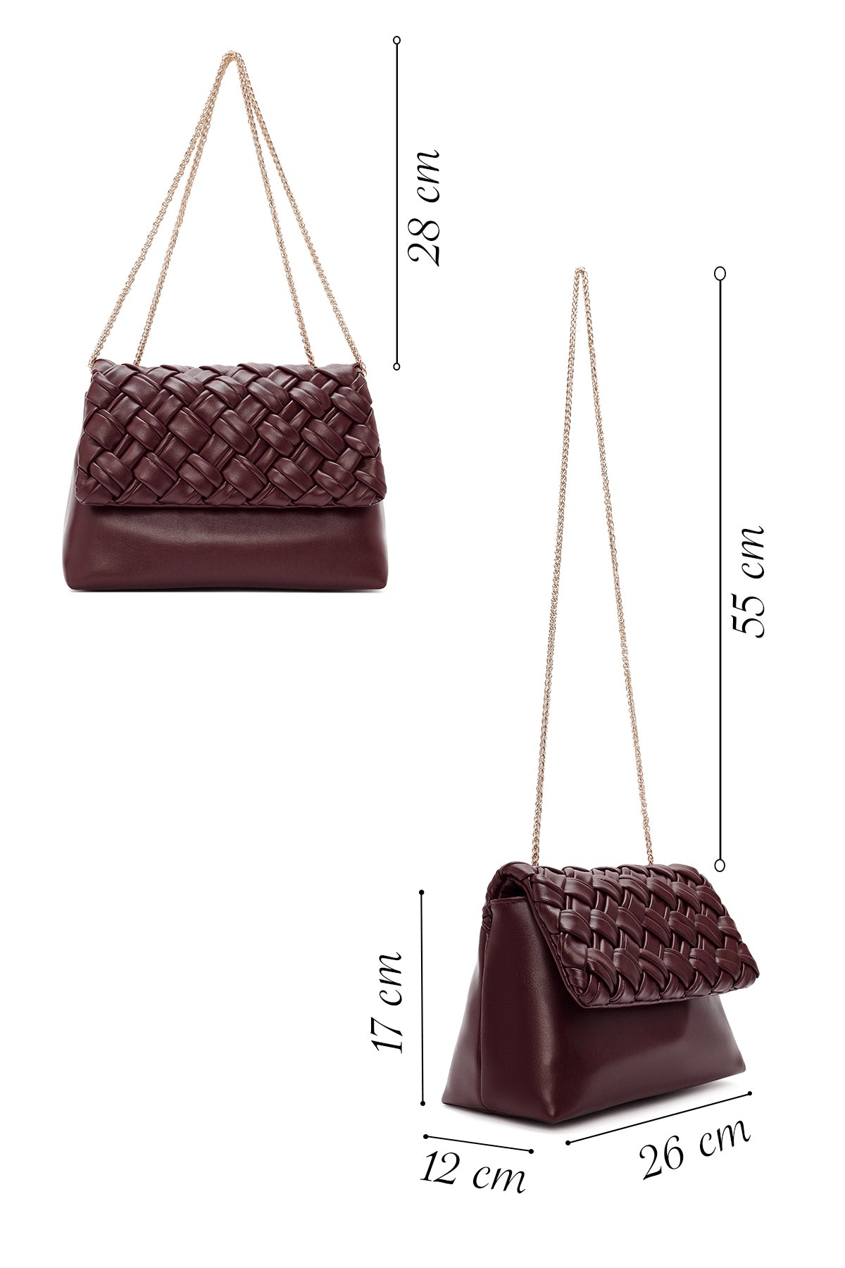 Kadın Bordo Uzun Zincir Askılı Örgülü Çapraz Çanta