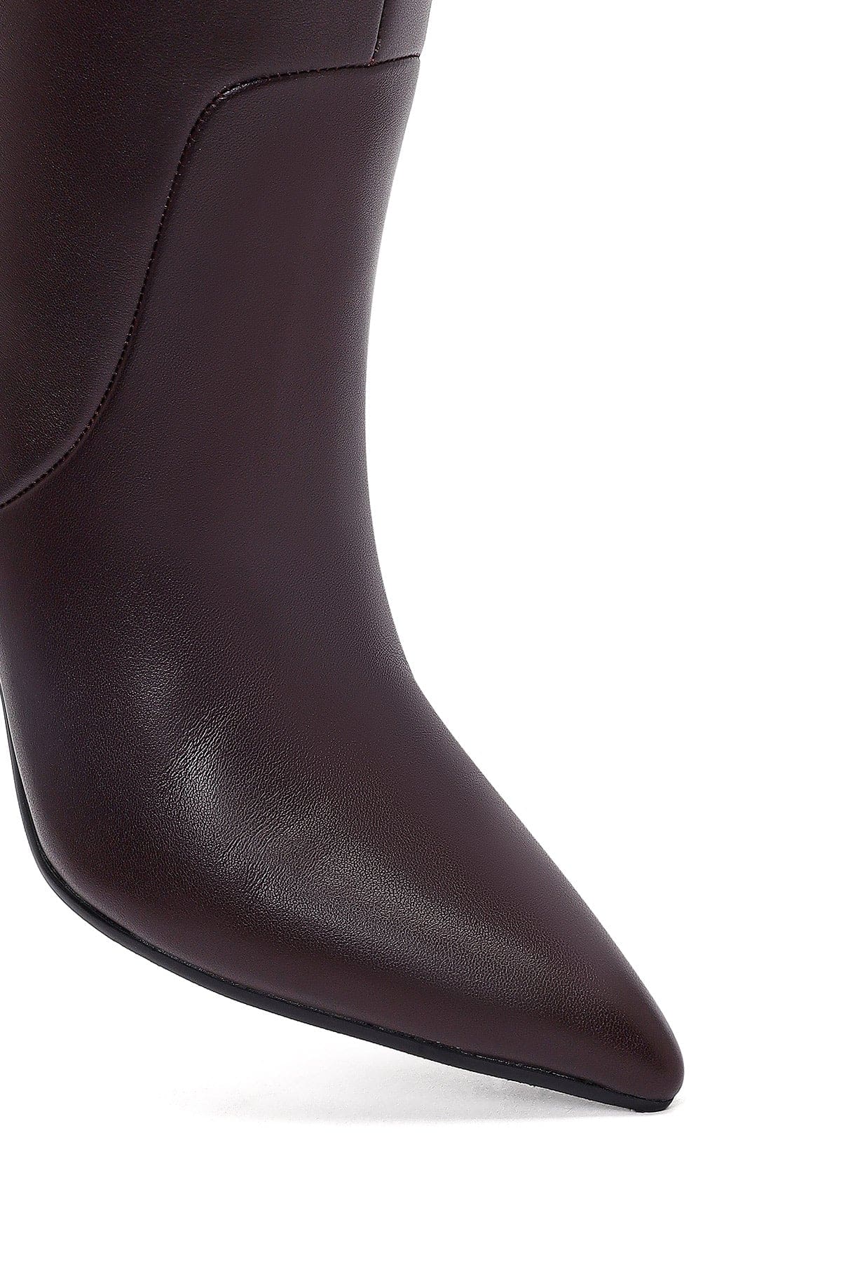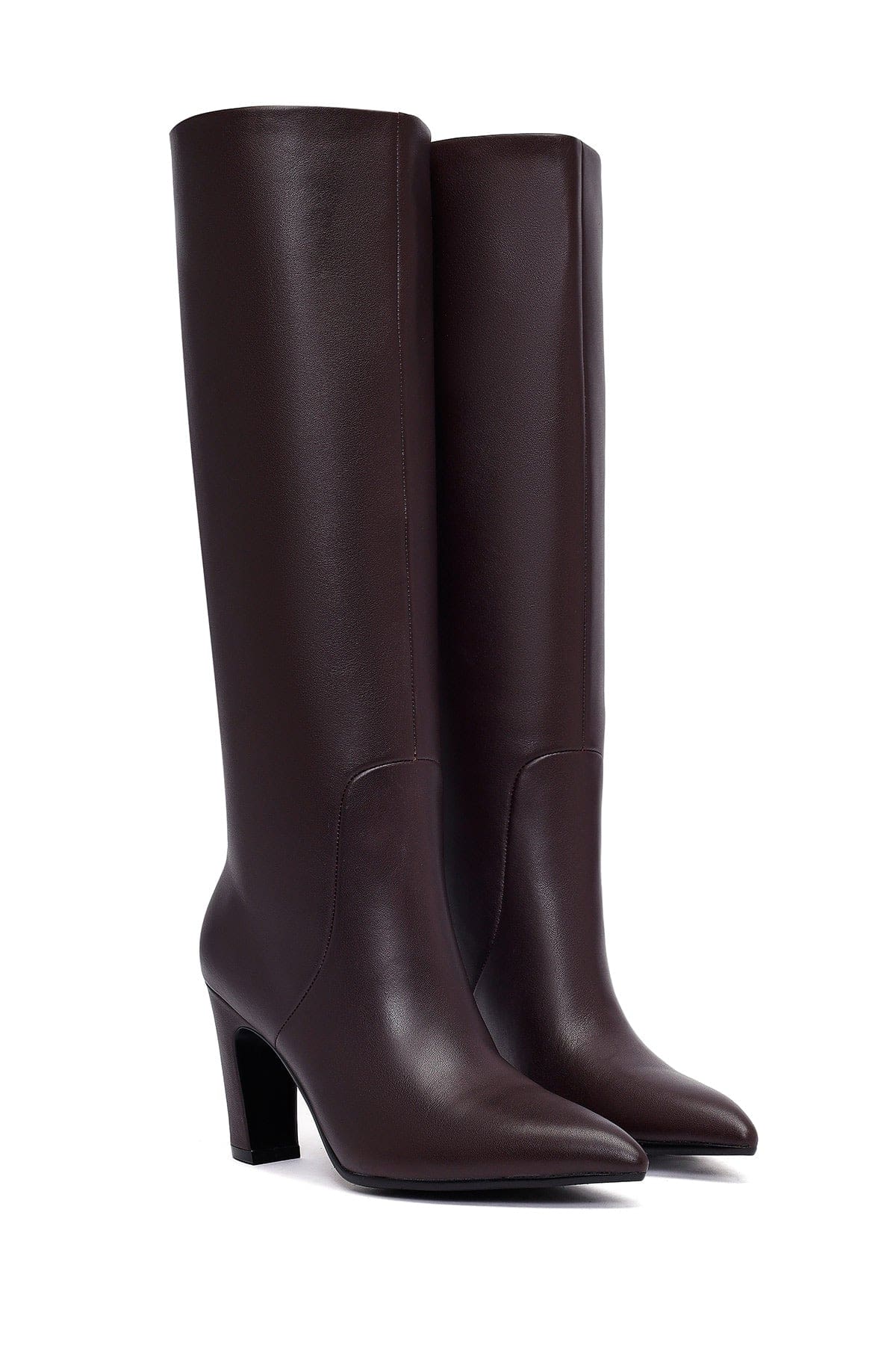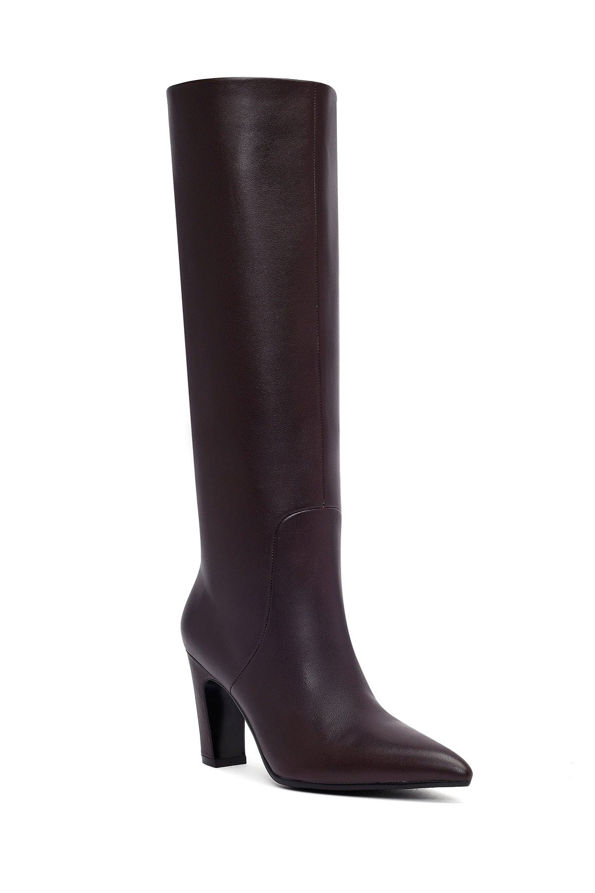 Kadın Bordo Kalın Topuklu Deri Çizme