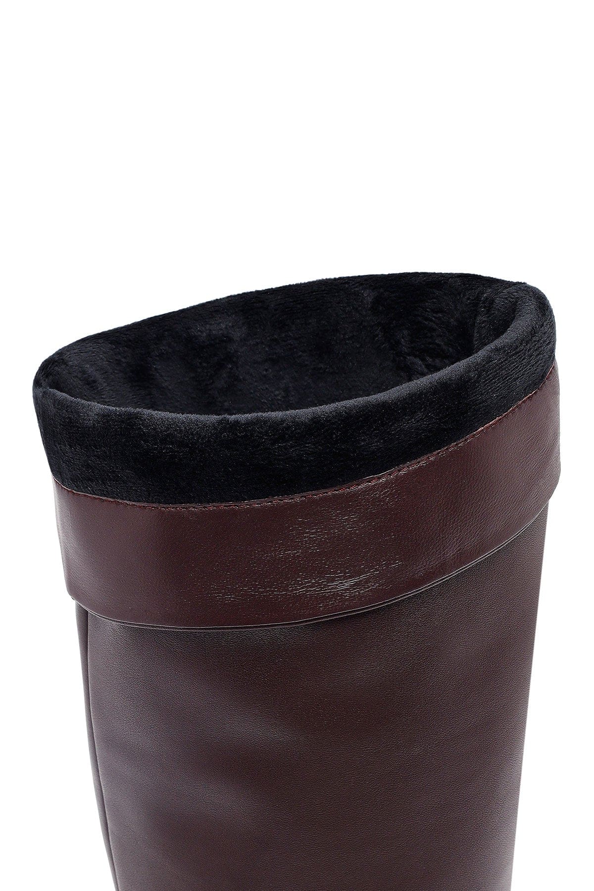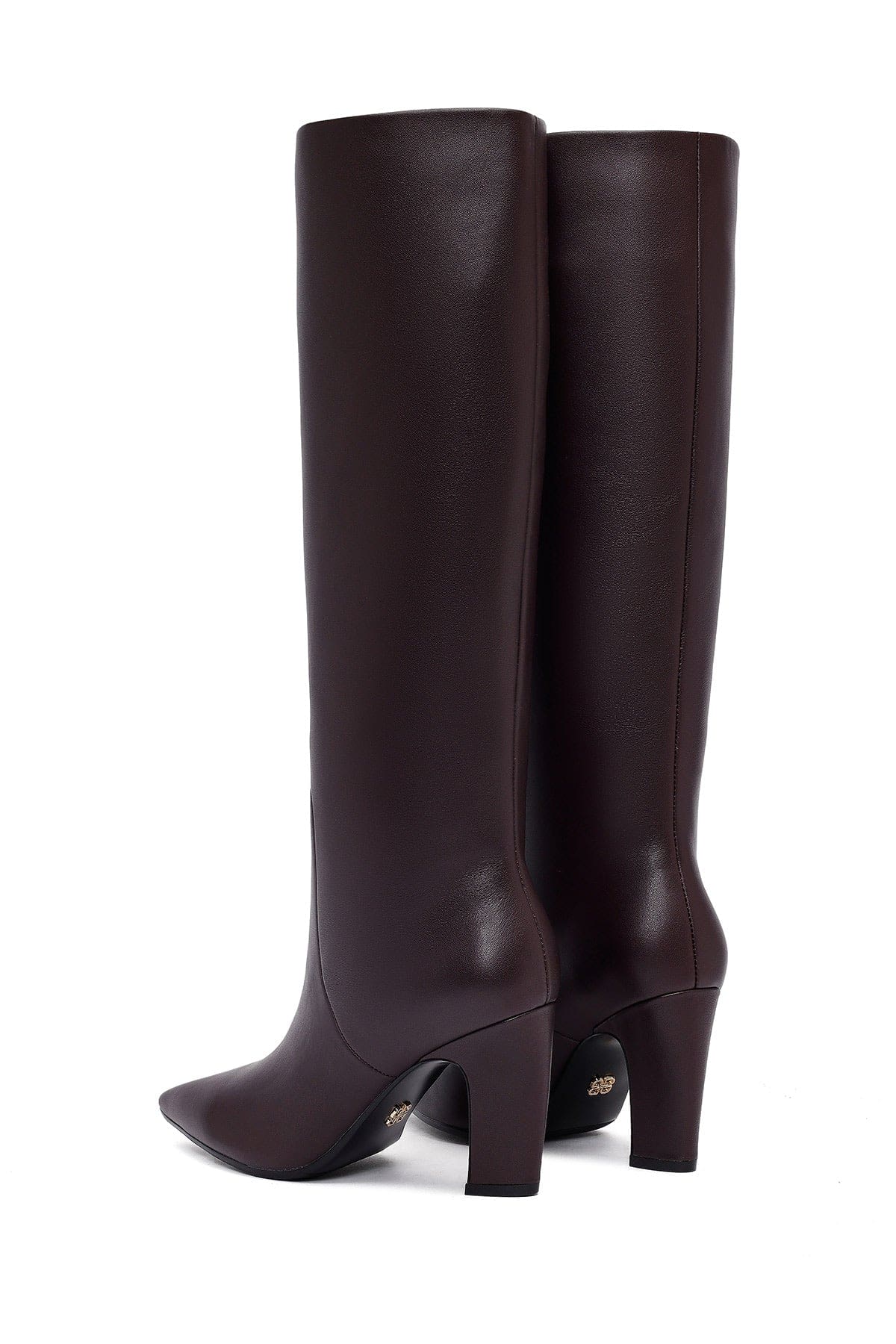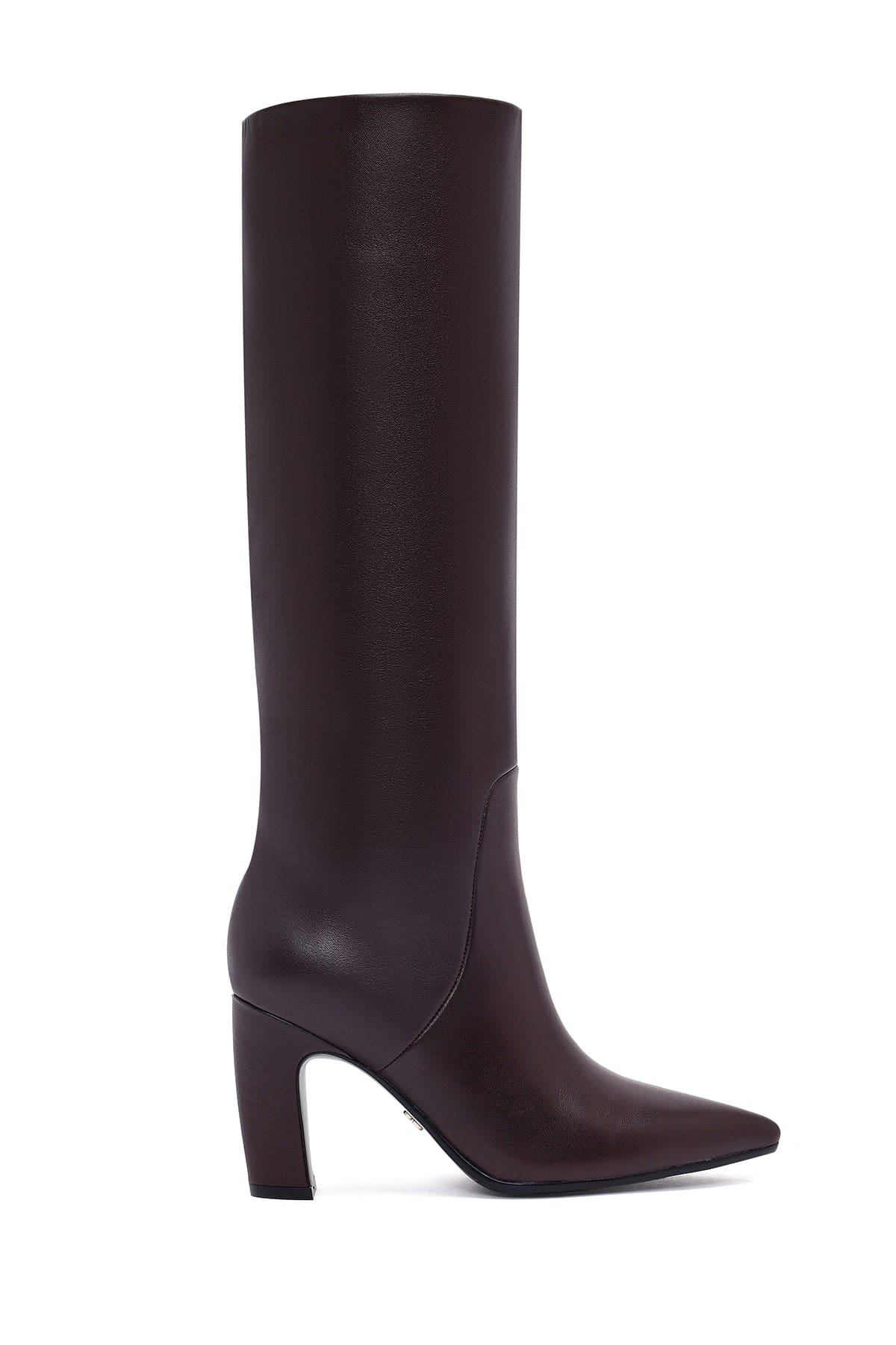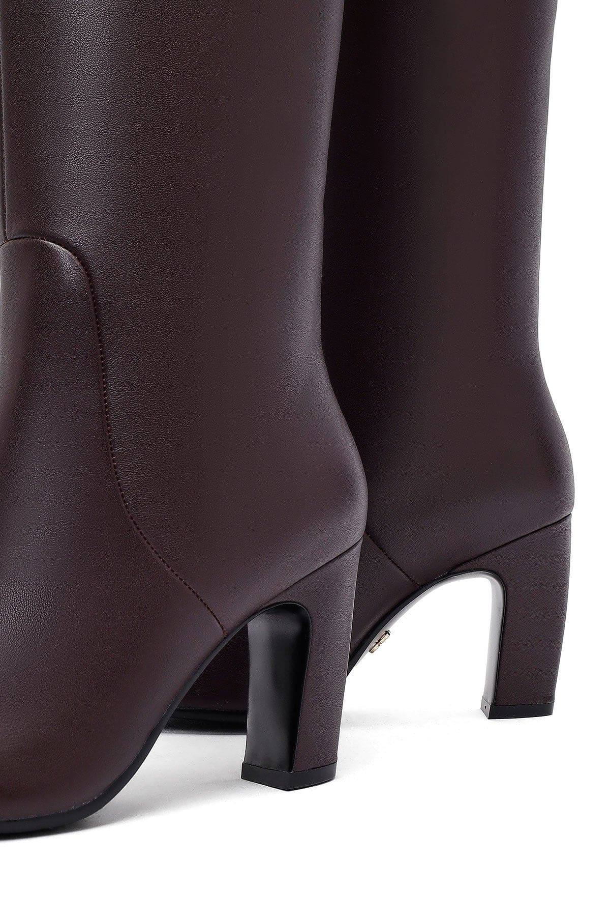 Kadın Bordo Kalın Topuklu Deri Çizme