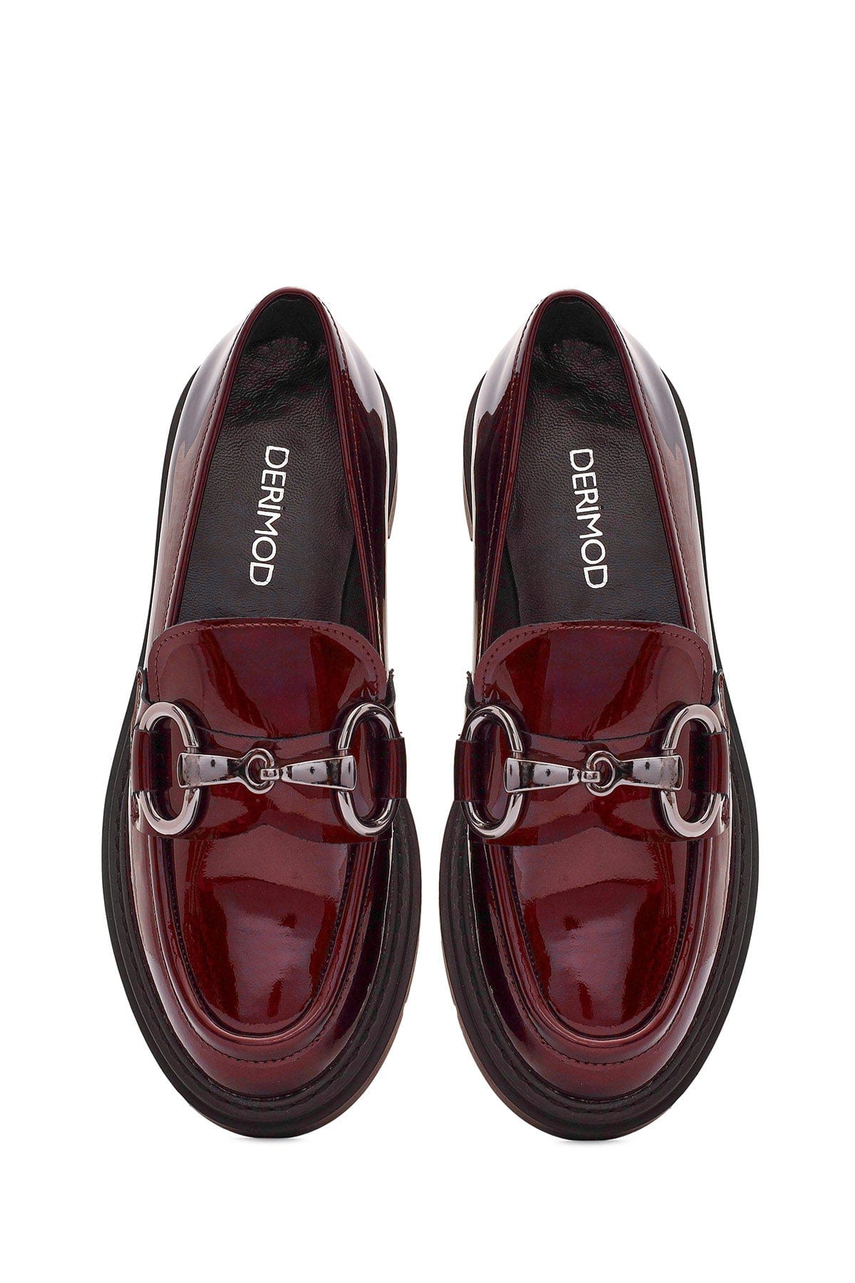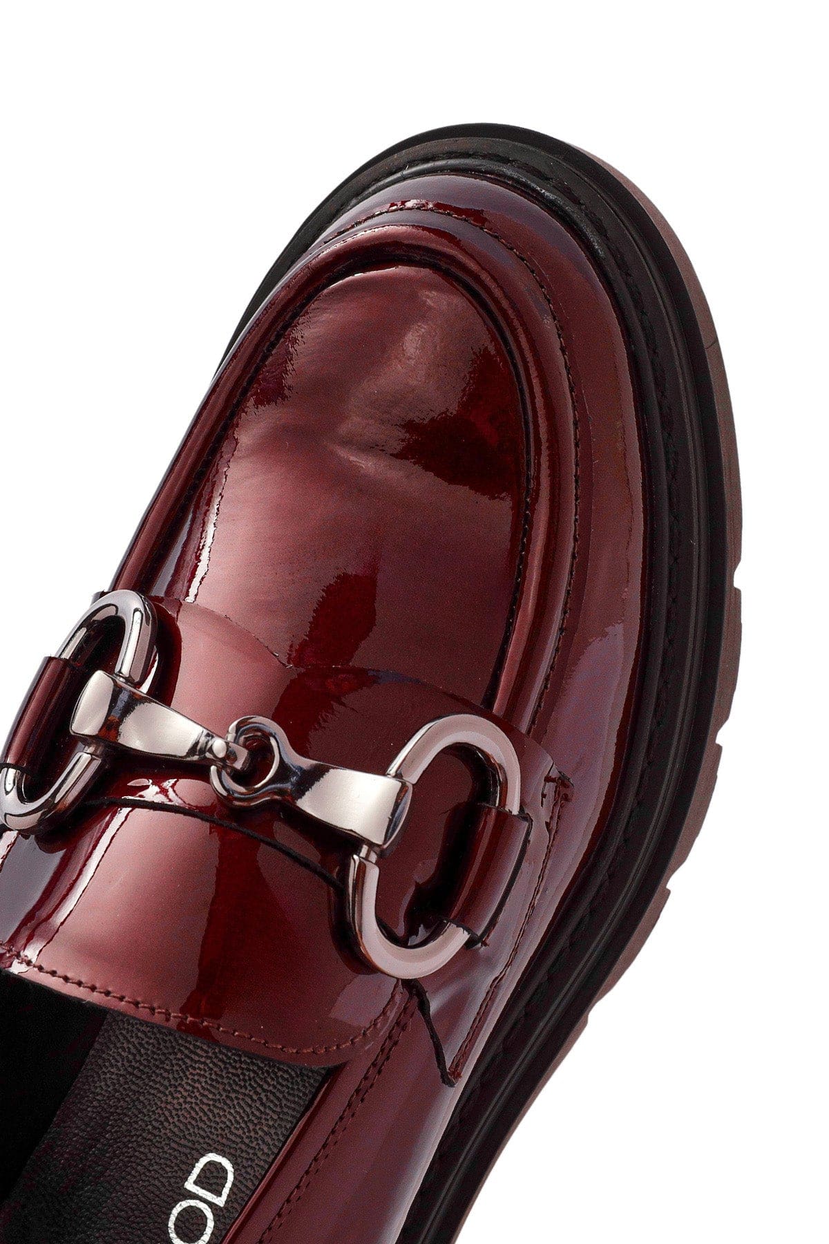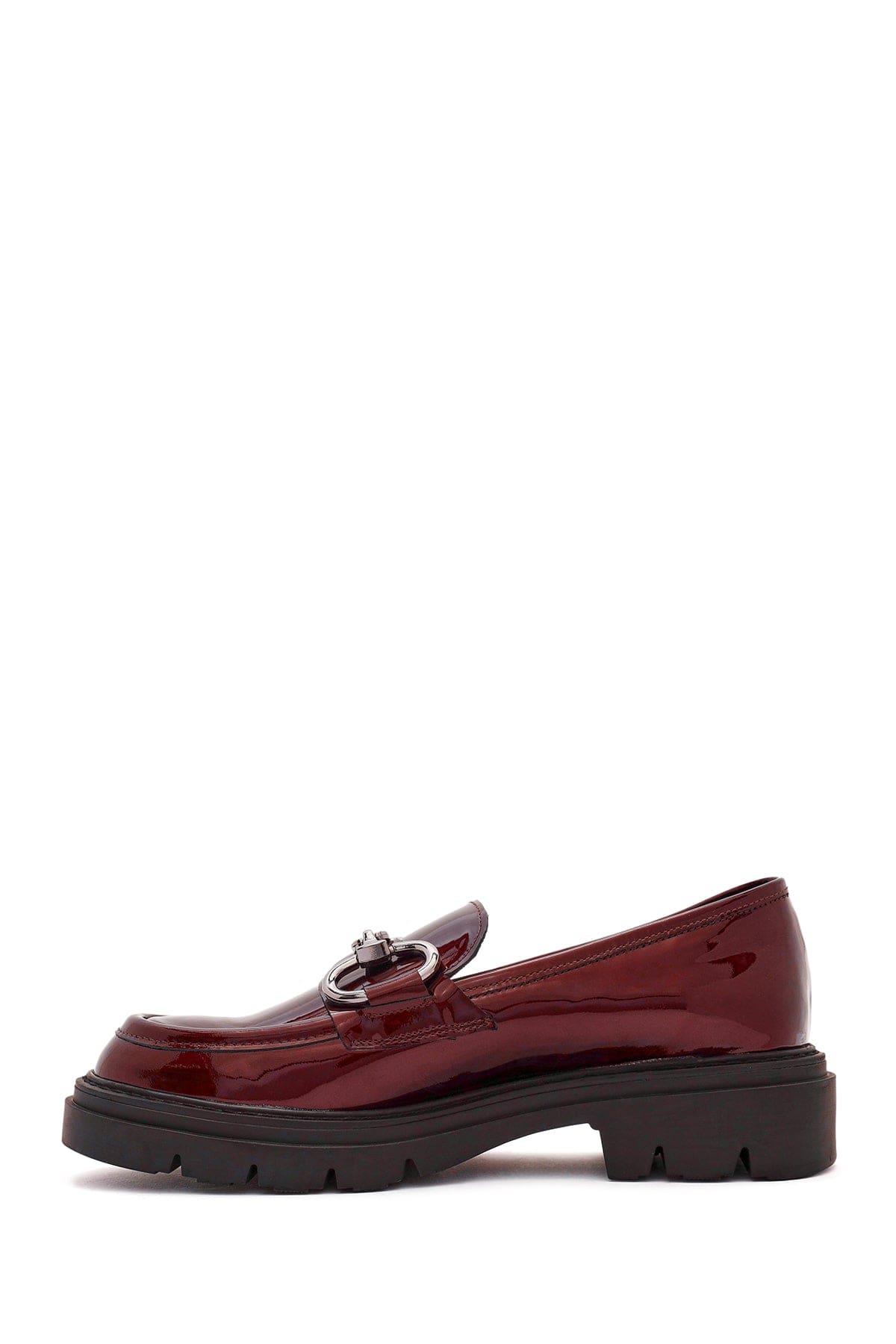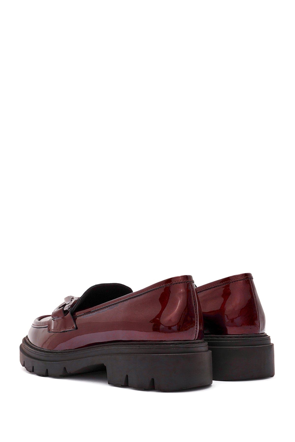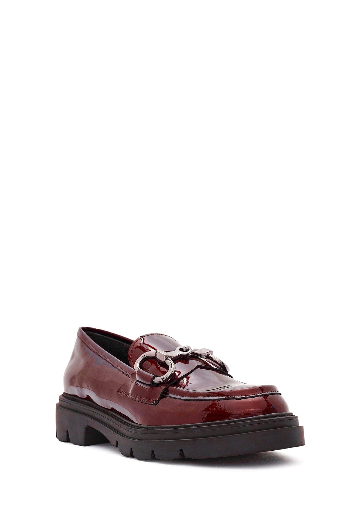 Kadın Bordo Toka Detaylı Rugan Deri Maskülen Loafer