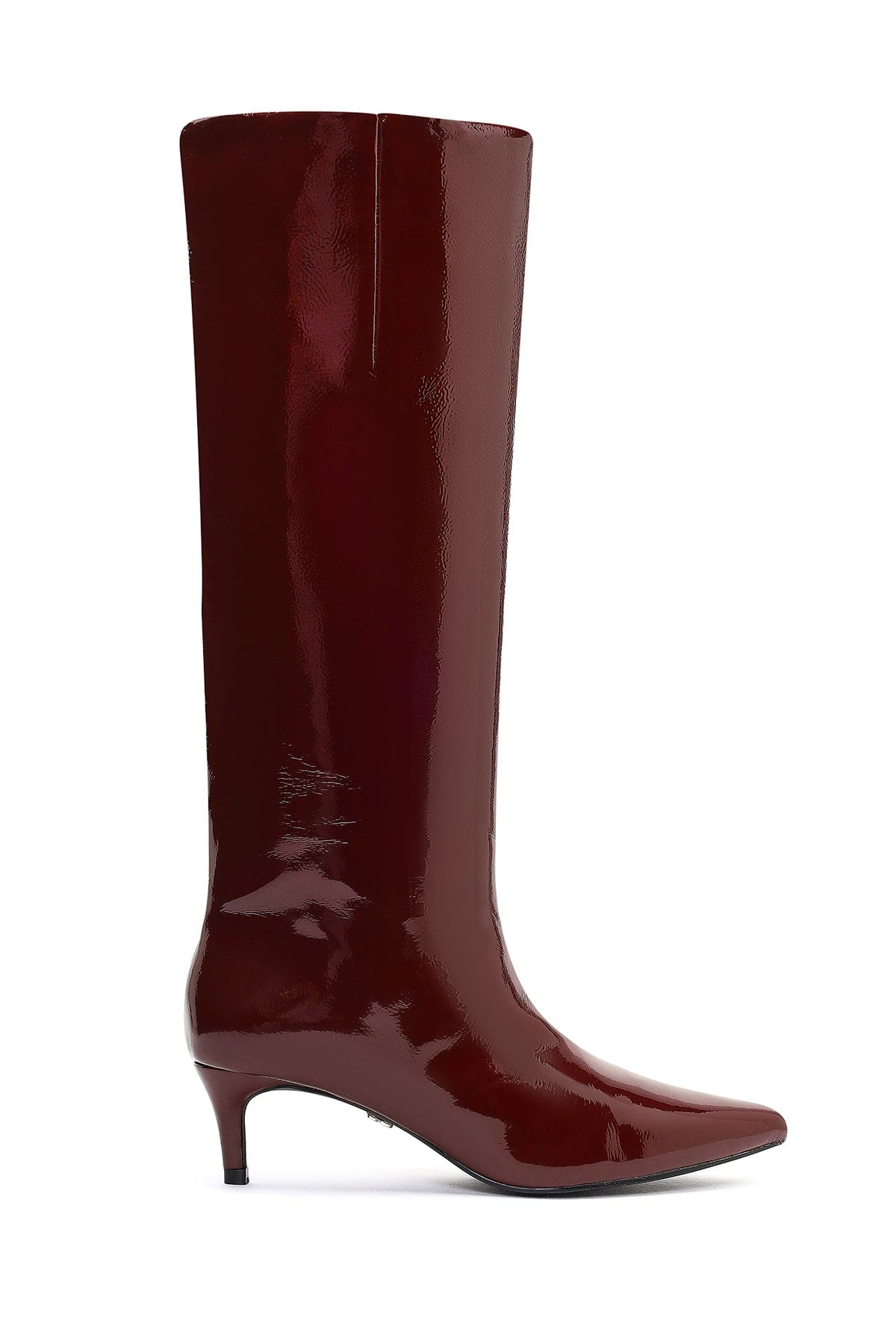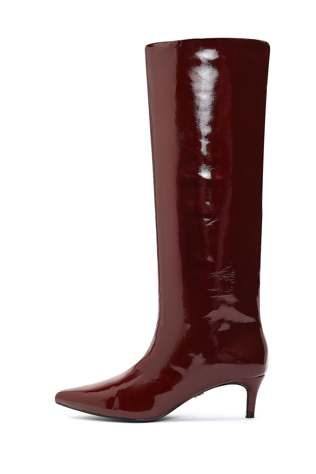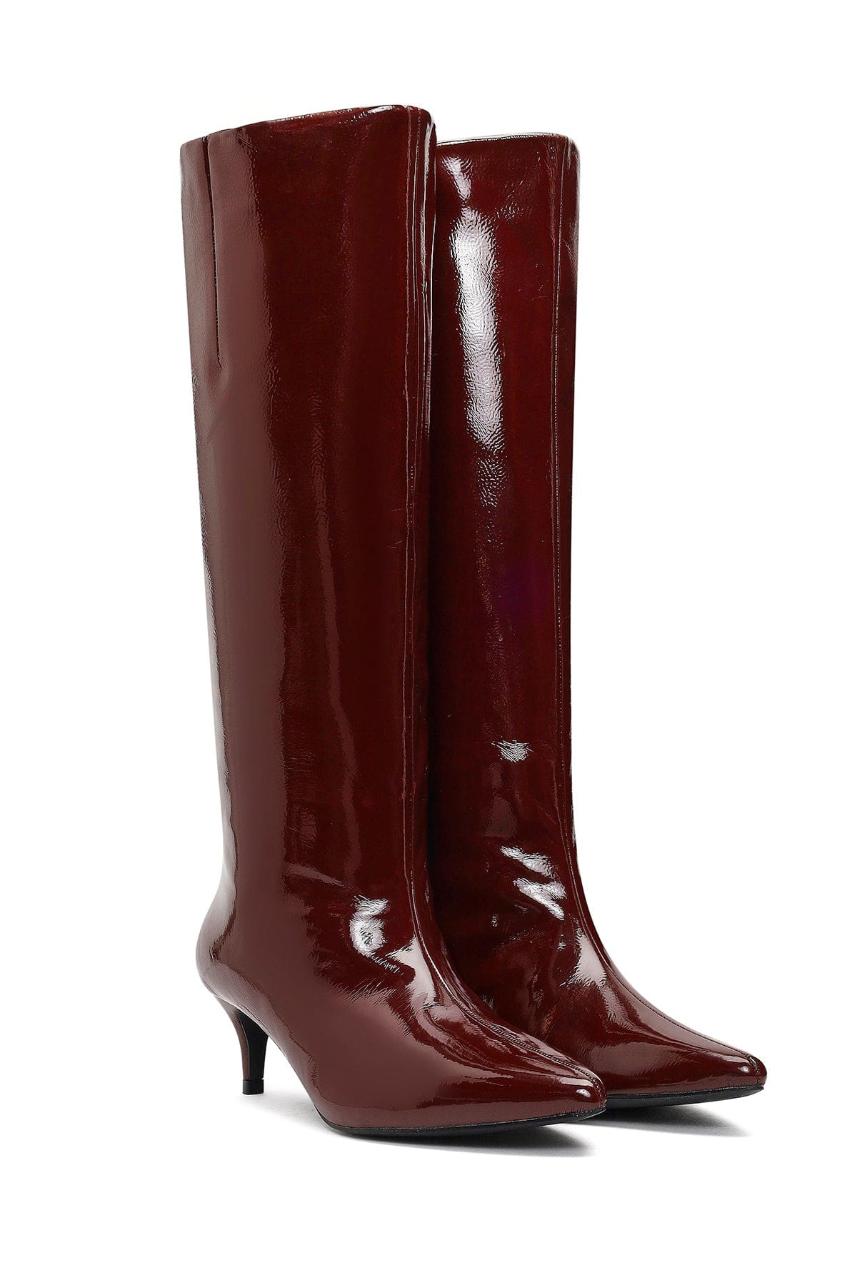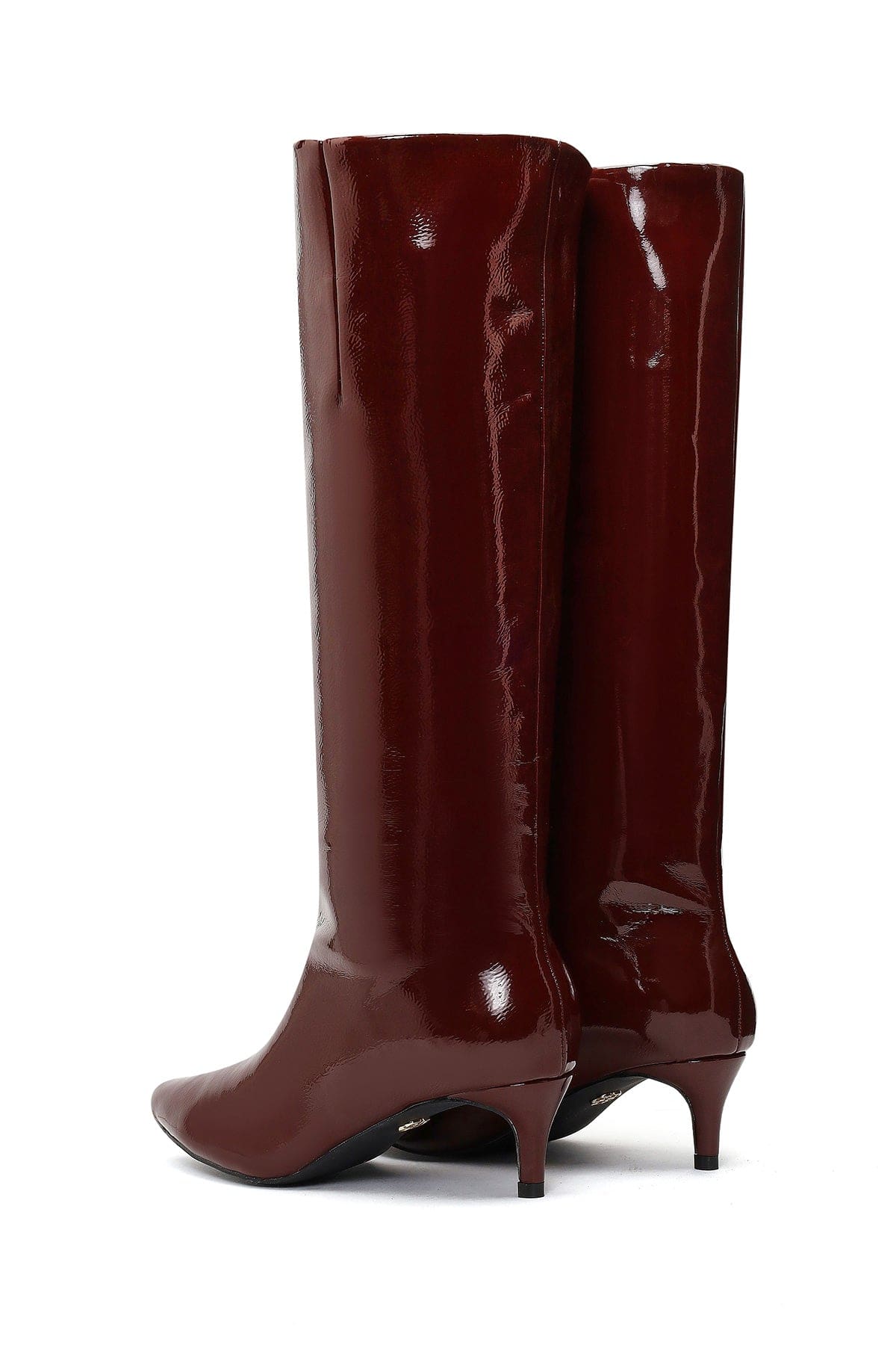 Kadın Bordo Kısa İnce Topuklu Rugan Çizme