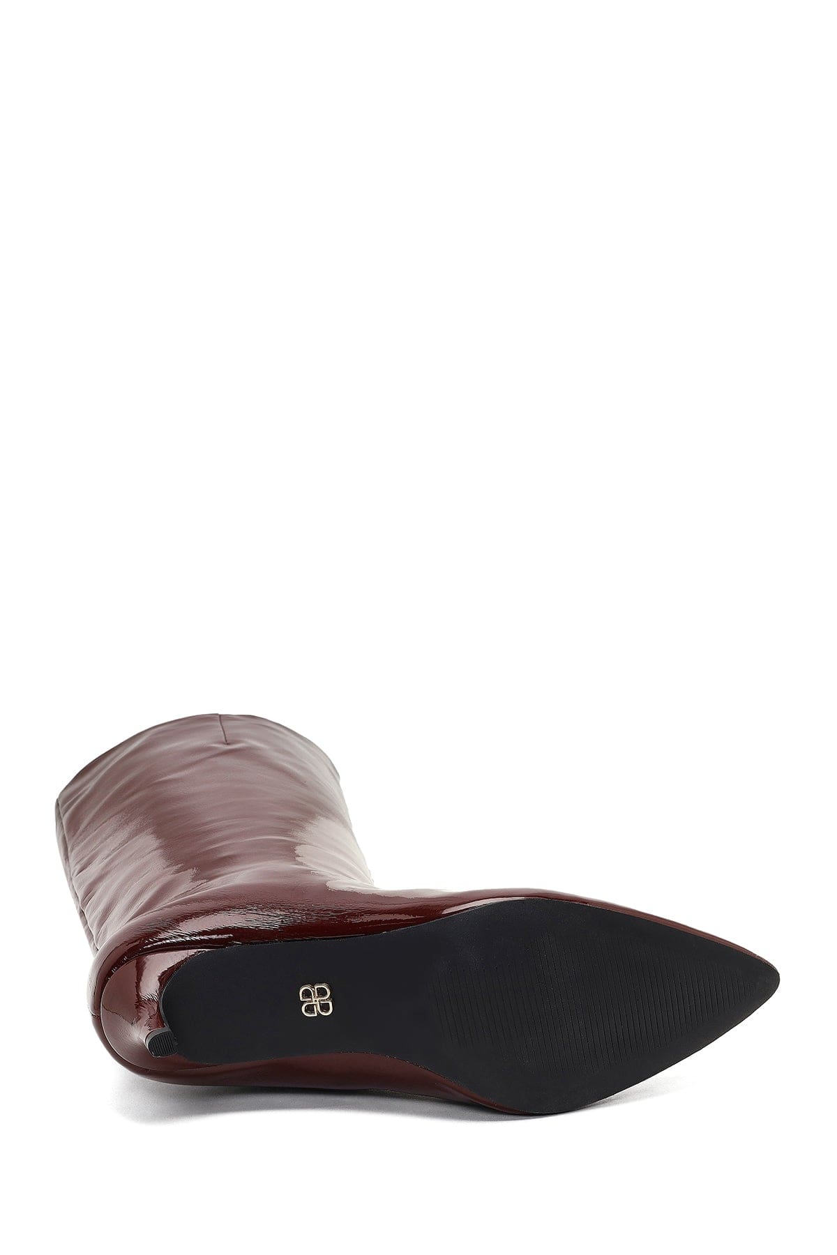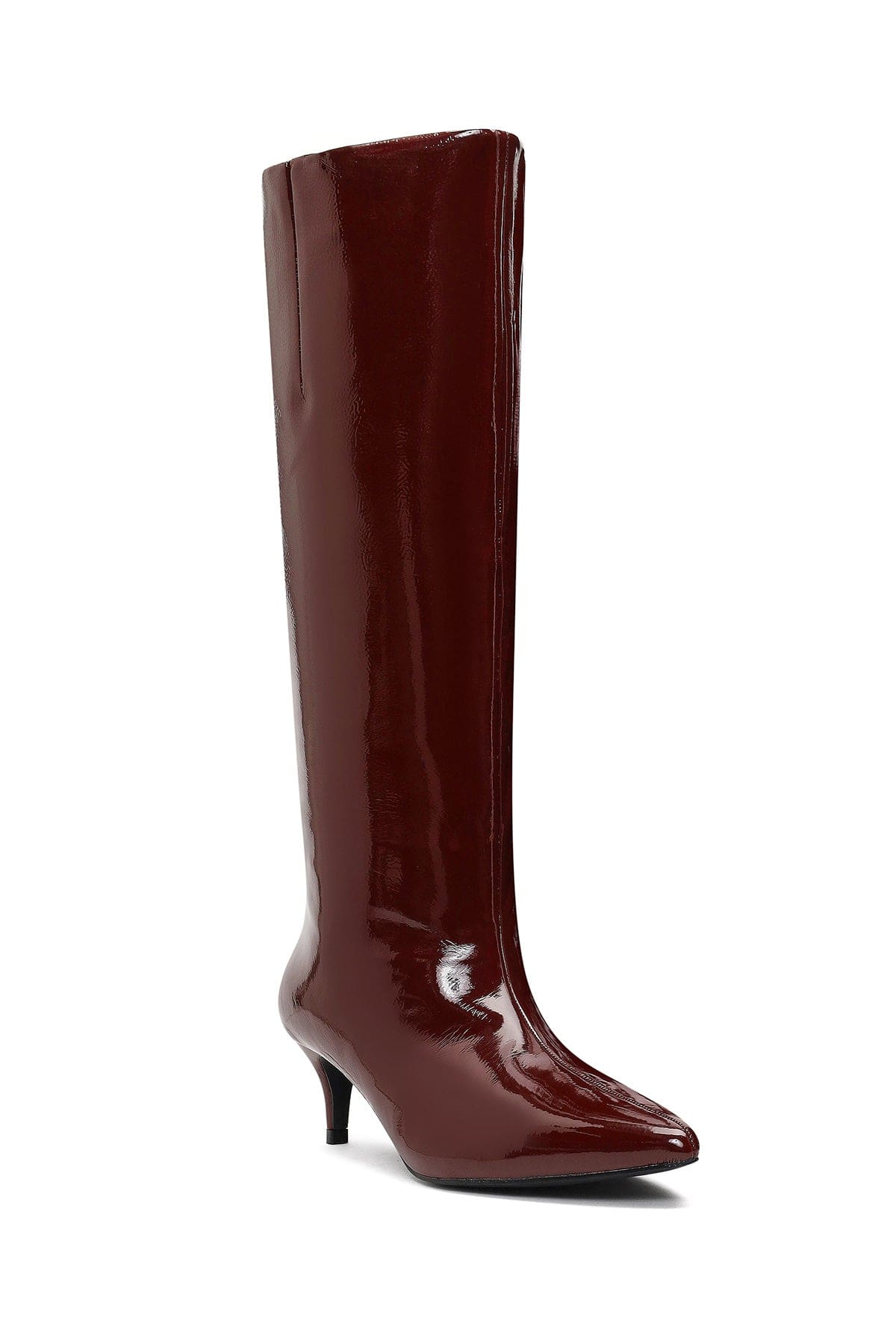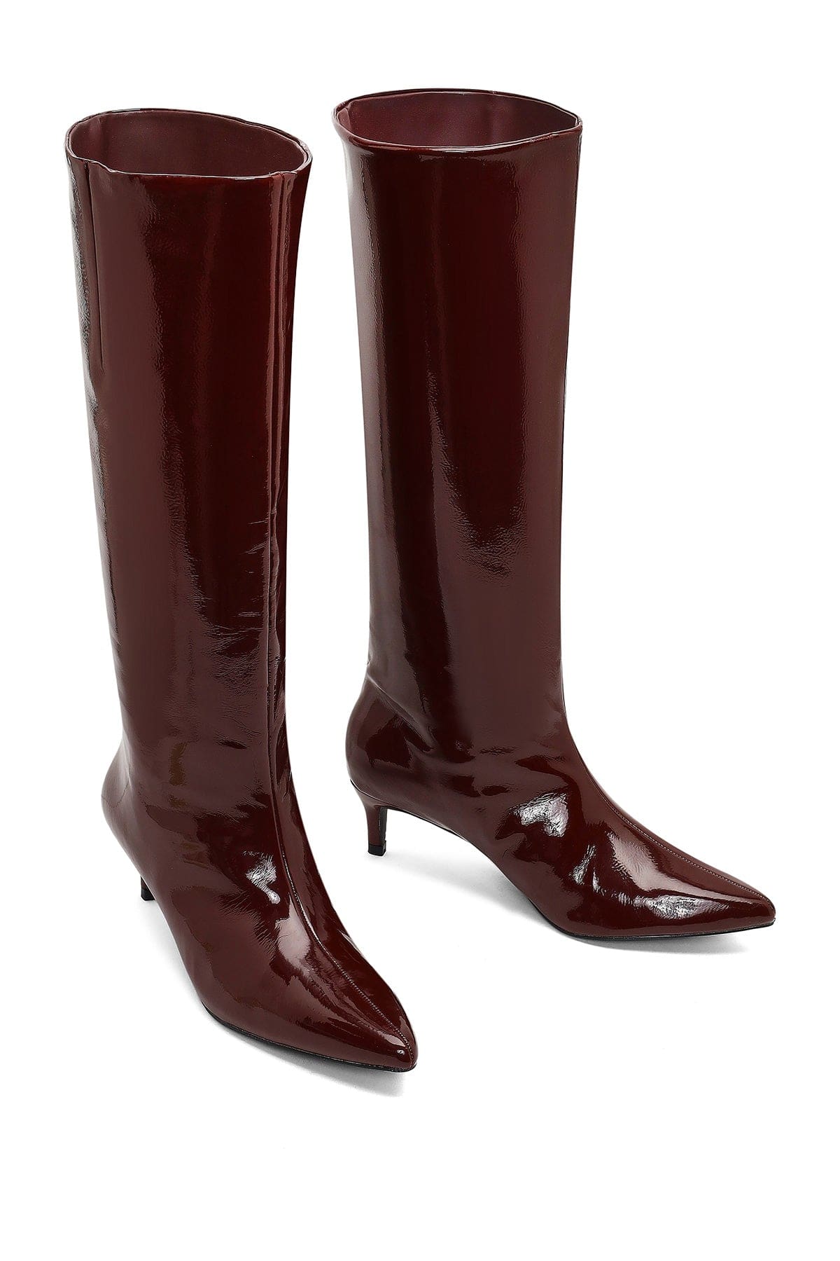Kadın Bordo Kısa İnce Topuklu Rugan Çizme