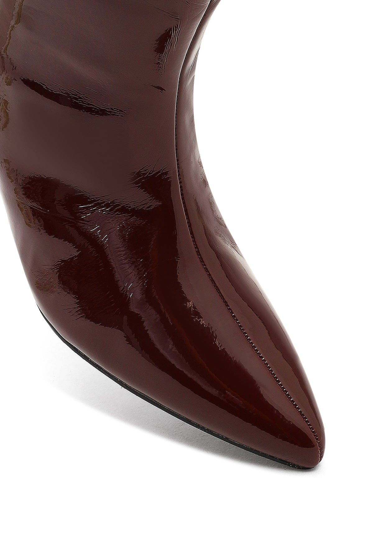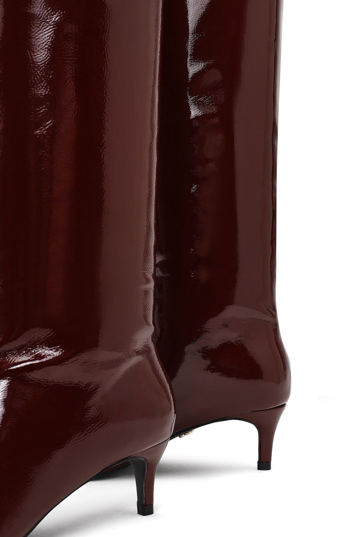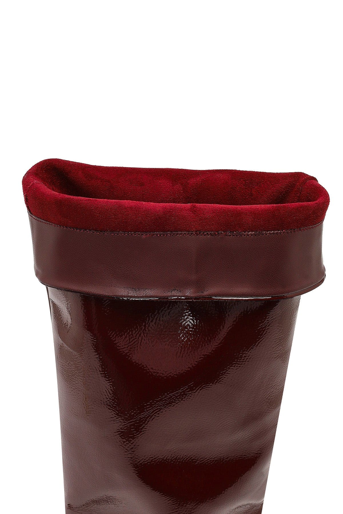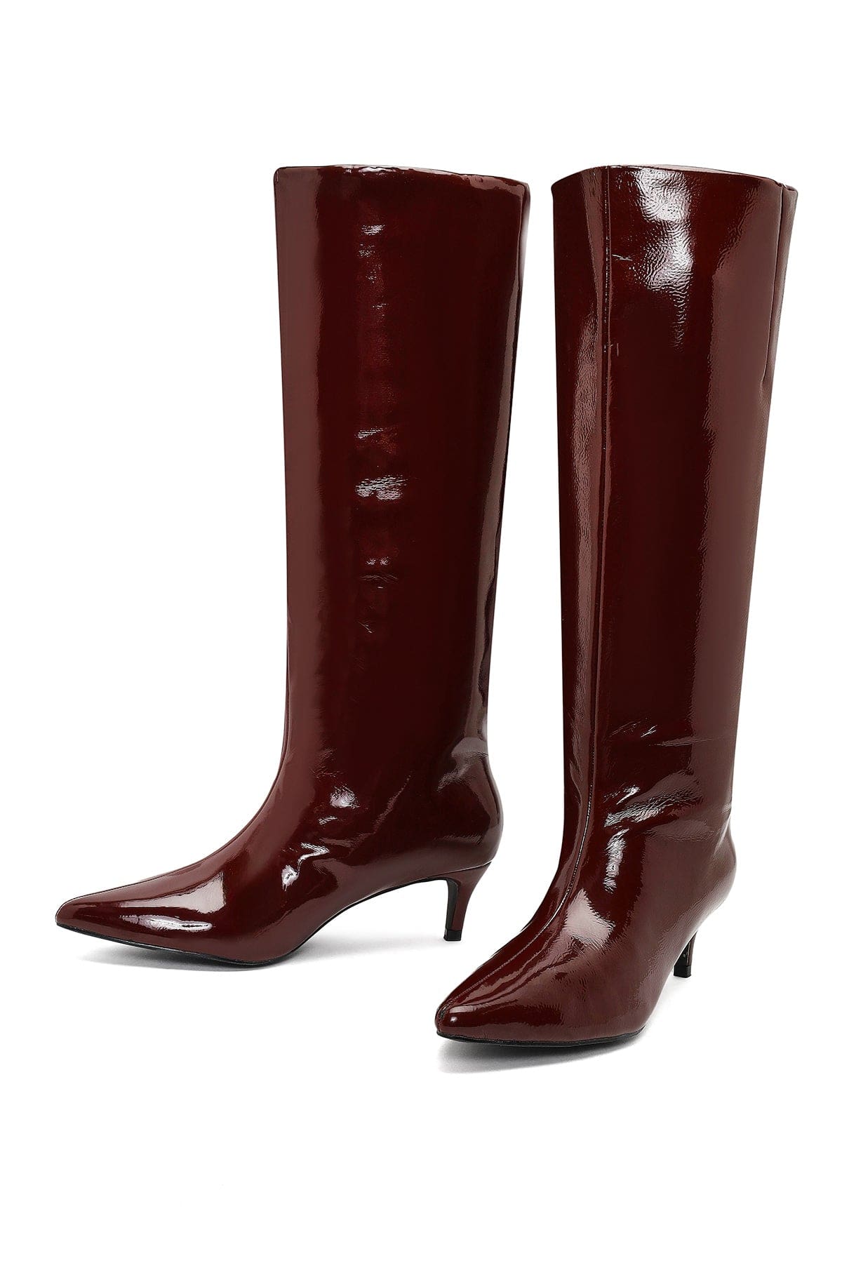 Kadın Bordo Kısa İnce Topuklu Rugan Çizme