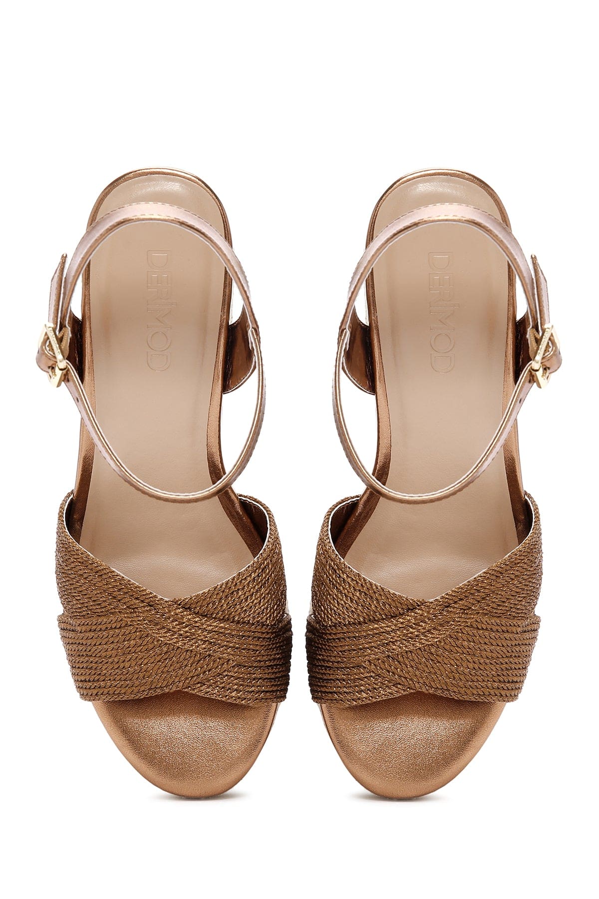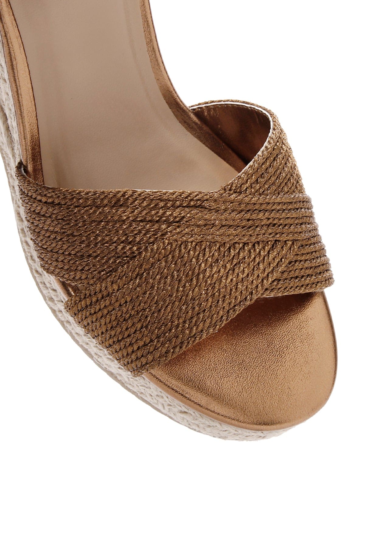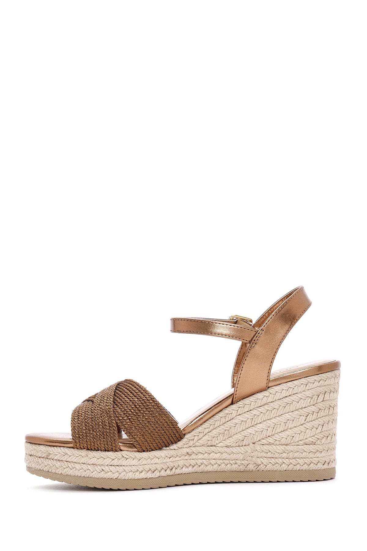 Kadın Bronz Bilekten Bantlı Metalik Dolgu Topuklu Espadril