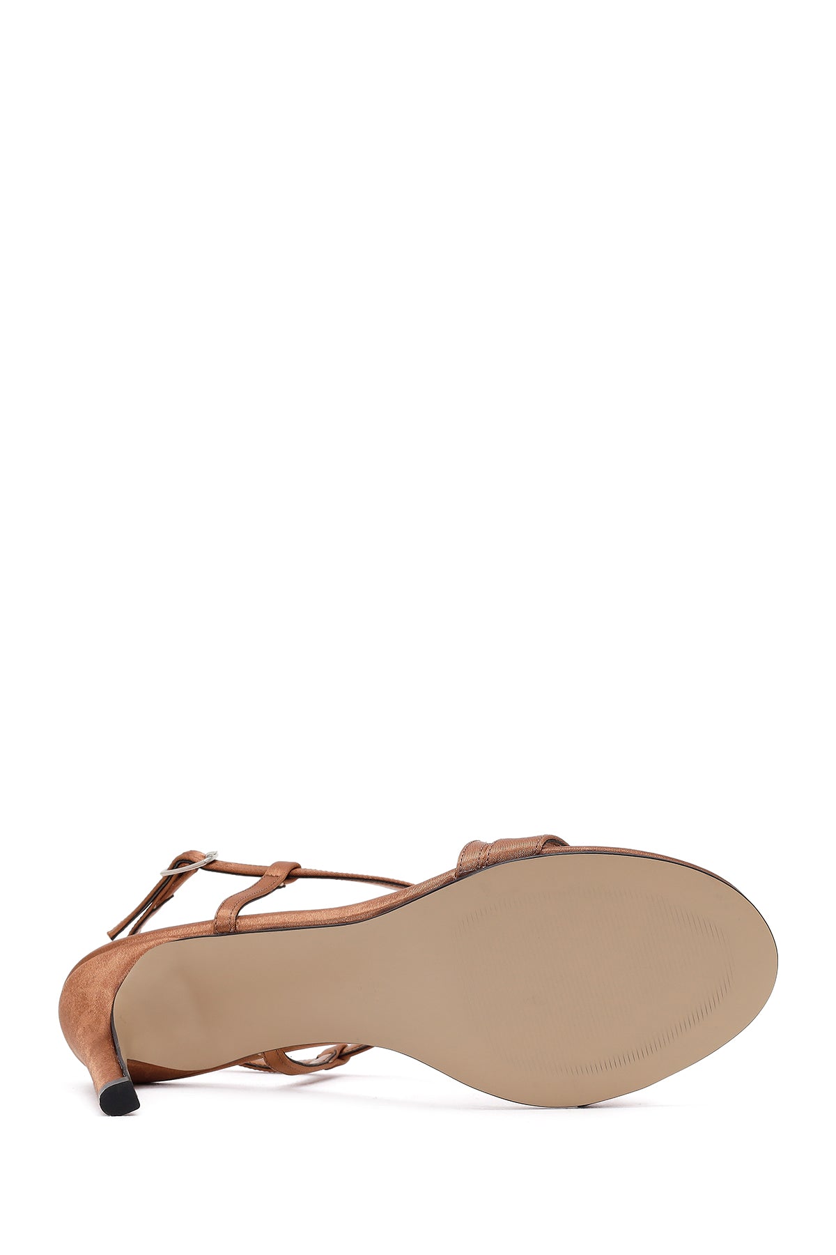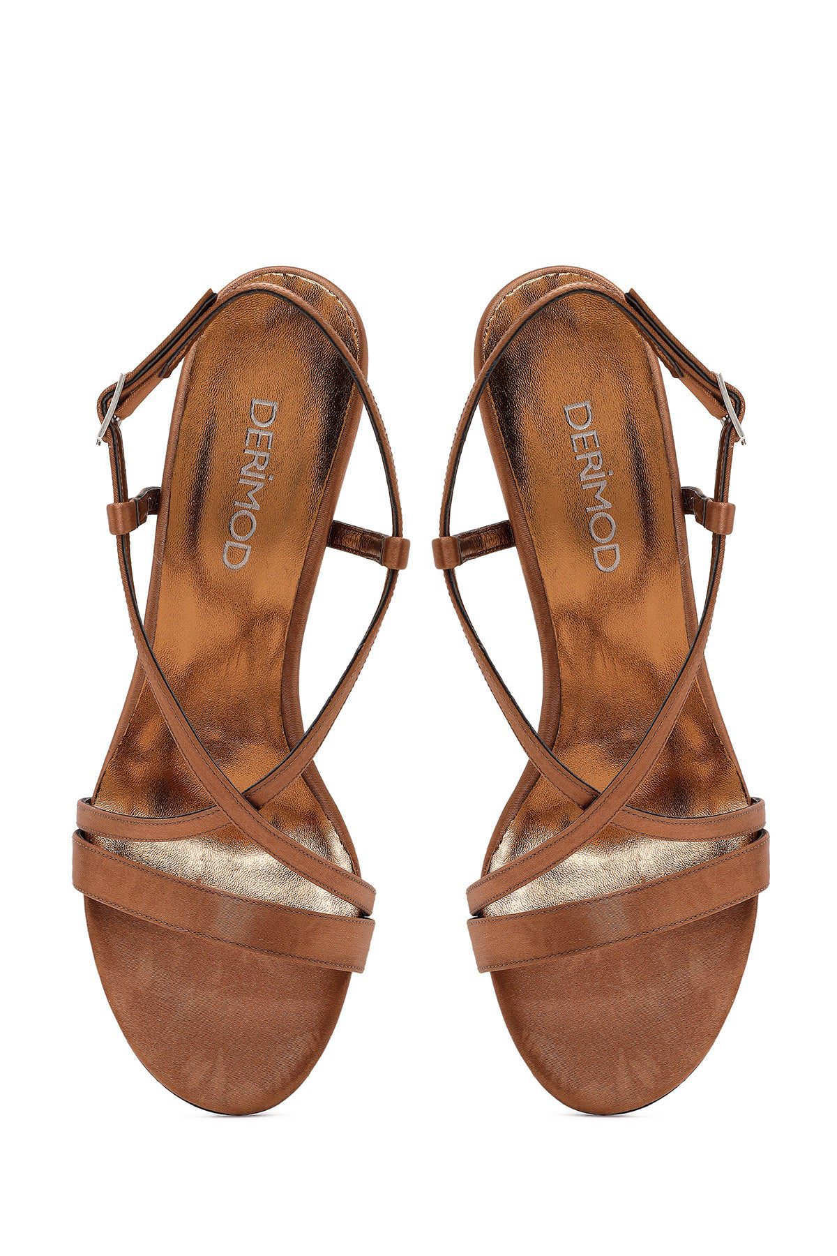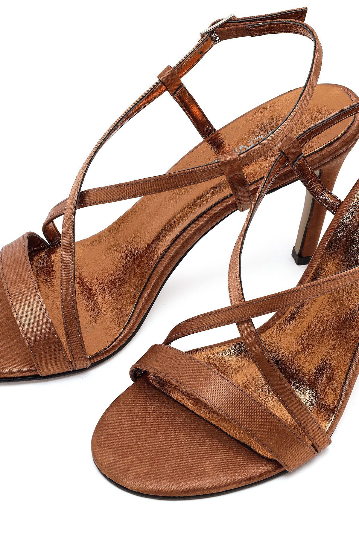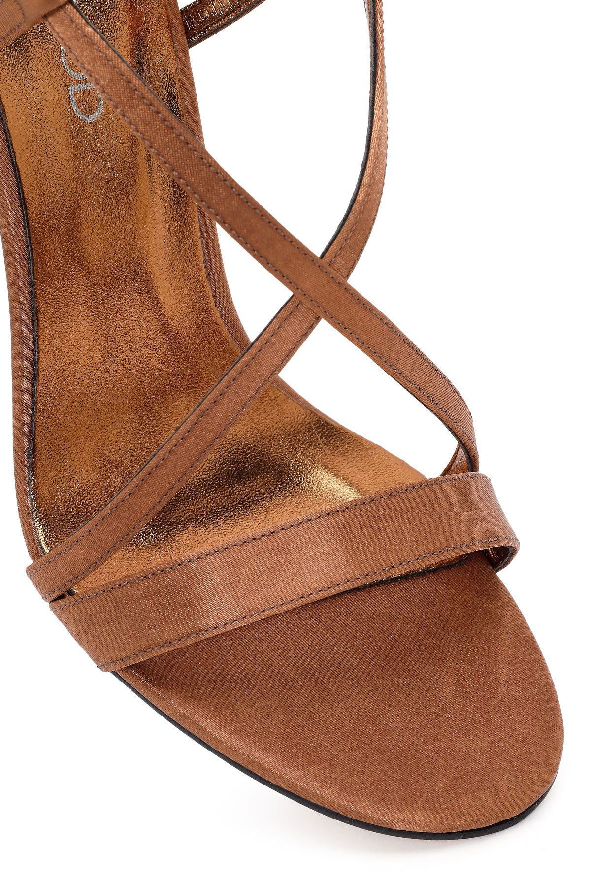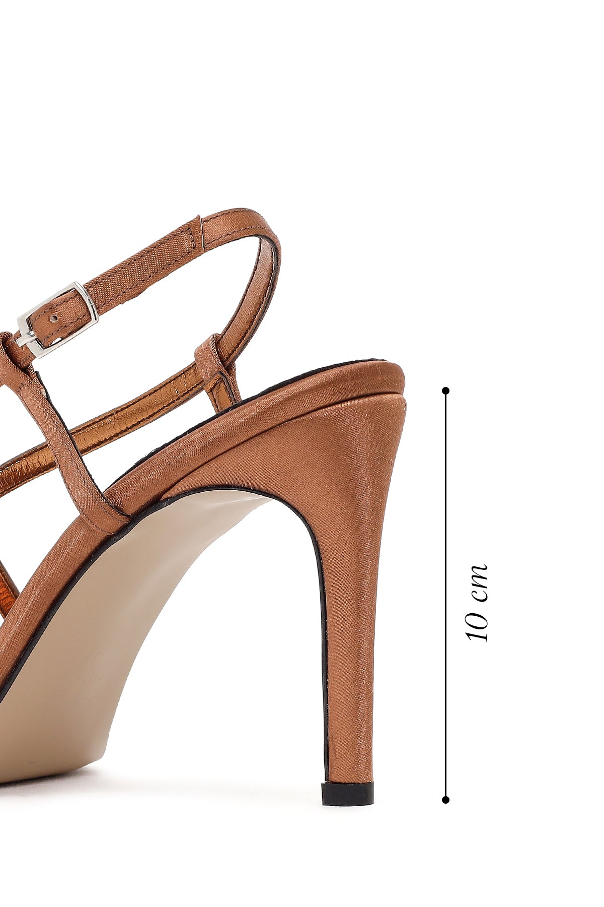 Kadın Bronz Bilekten Tokalı Yüksek İnce Topuklu Saten Sandalet
