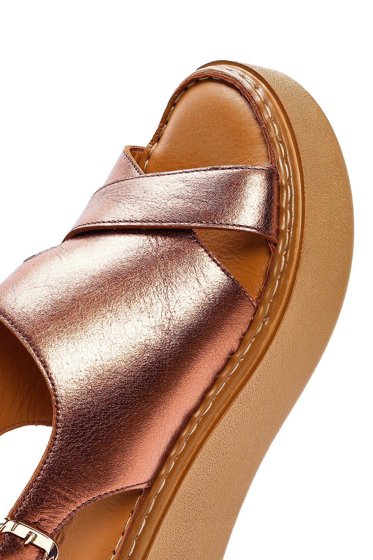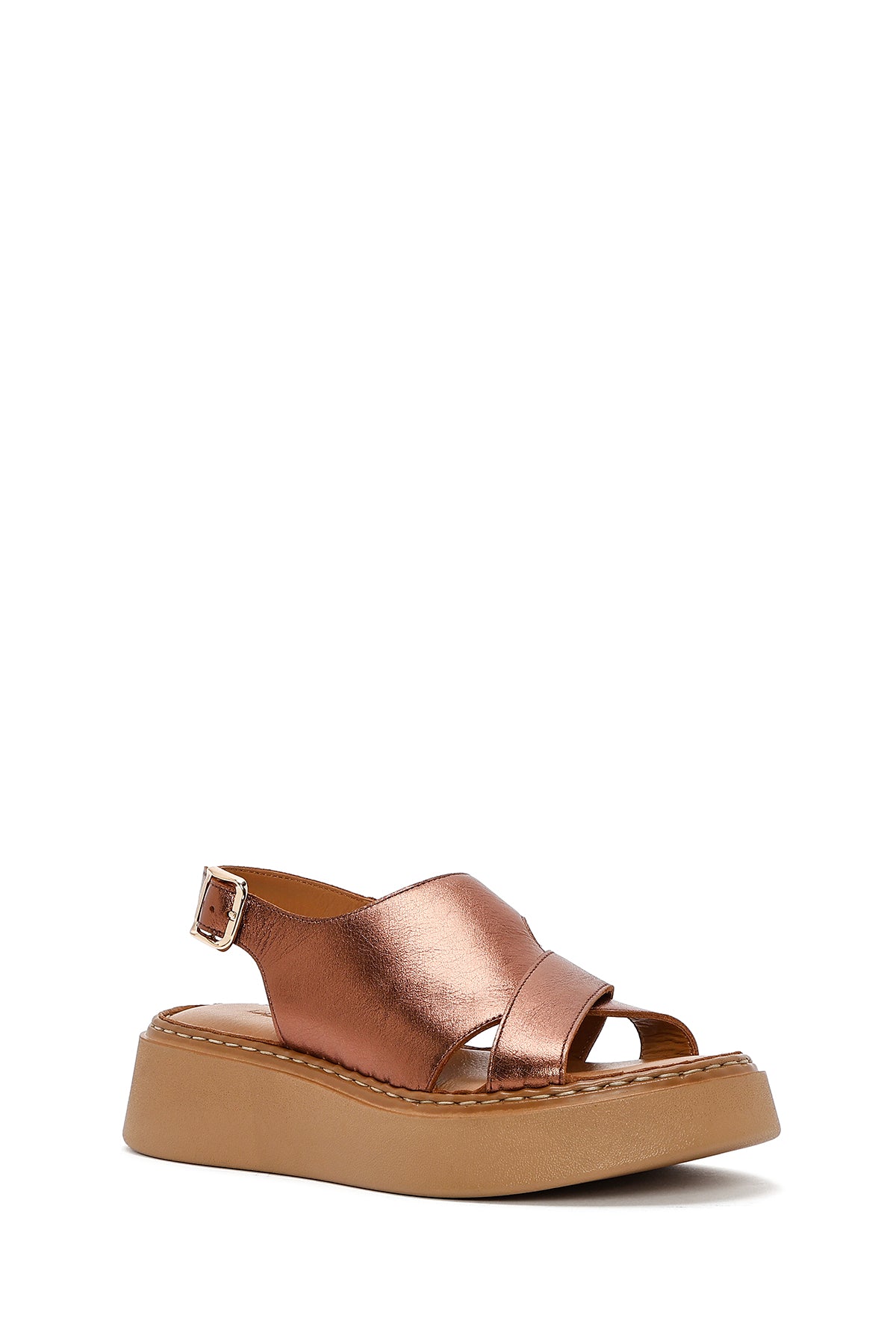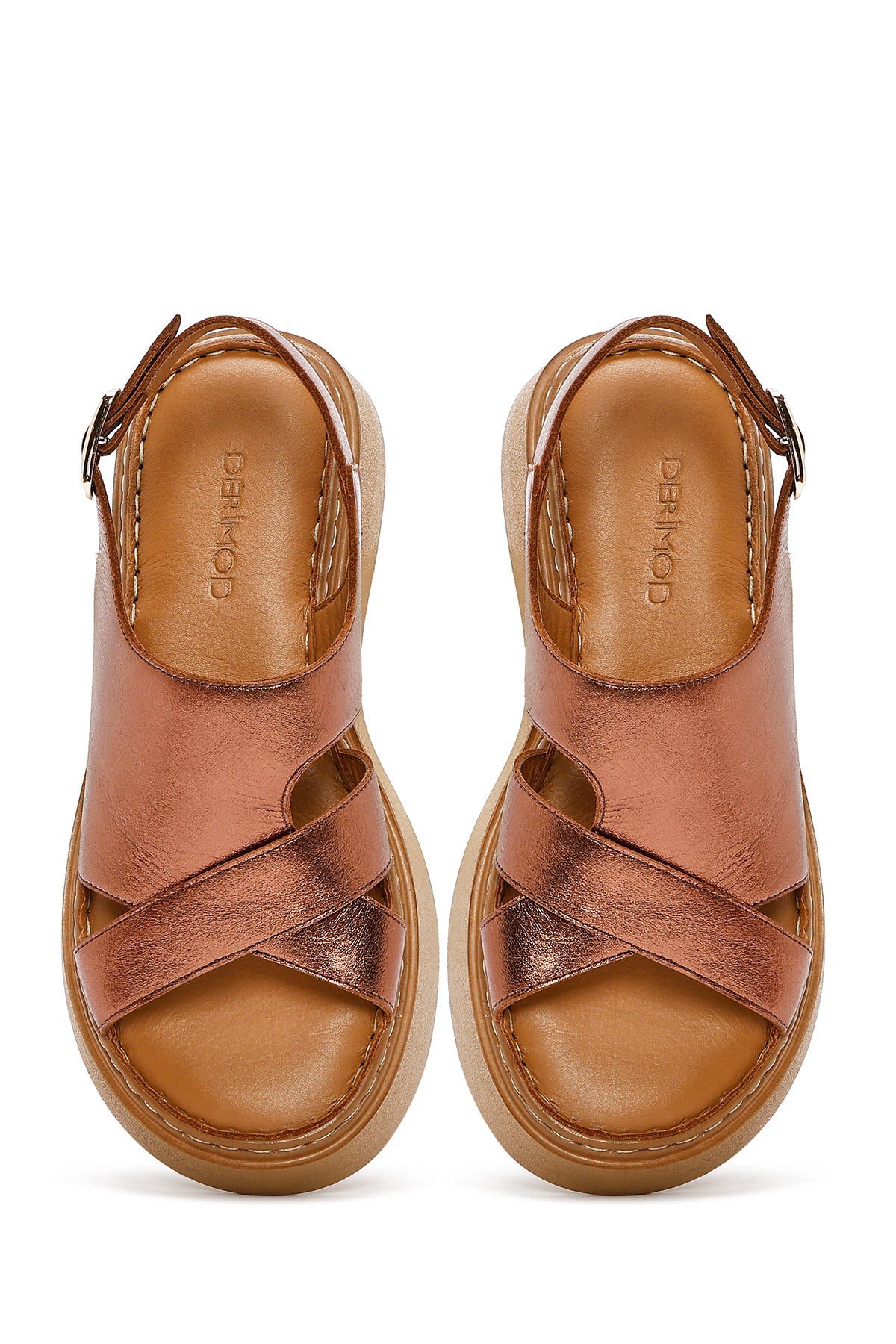 Kadın Bronz Kalın Tabanlı Metalik Deri Comfort Sandalet