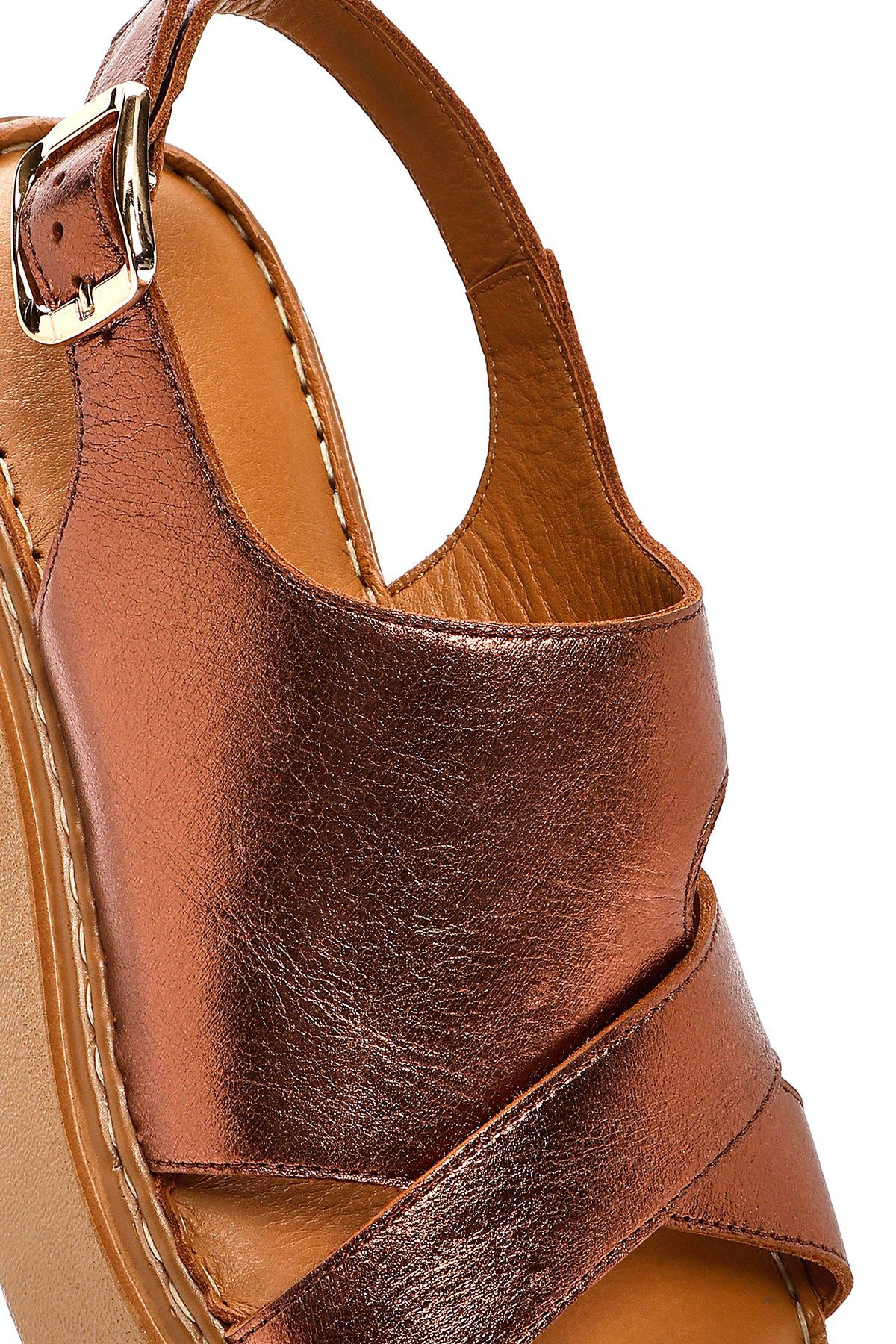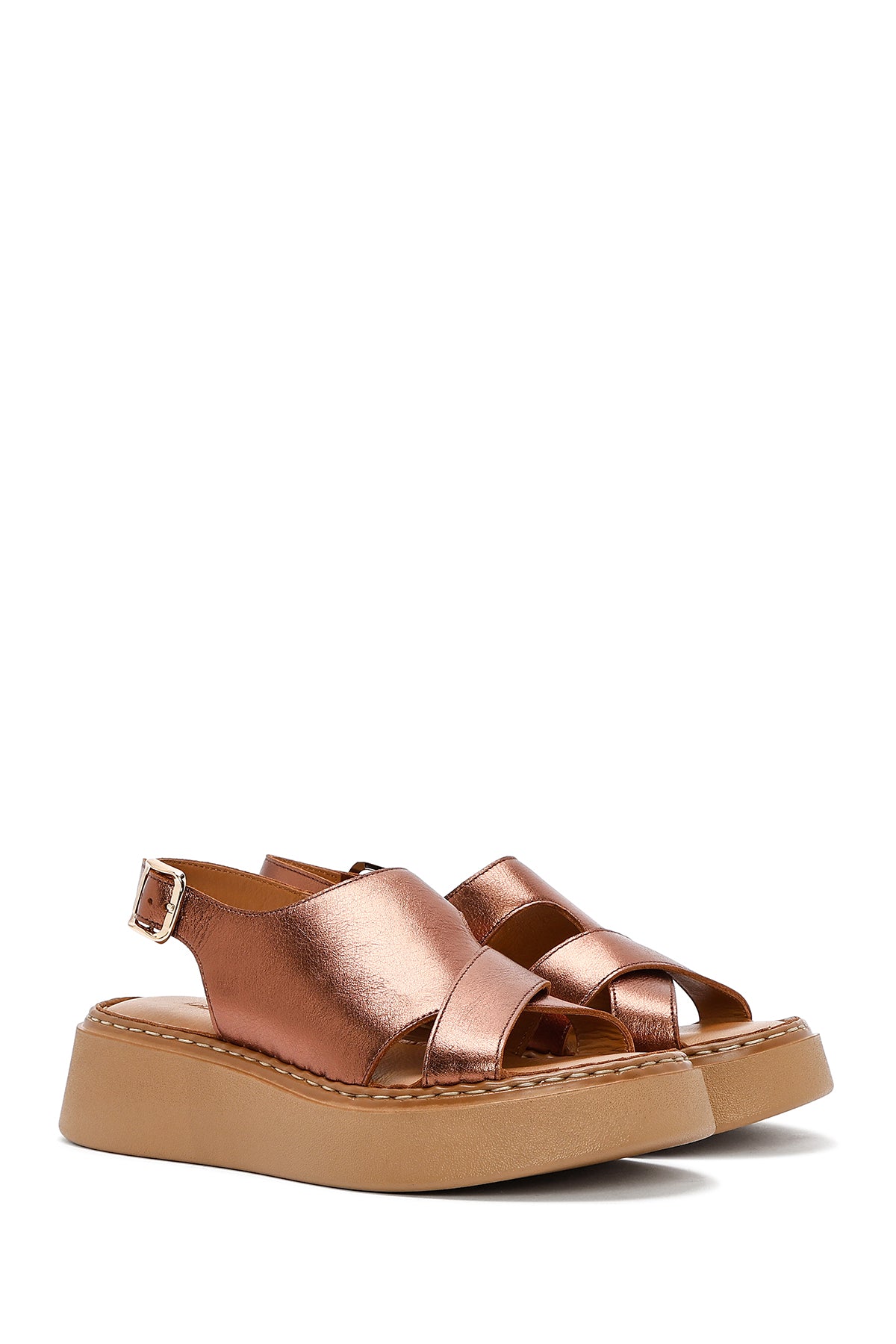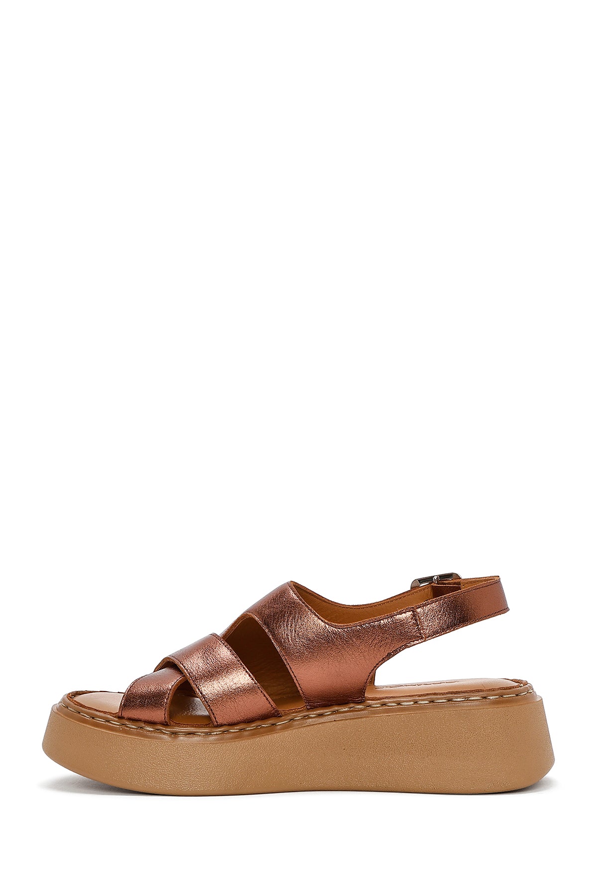 Kadın Bronz Kalın Tabanlı Metalik Deri Comfort Sandalet