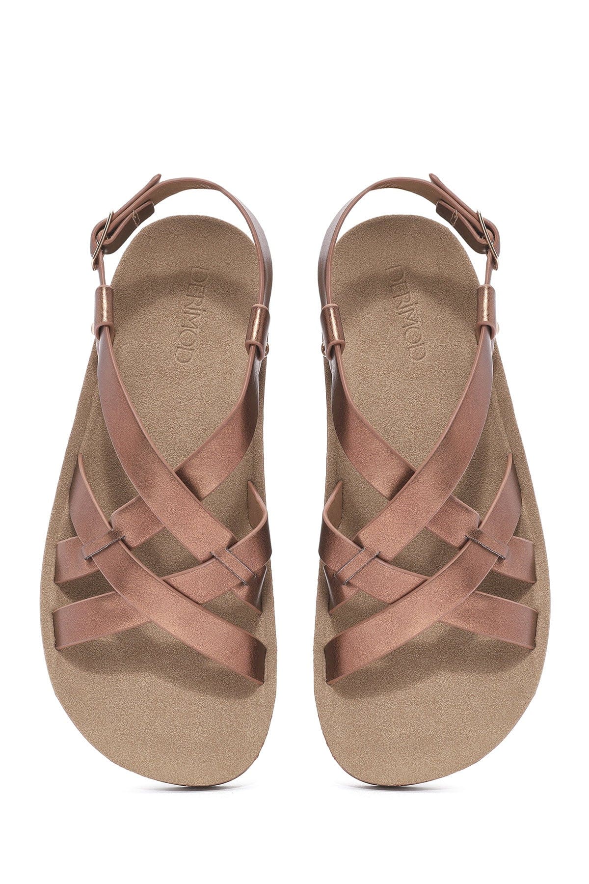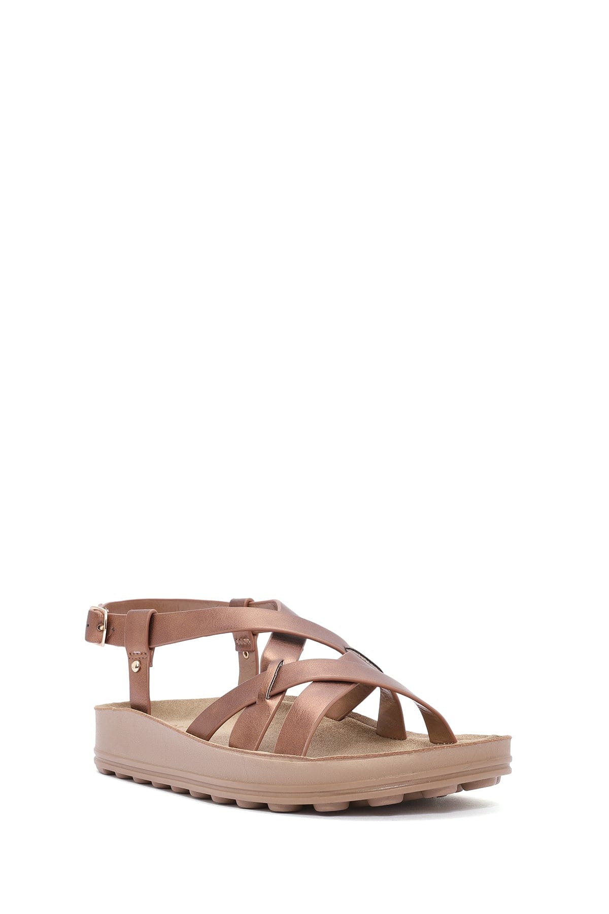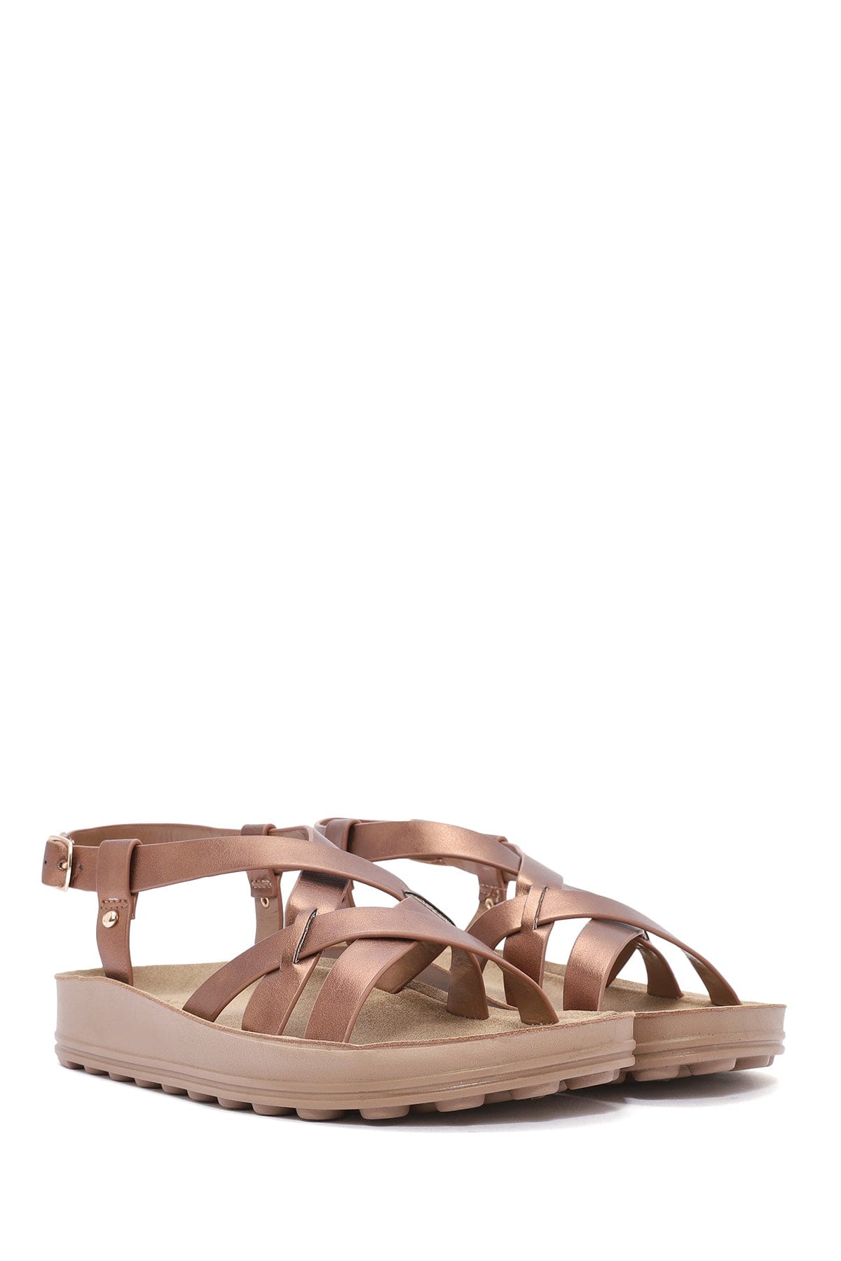 Kadın Bronz Kalın Tabanlı Metalik Sandalet