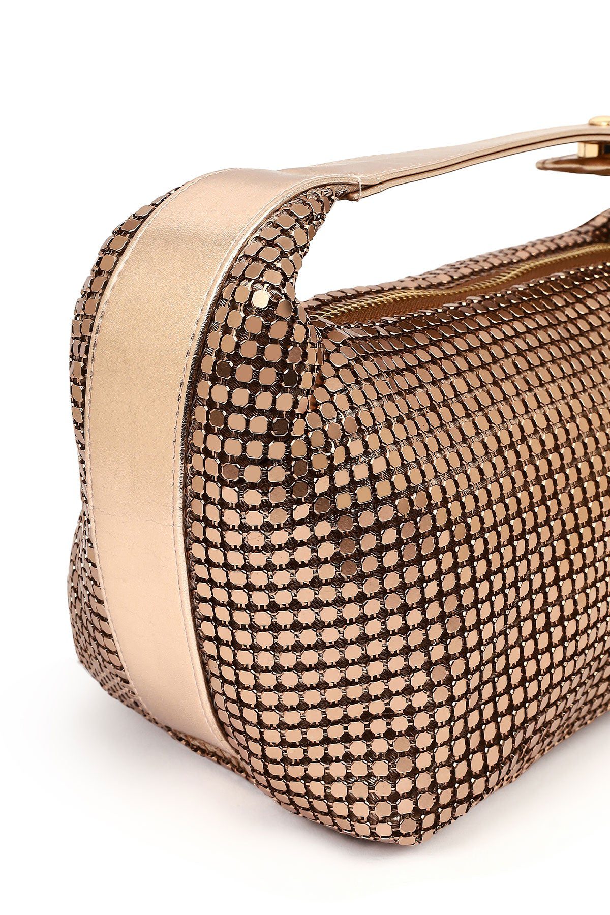 زیبا استایلر / فروشگاه / زنانه / کیف و اکسسوری زنانه / کیف بازویی زنانه / کیف زنانه برنزی مینی پولک‌دار دری مد