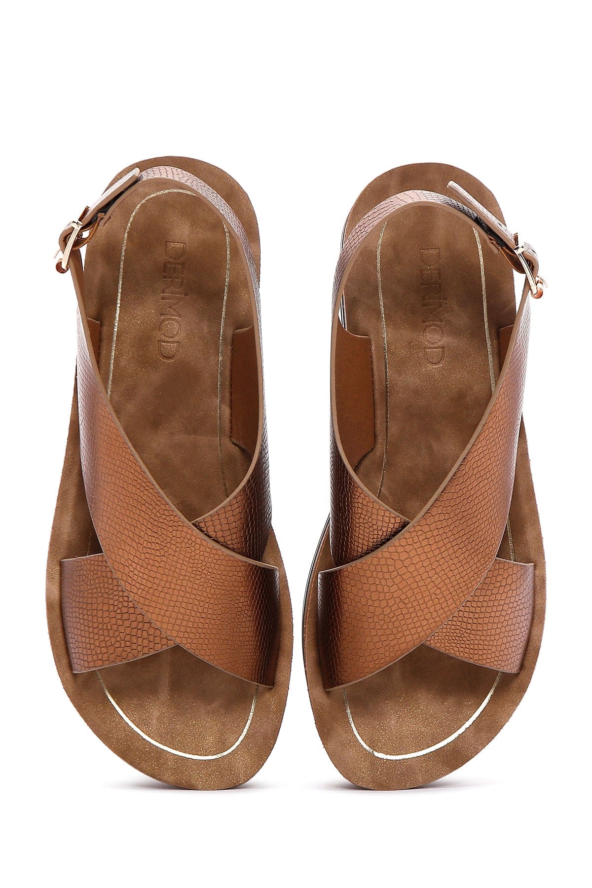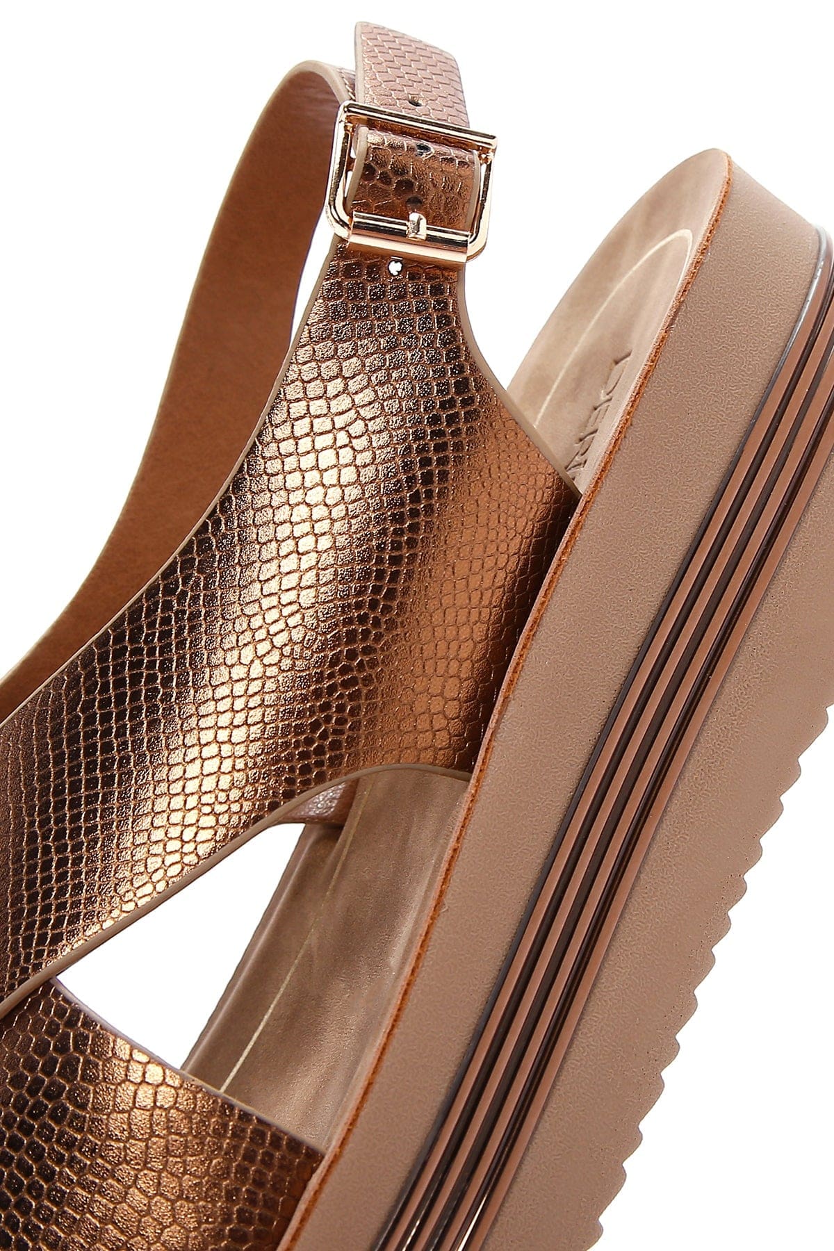 Kadın Bronz Kalın Tabanlı Metalik Sandalet