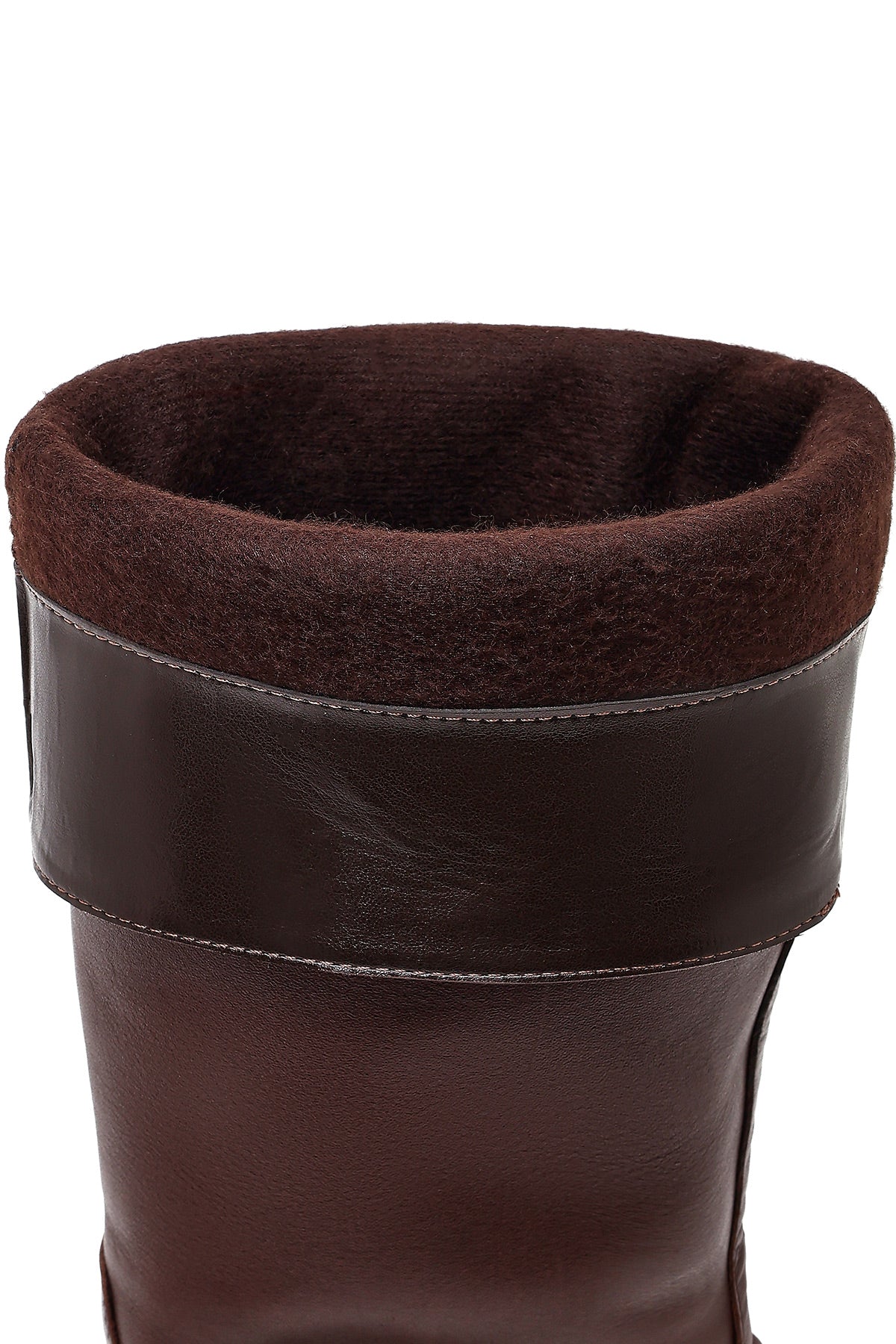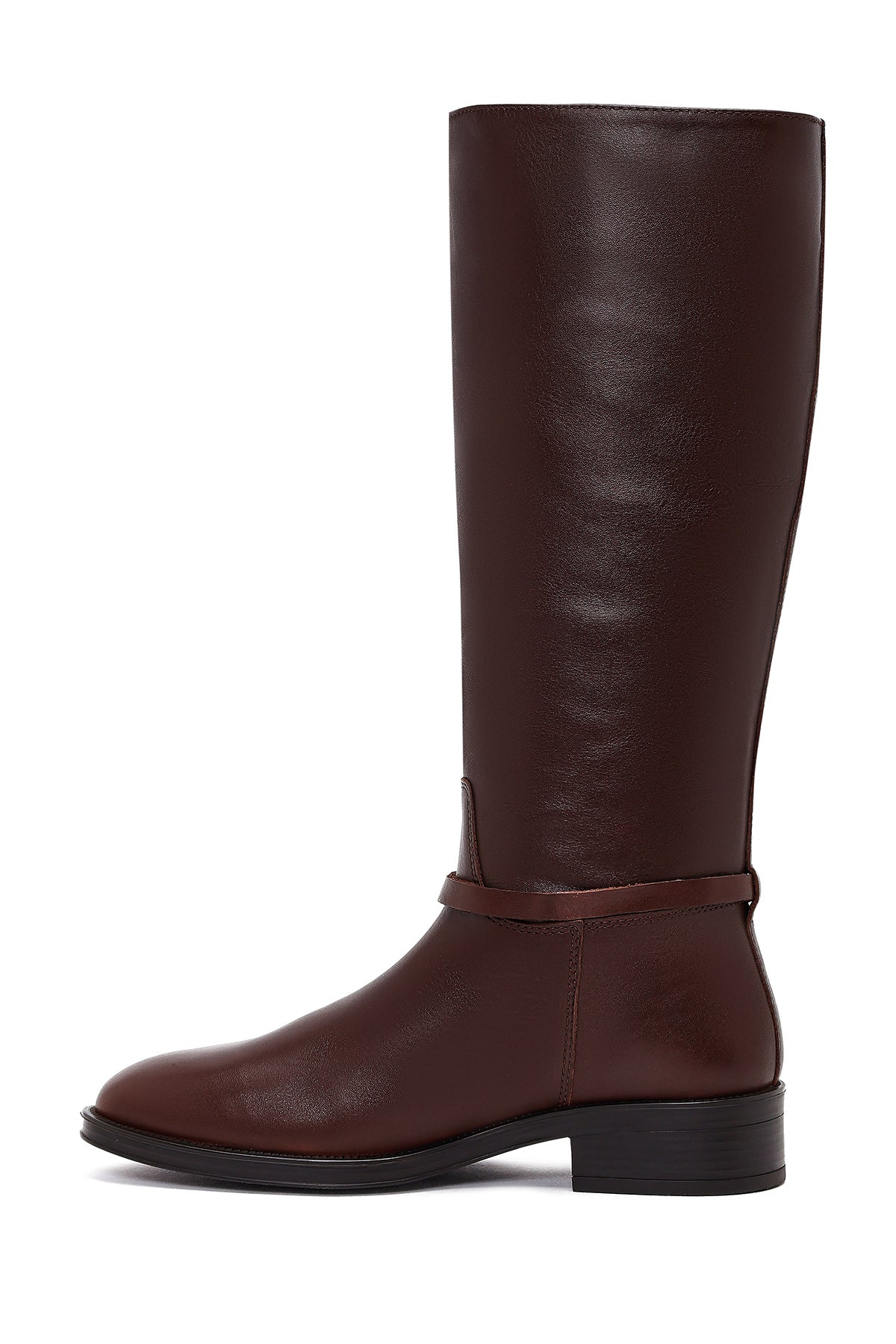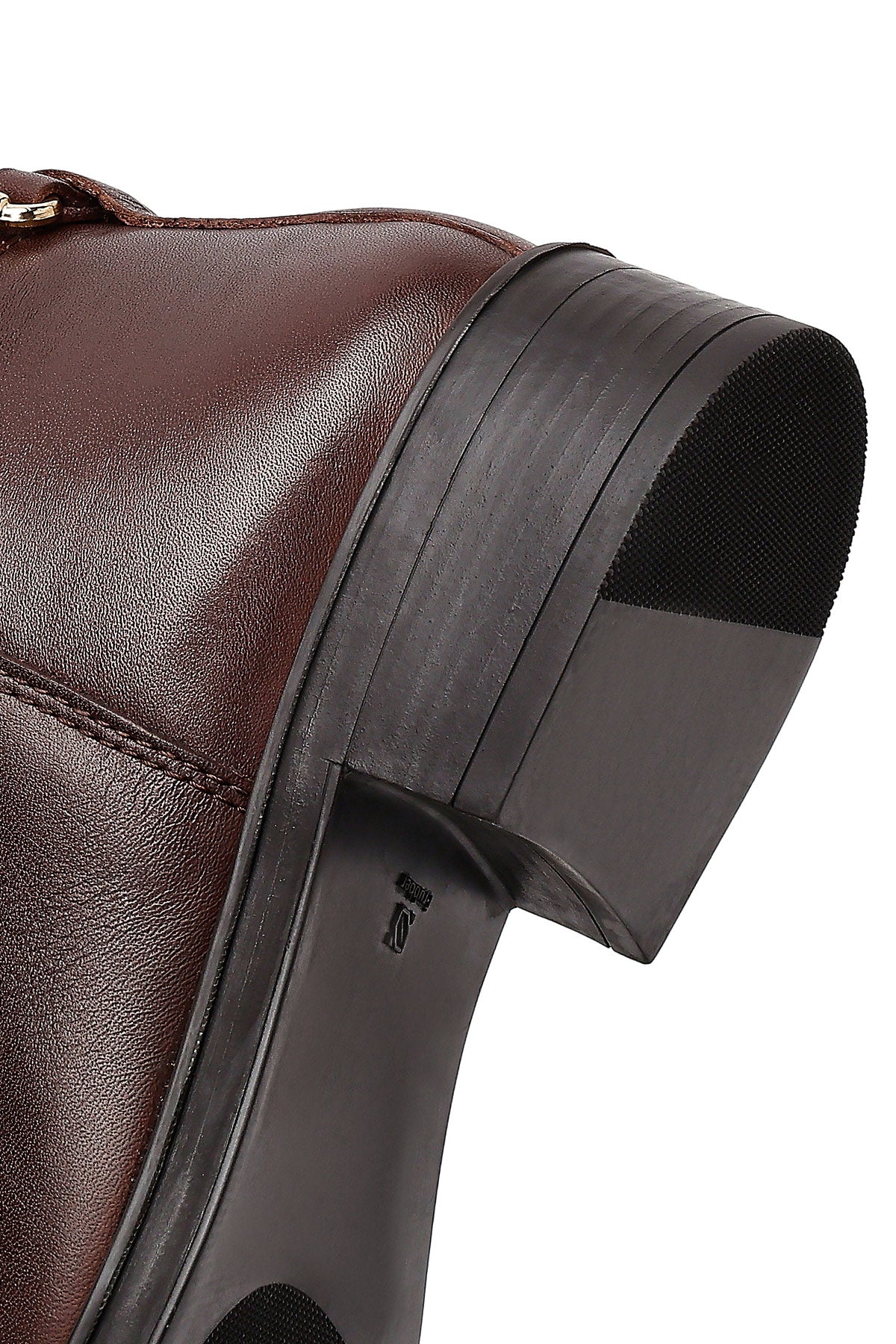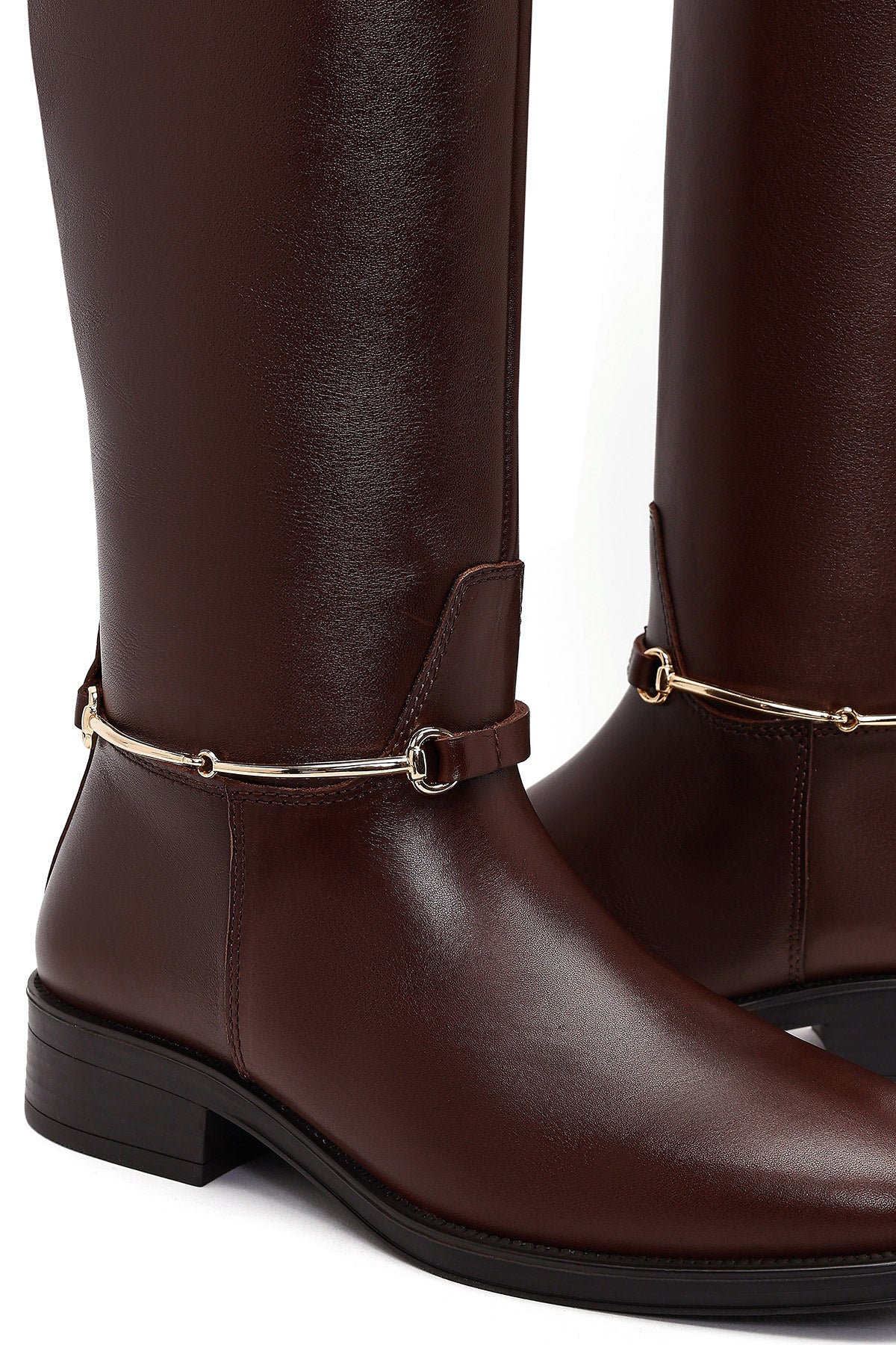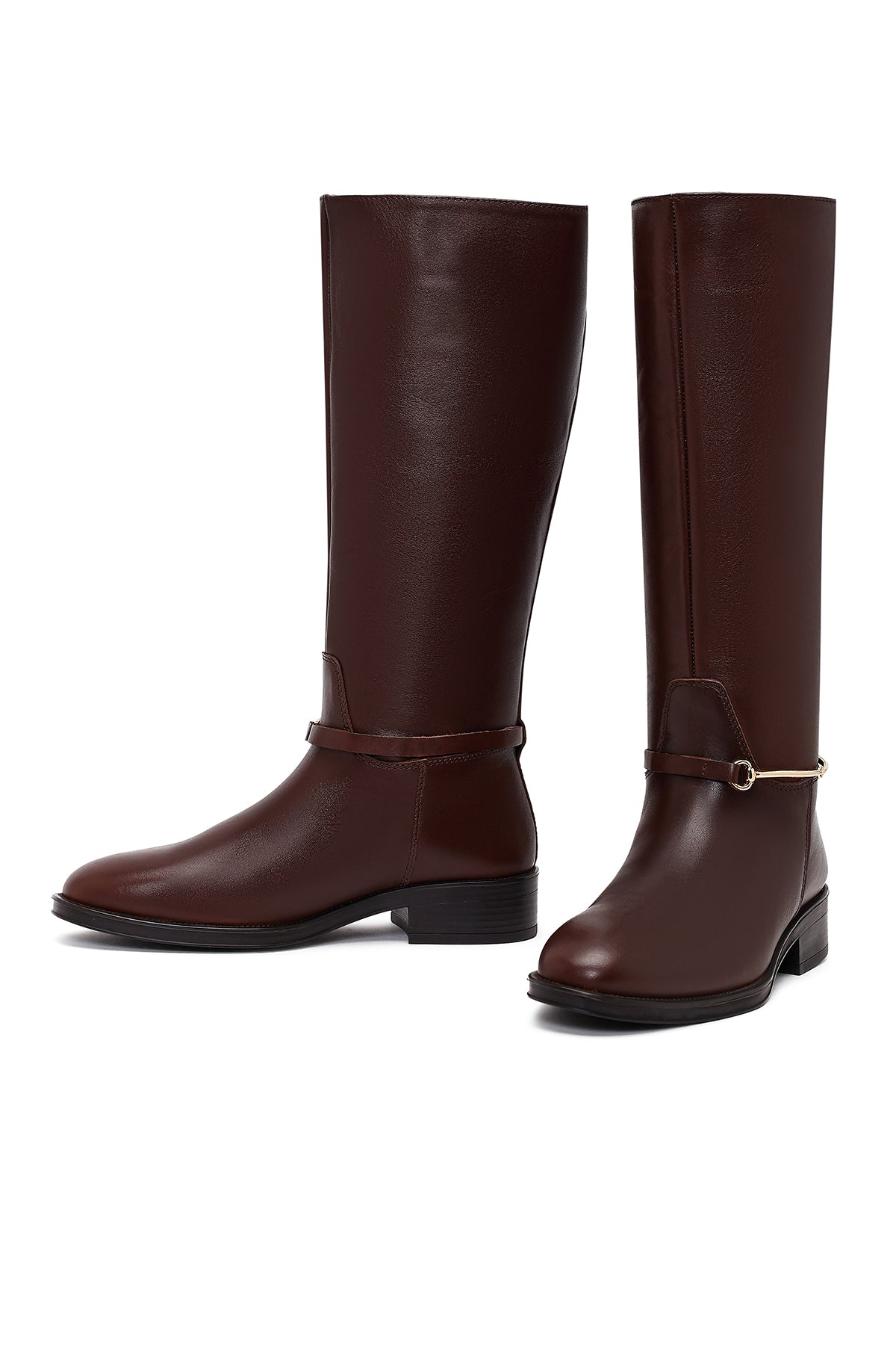 چکمه زنانه چرم قهوهای اکسسوریدار دری مد