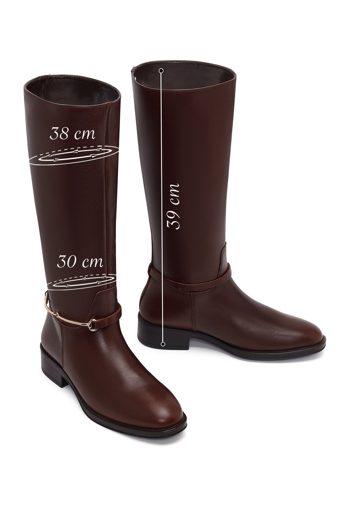Kadın Kahverengi Aksesuarlı Deri Çizme
