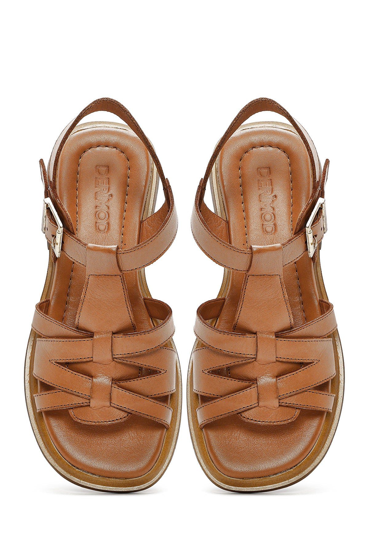 Kadın Taba Bilekten Tokalı Deri Sandalet