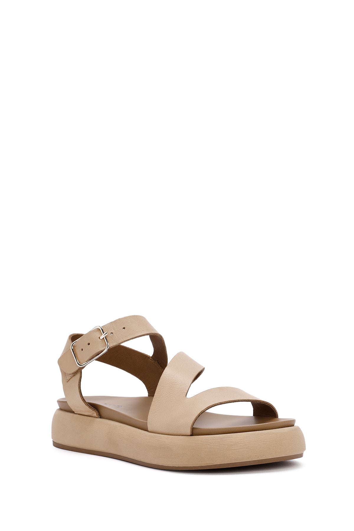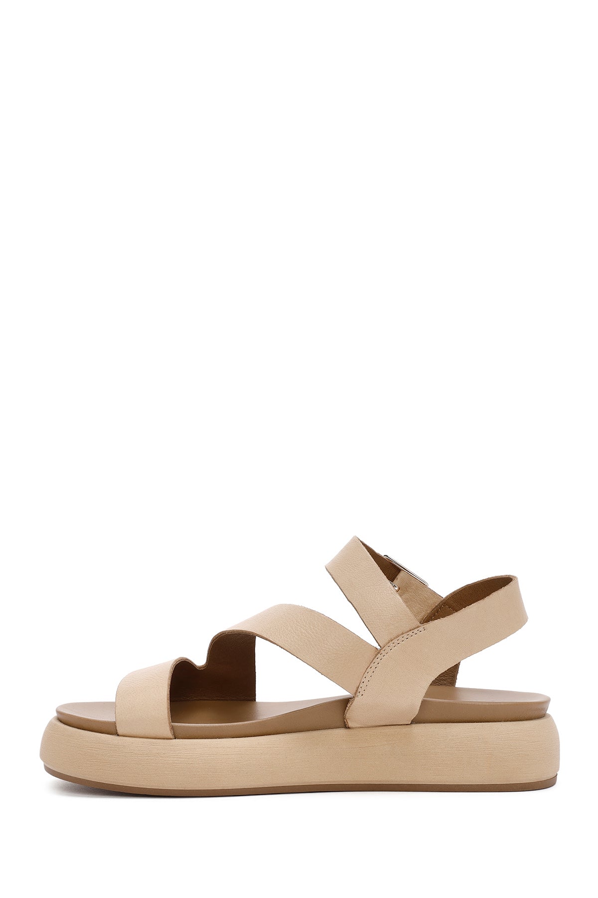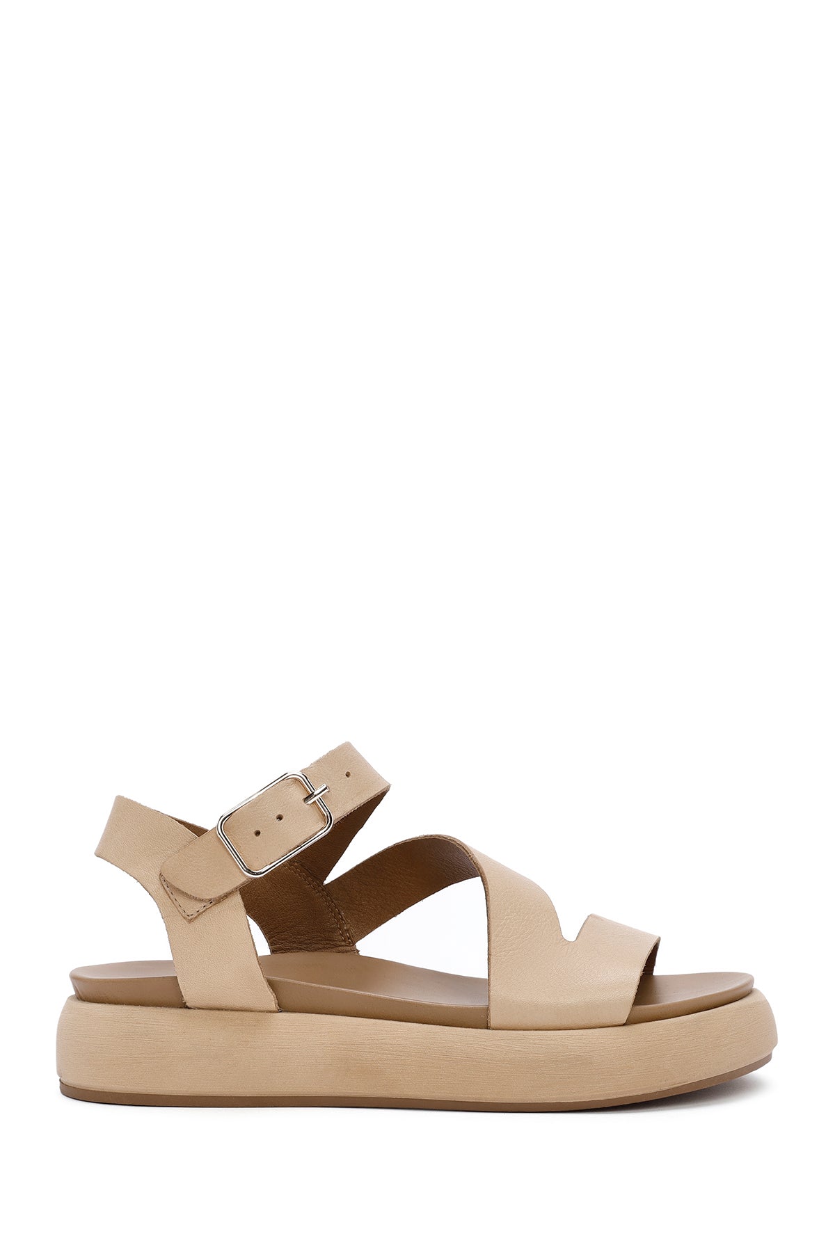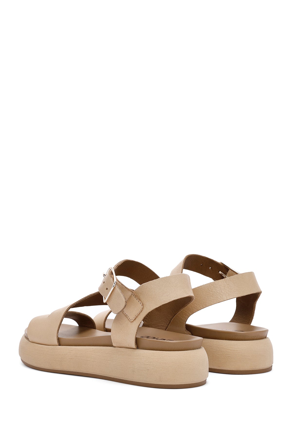 Kadın Kahverengi Bilekten Bantlı Kalın Tabanlı Deri Sandalet
