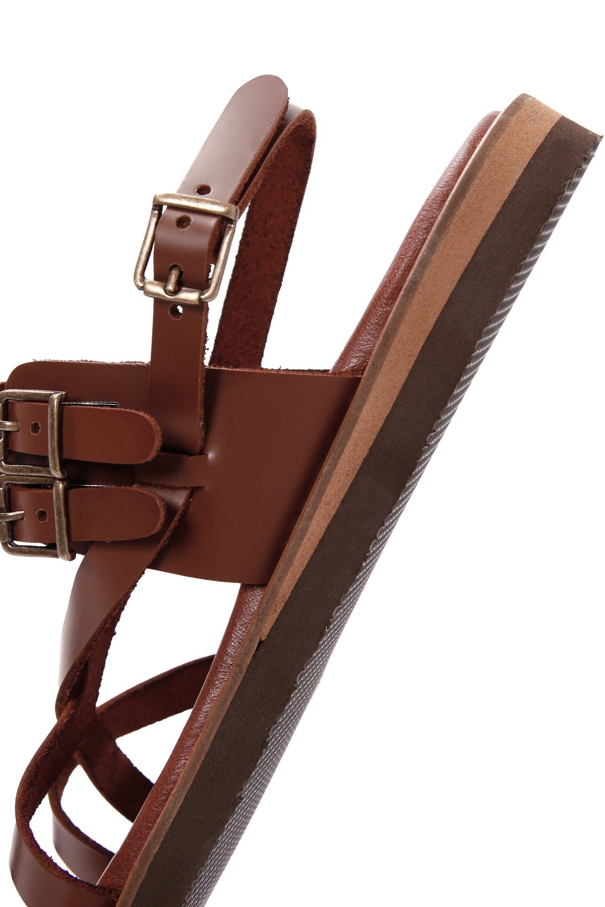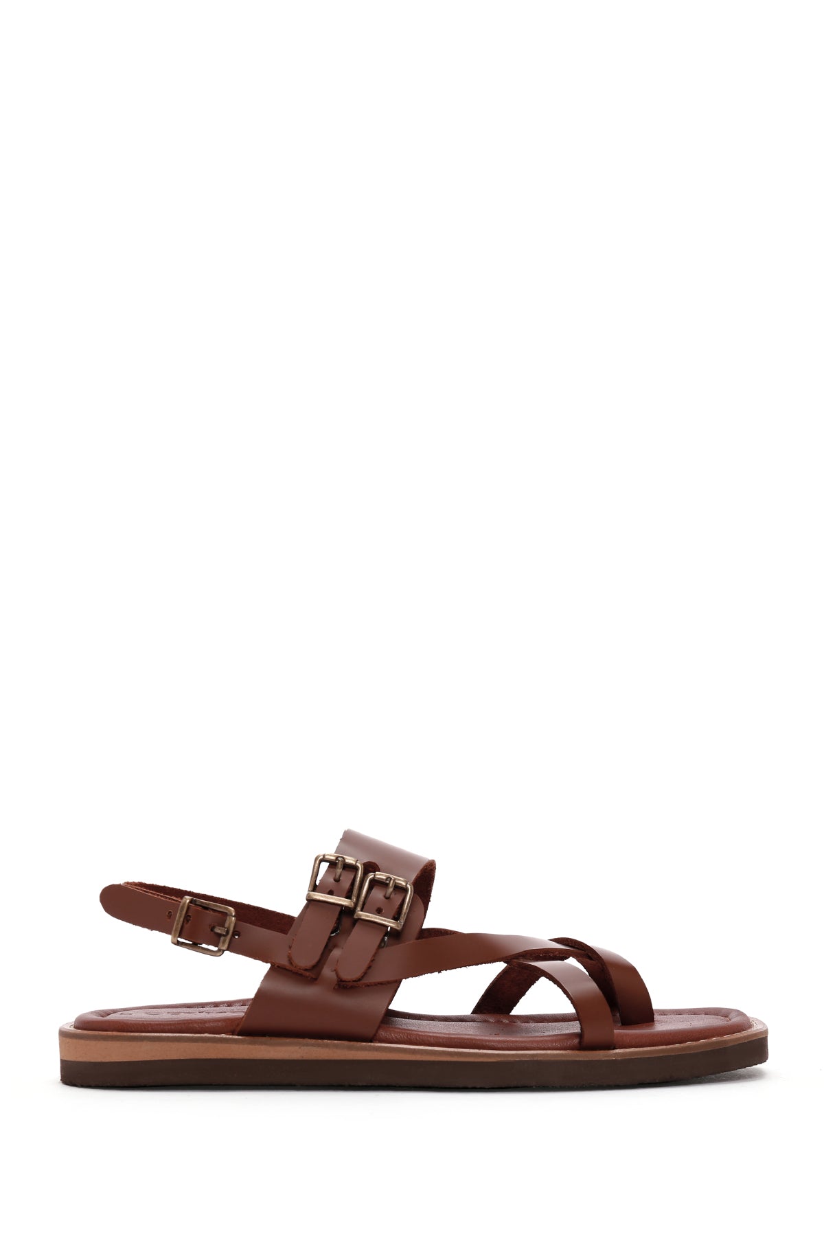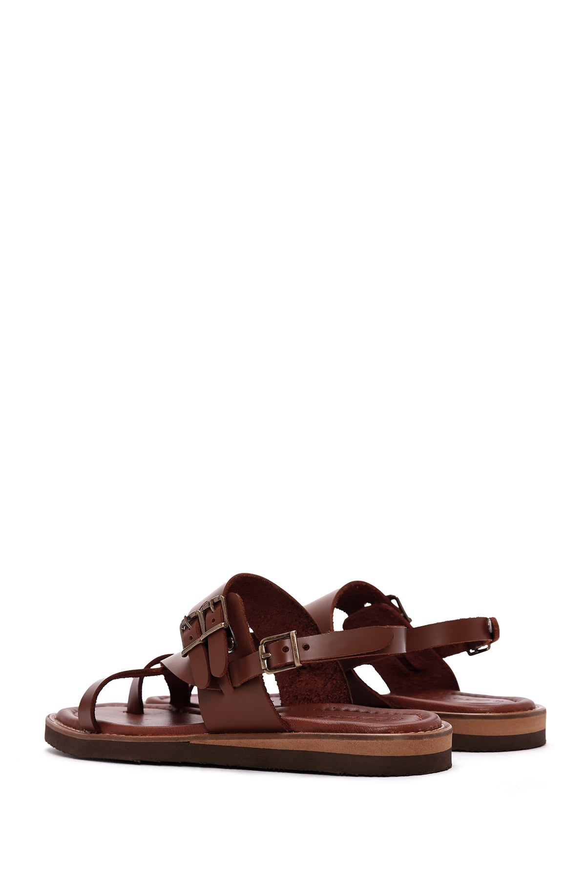 Kadın Taba Bilekten Tokalı Parmak Arası Deri Sandalet