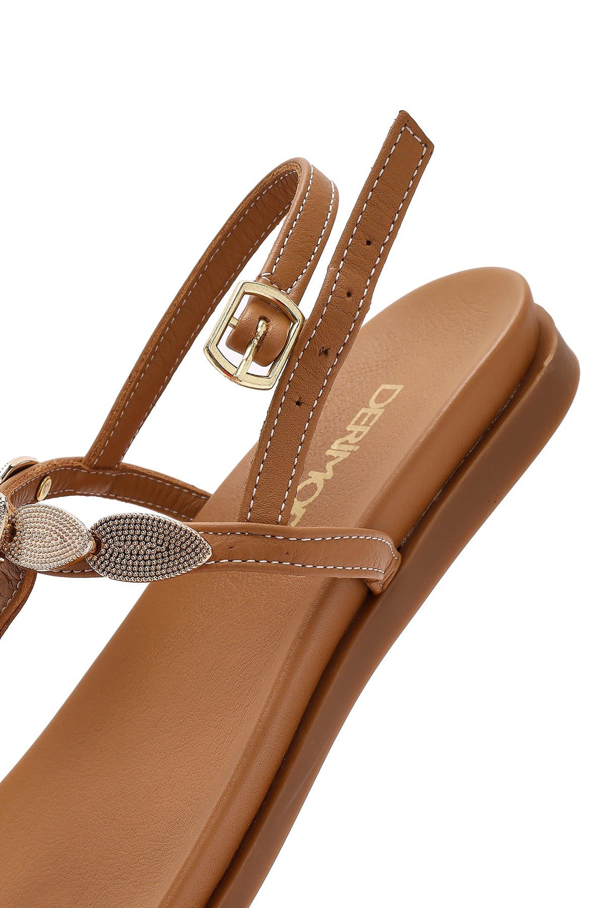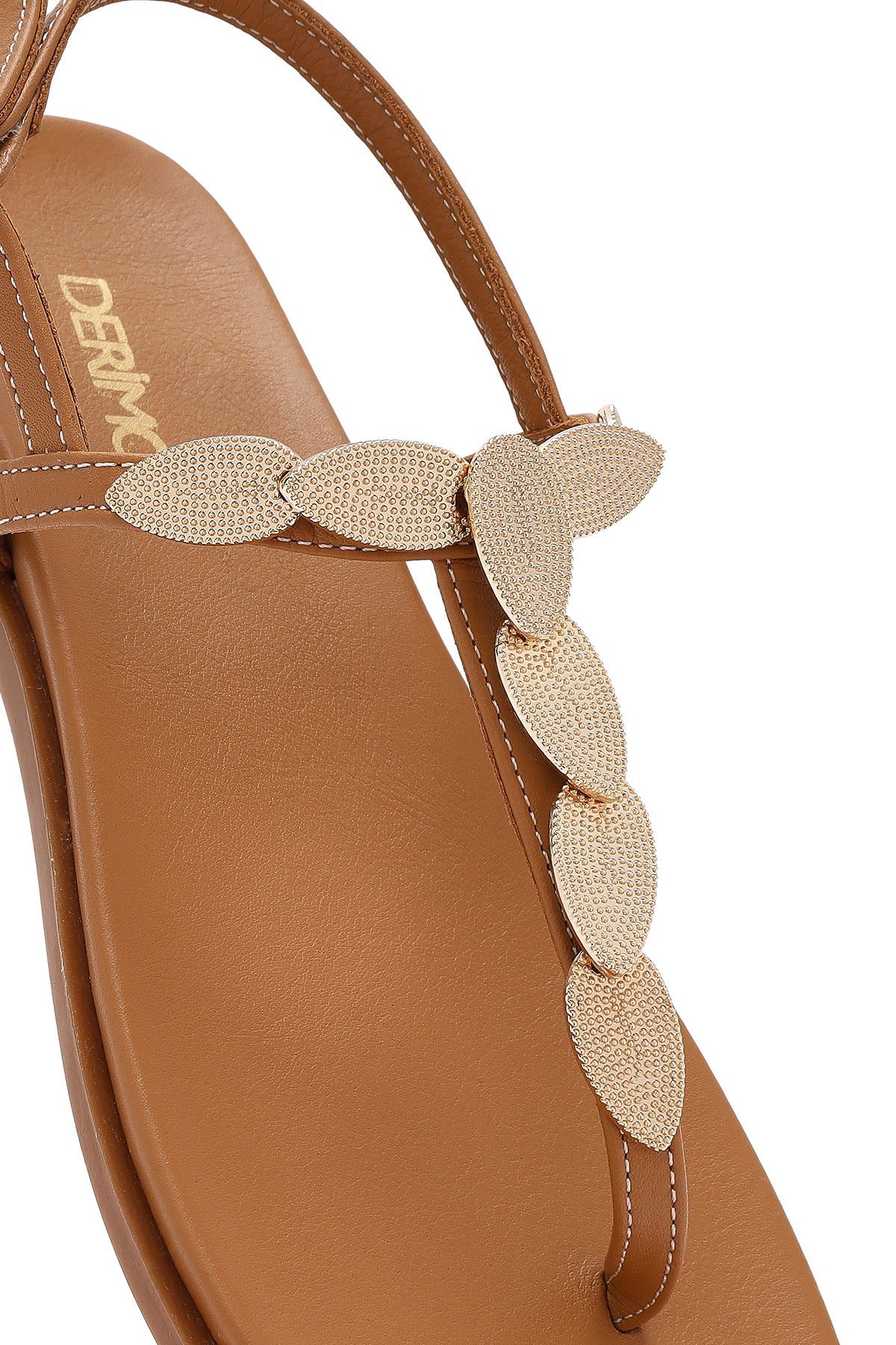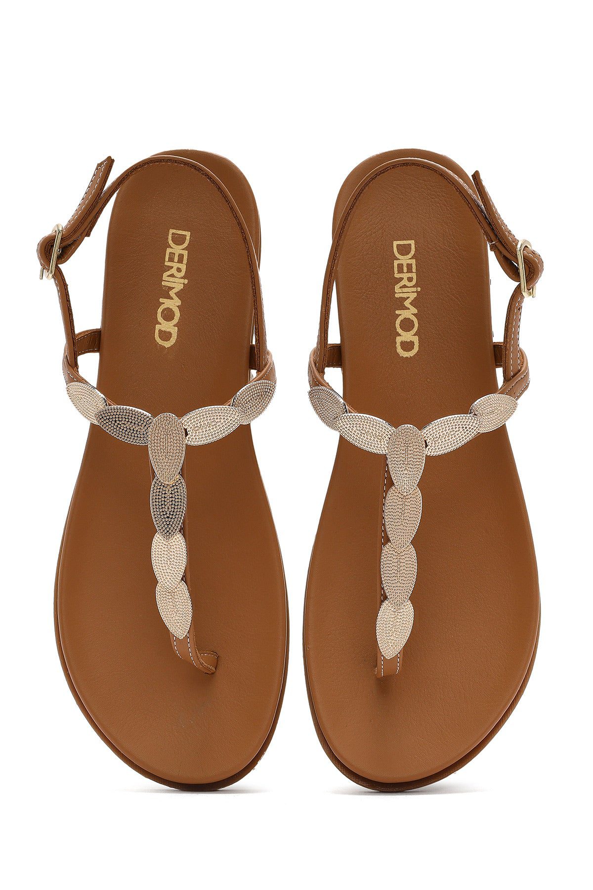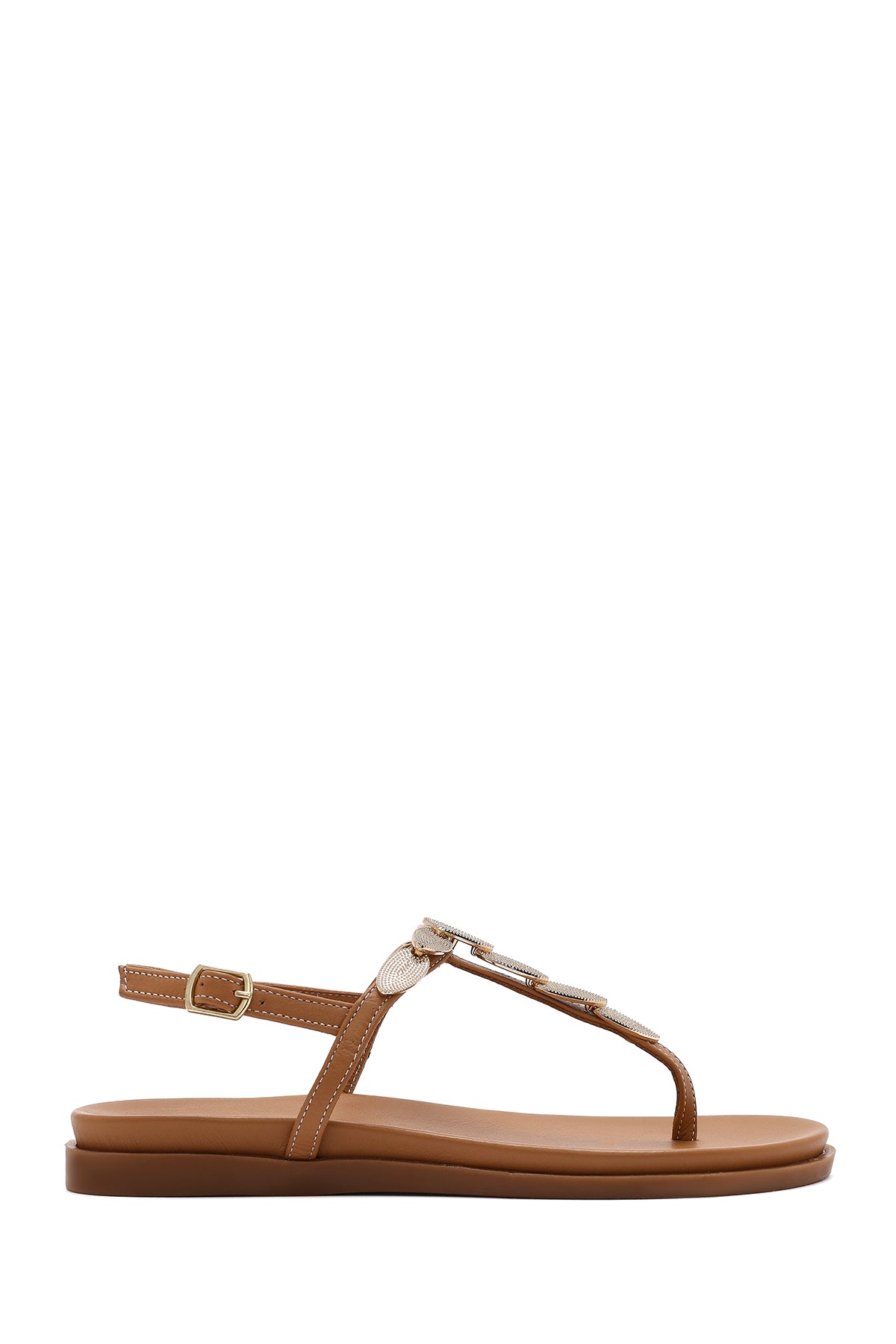 Kadın Taba Tokalı Parmak Arası Deri Sandalet