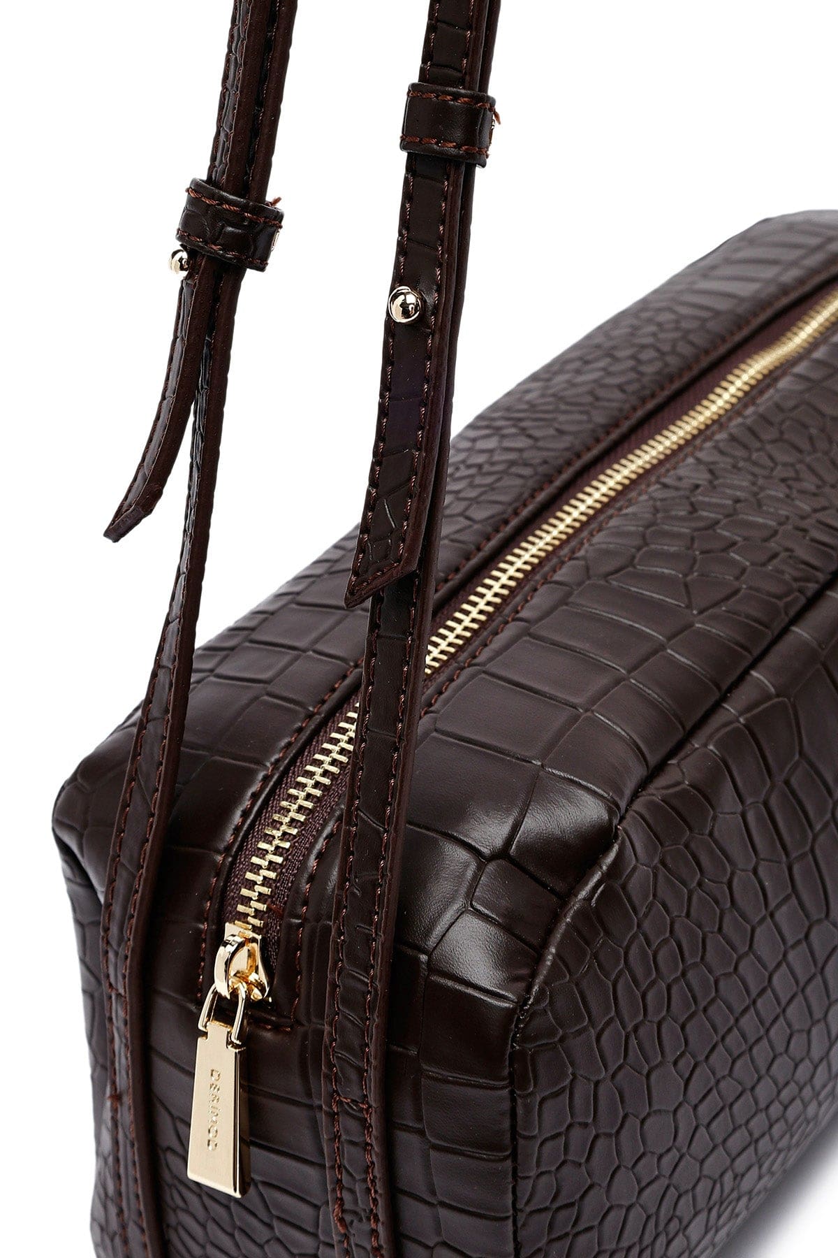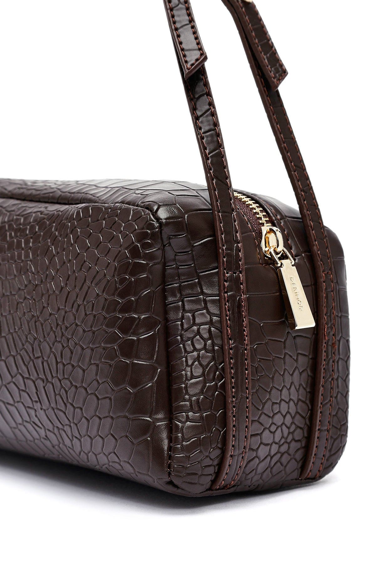 Kadın Kahverengi Kroko Desenli Omuz Çantası
