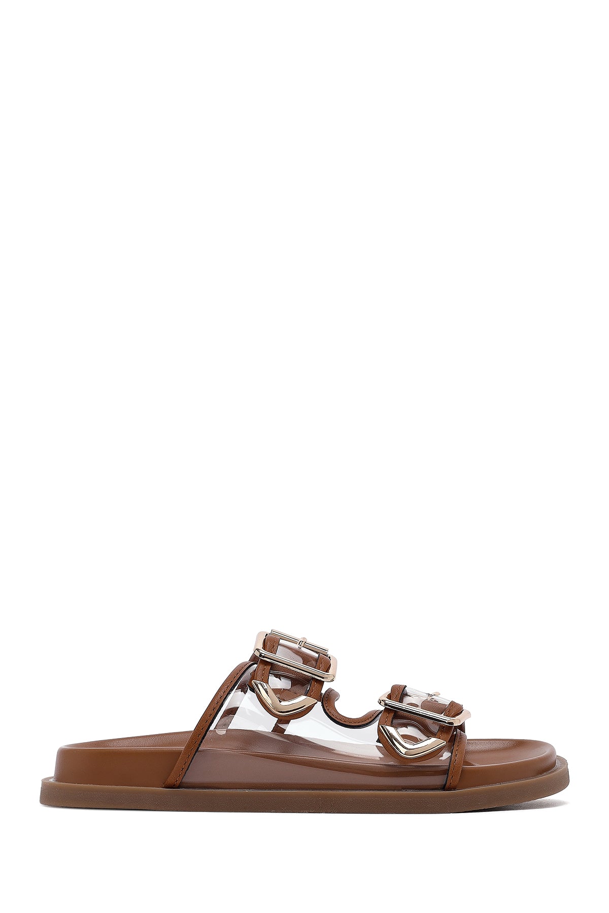 دمپایی زنانه قهوهای دو سگکه دری مد