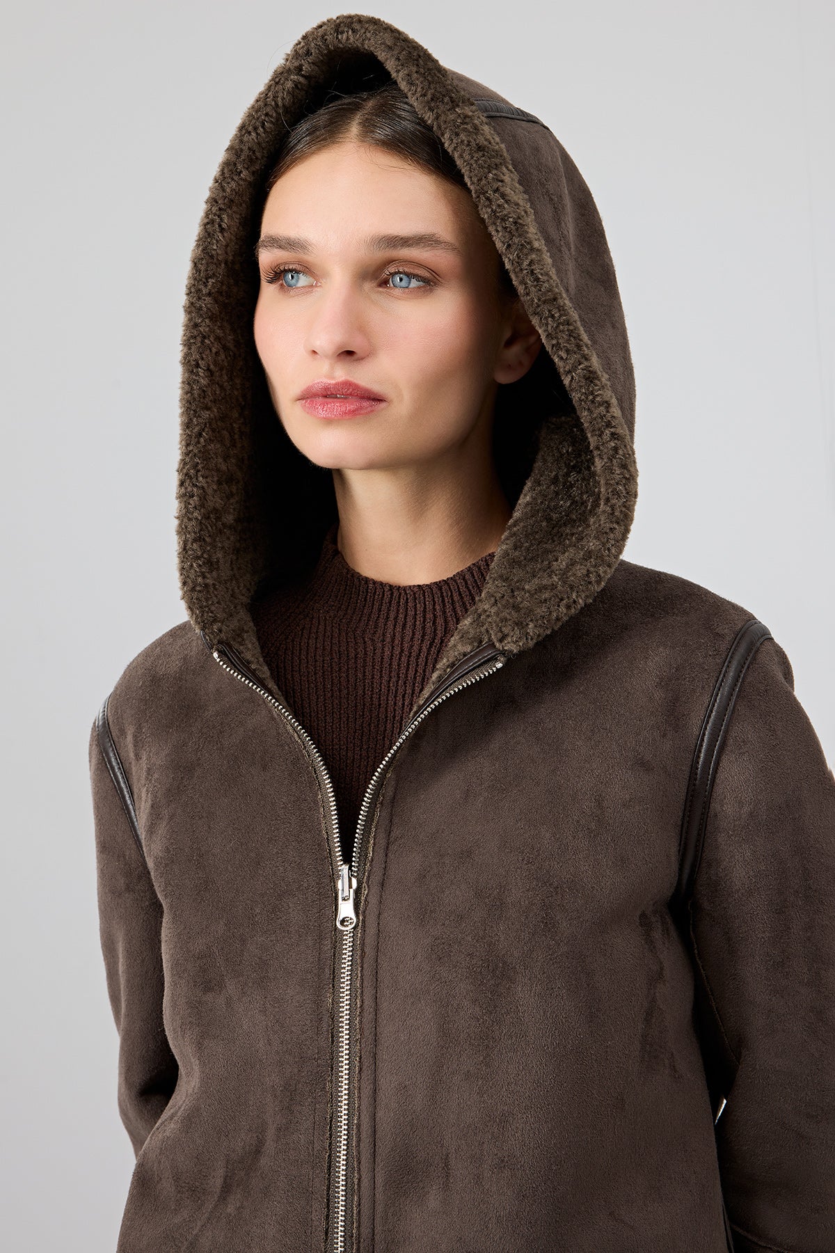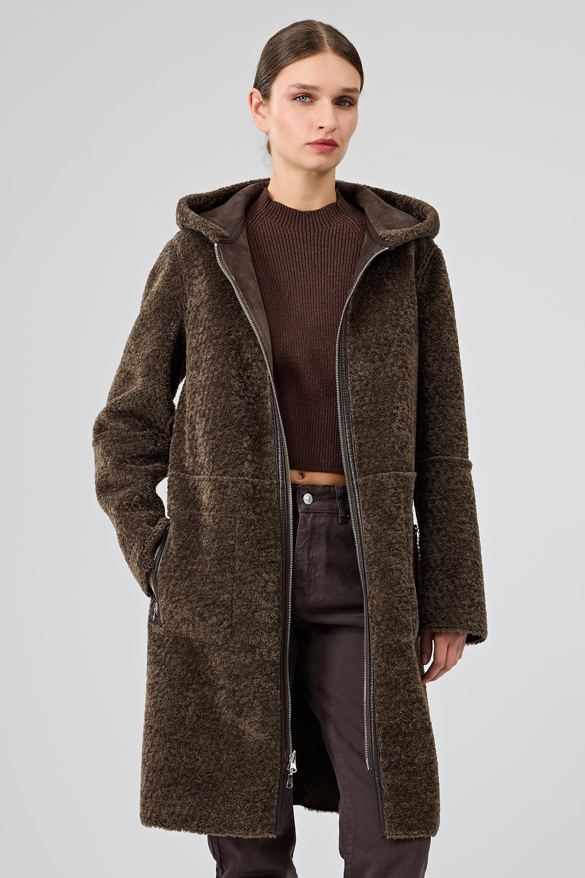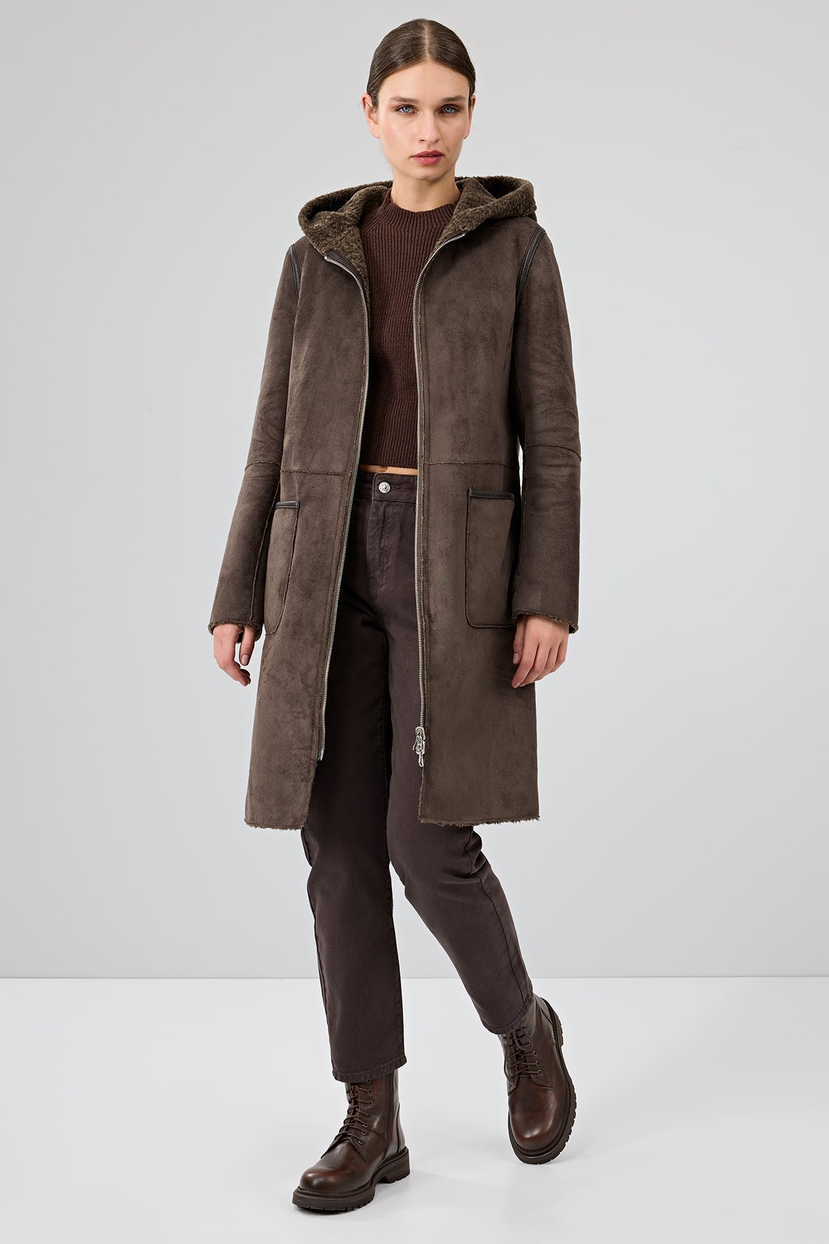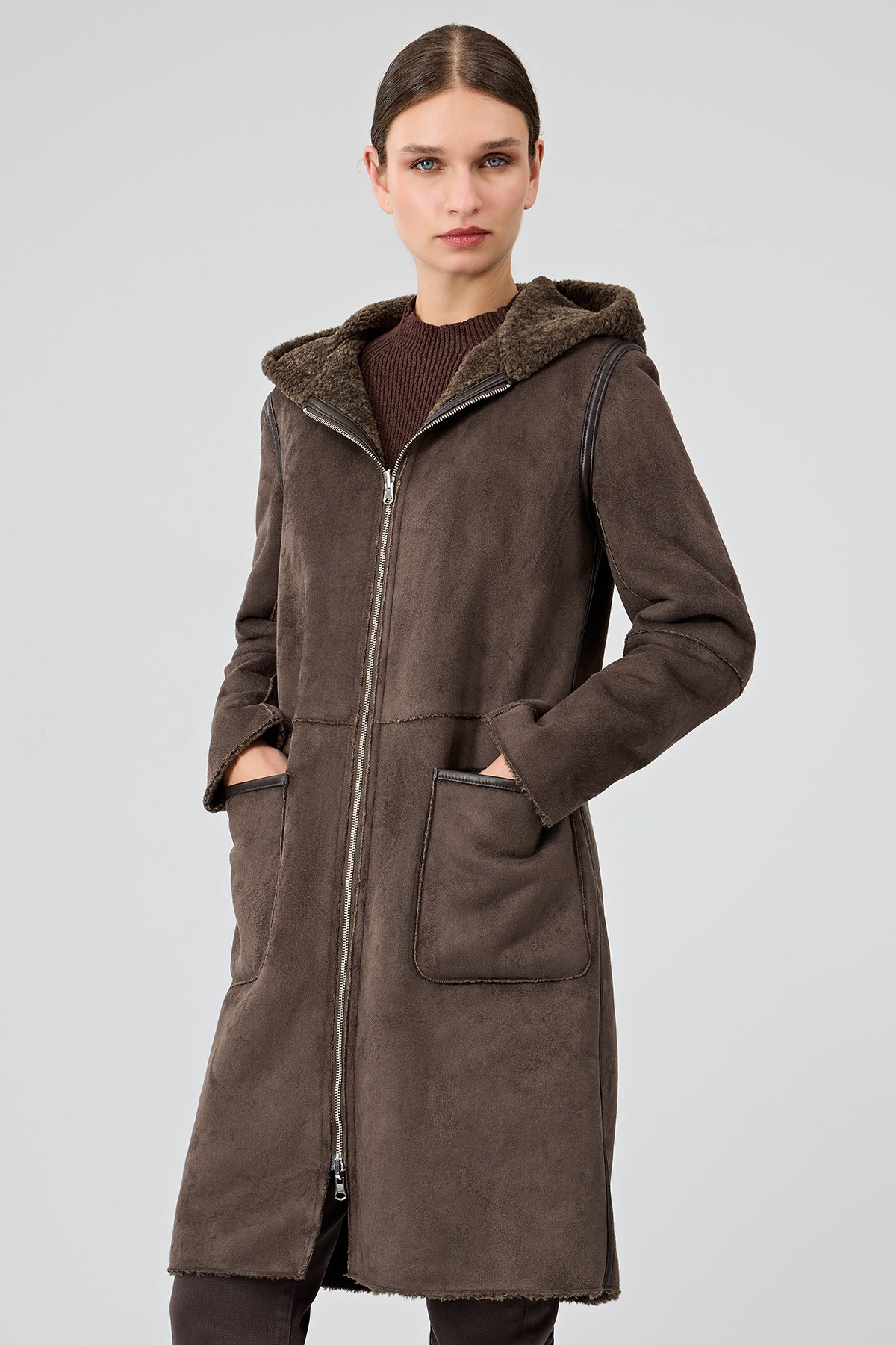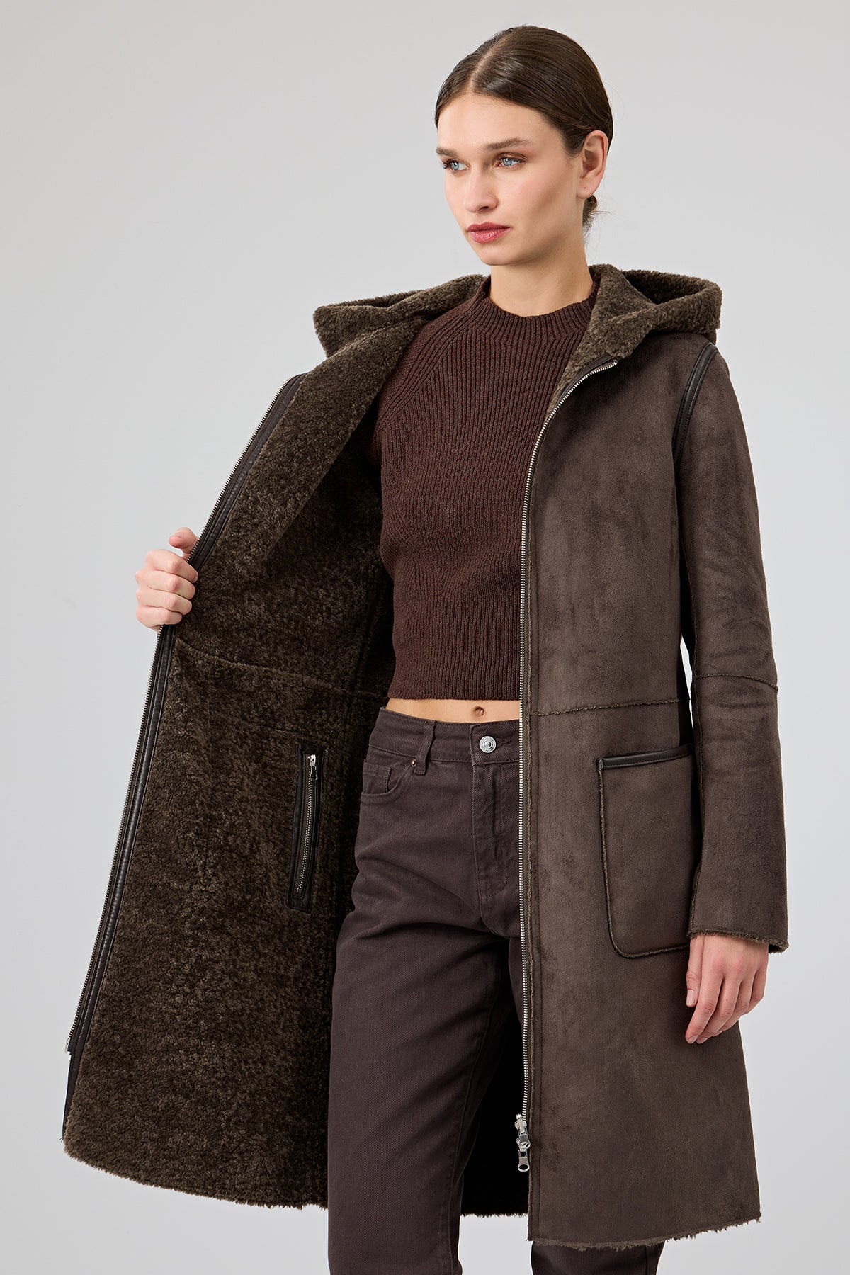 کت تدی زنانه قهوهای دوطرفه کلاهدار Fiorentini دری مد