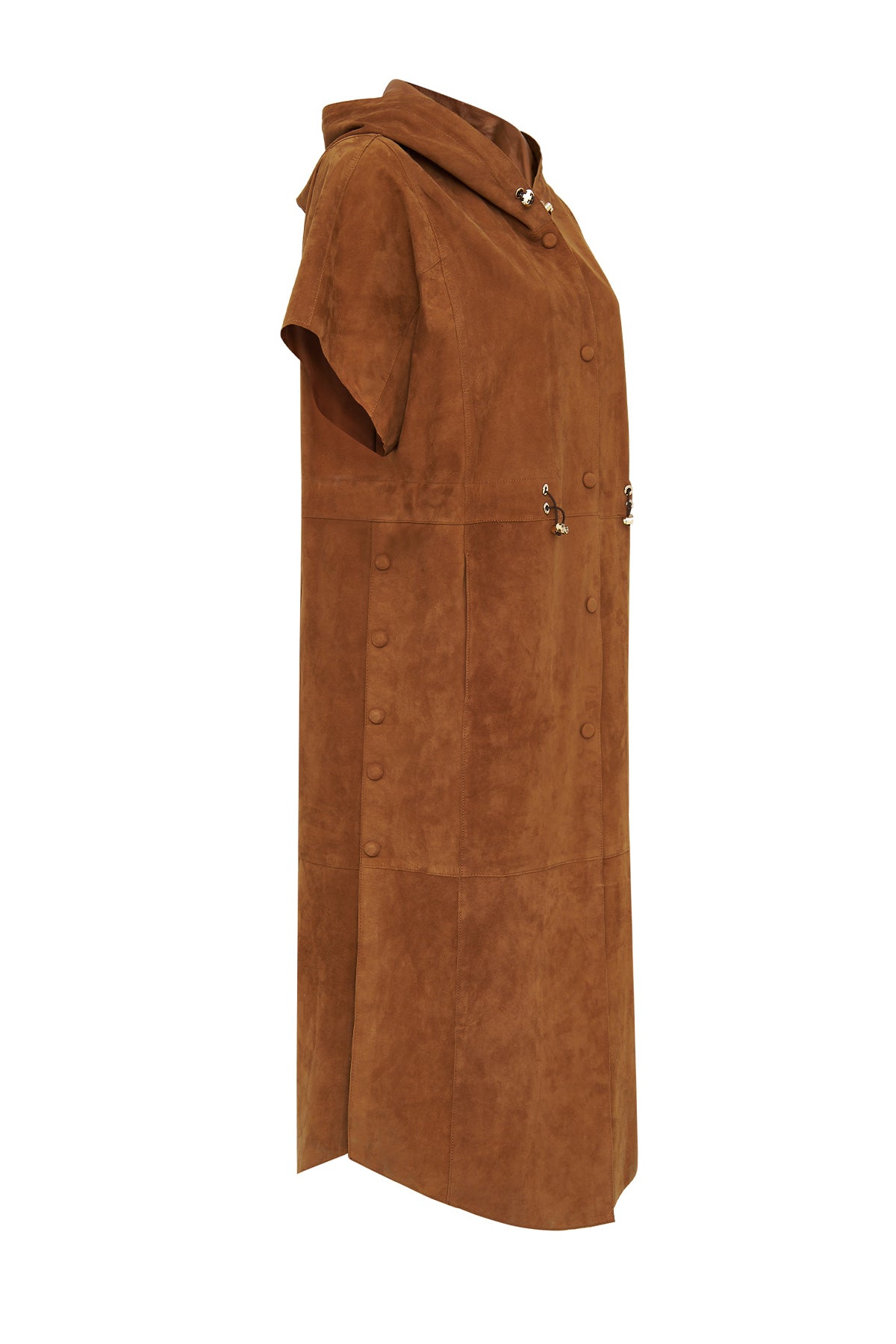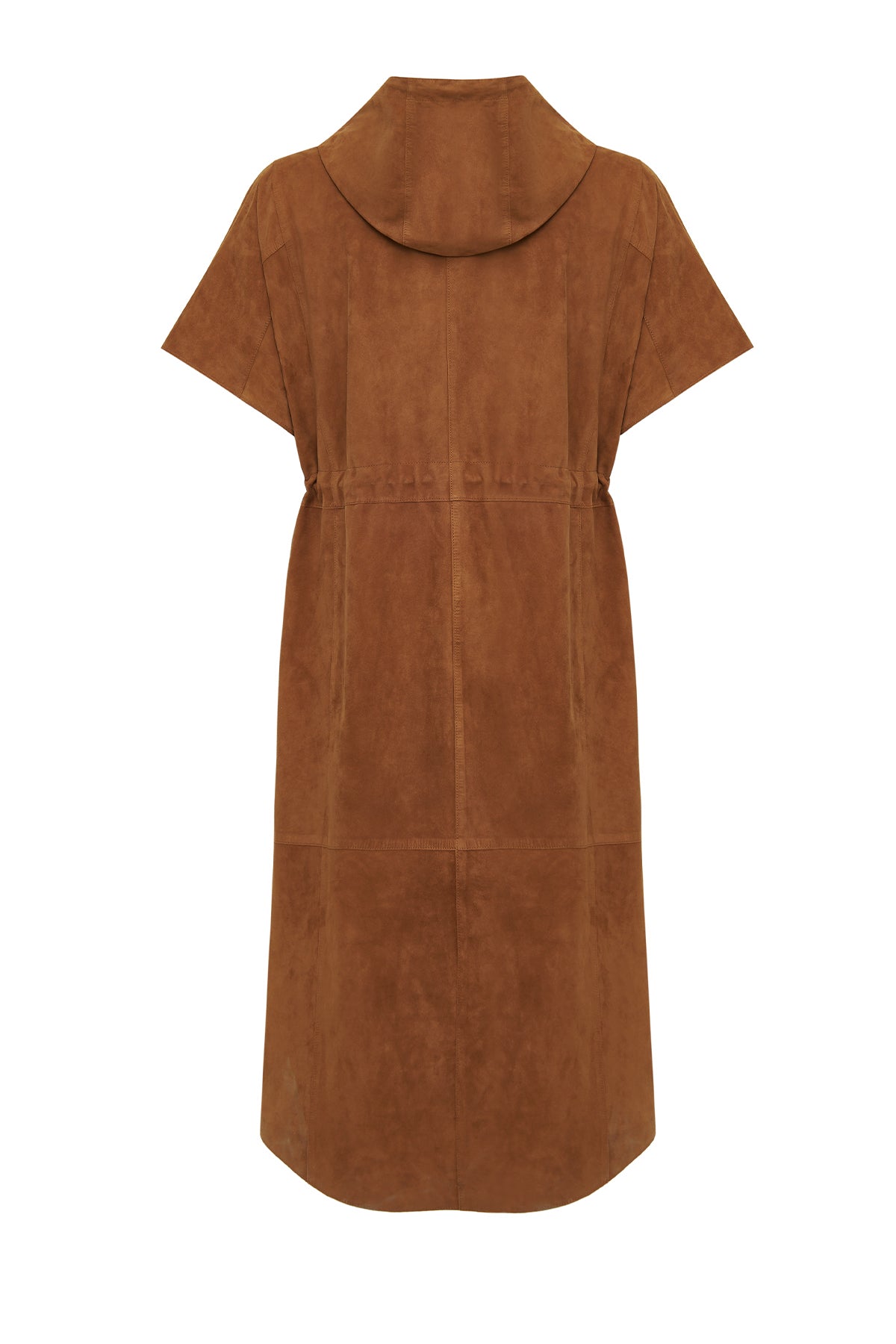 Miranda Kadın Kahverengi Kapüşonlu Süet Deri Uzun Yelek