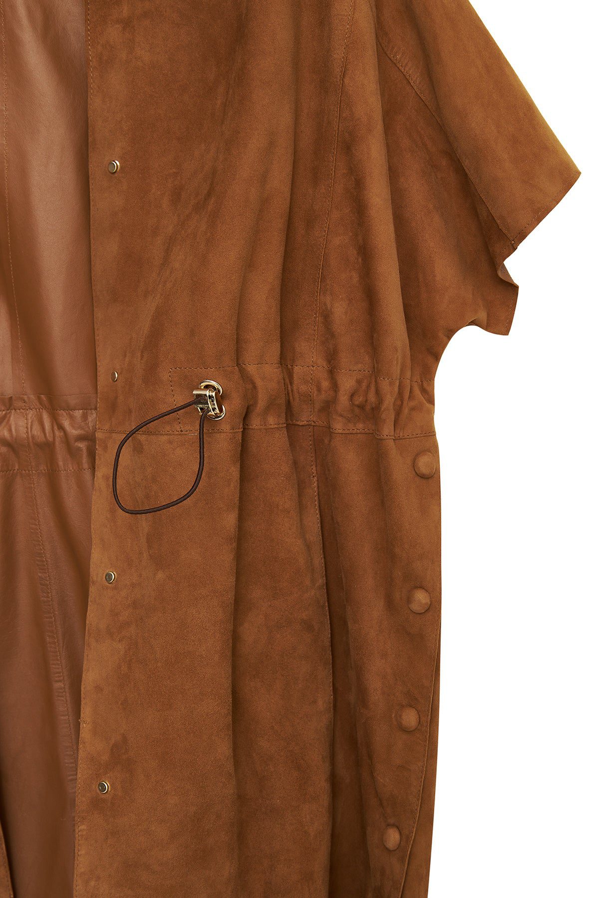کت چرم زنانه قهوهای کلاهدار جیر یقهدار بلند Miranda دری مد