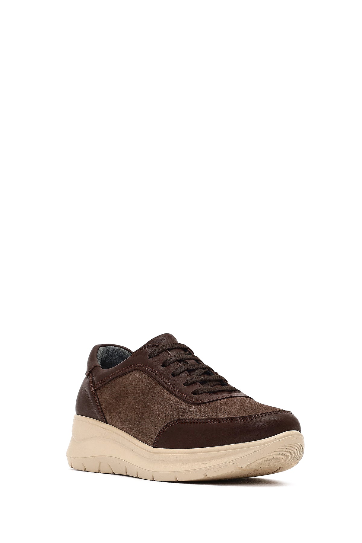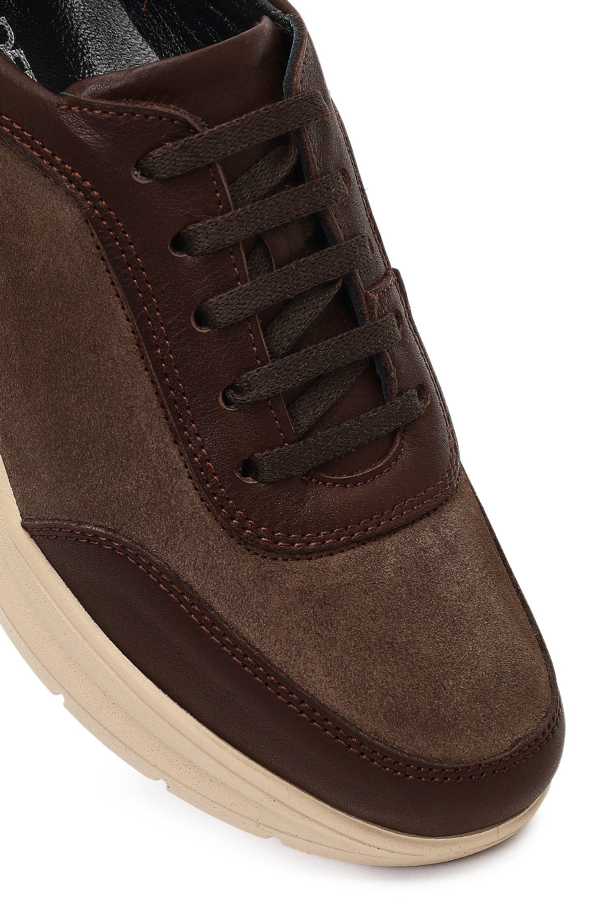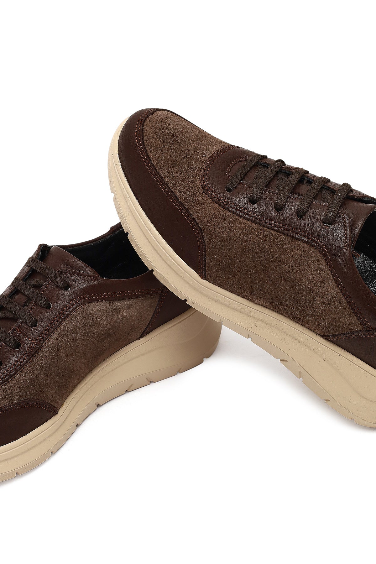 Kadın Kahverengi Bağcıklı Kalın Tabanlı Deri Sneaker