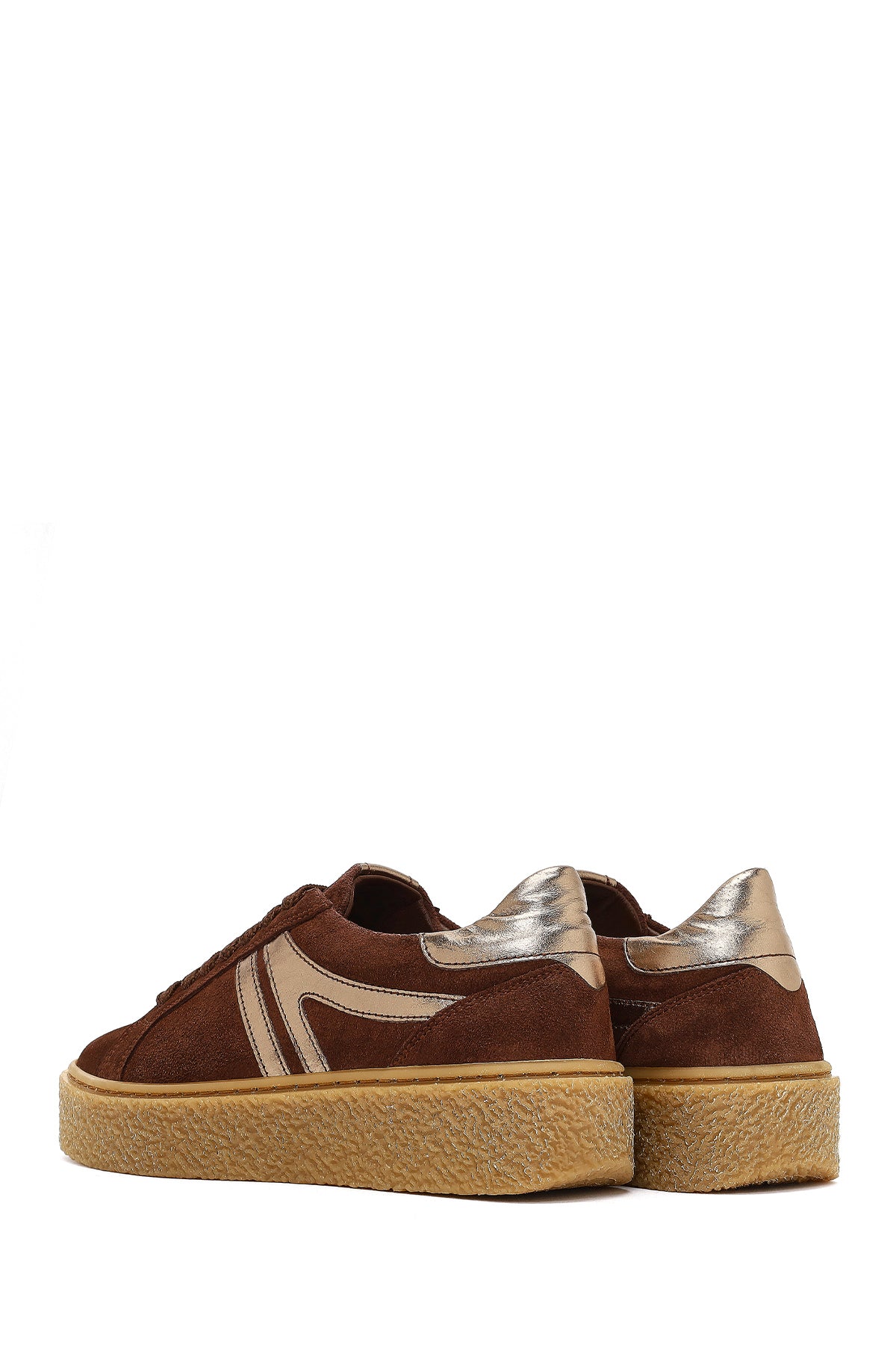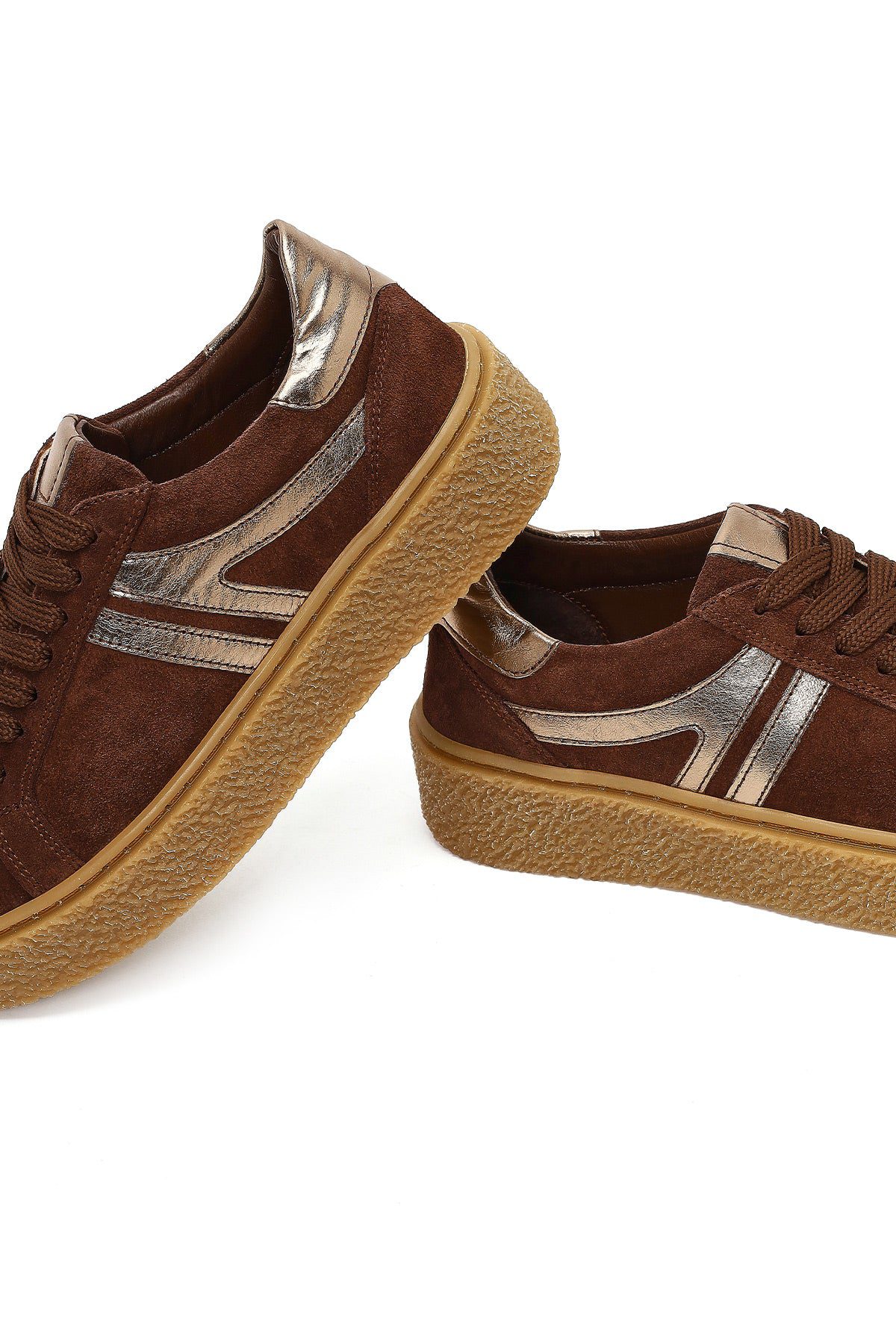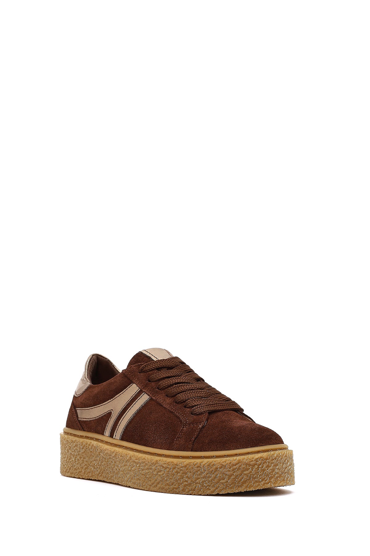 Kadın Kahverengi Bağcıklı Kalın Tabanlı Süet Deri Sneaker