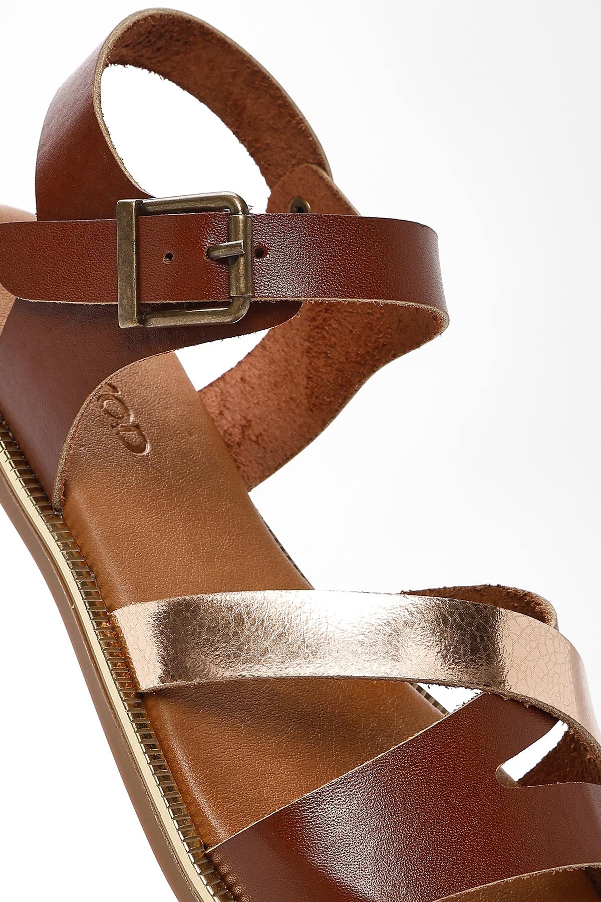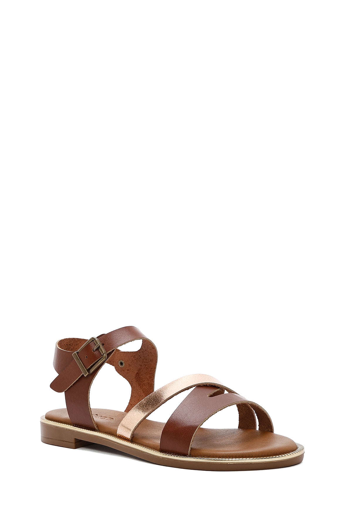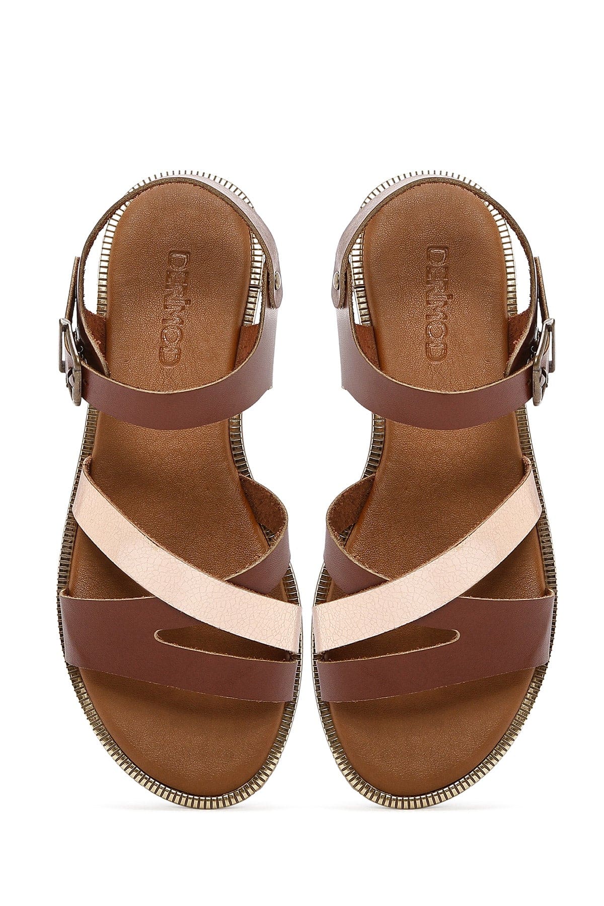 Kadın Kahverengi Bilekten Tokalı Deri Sandalet