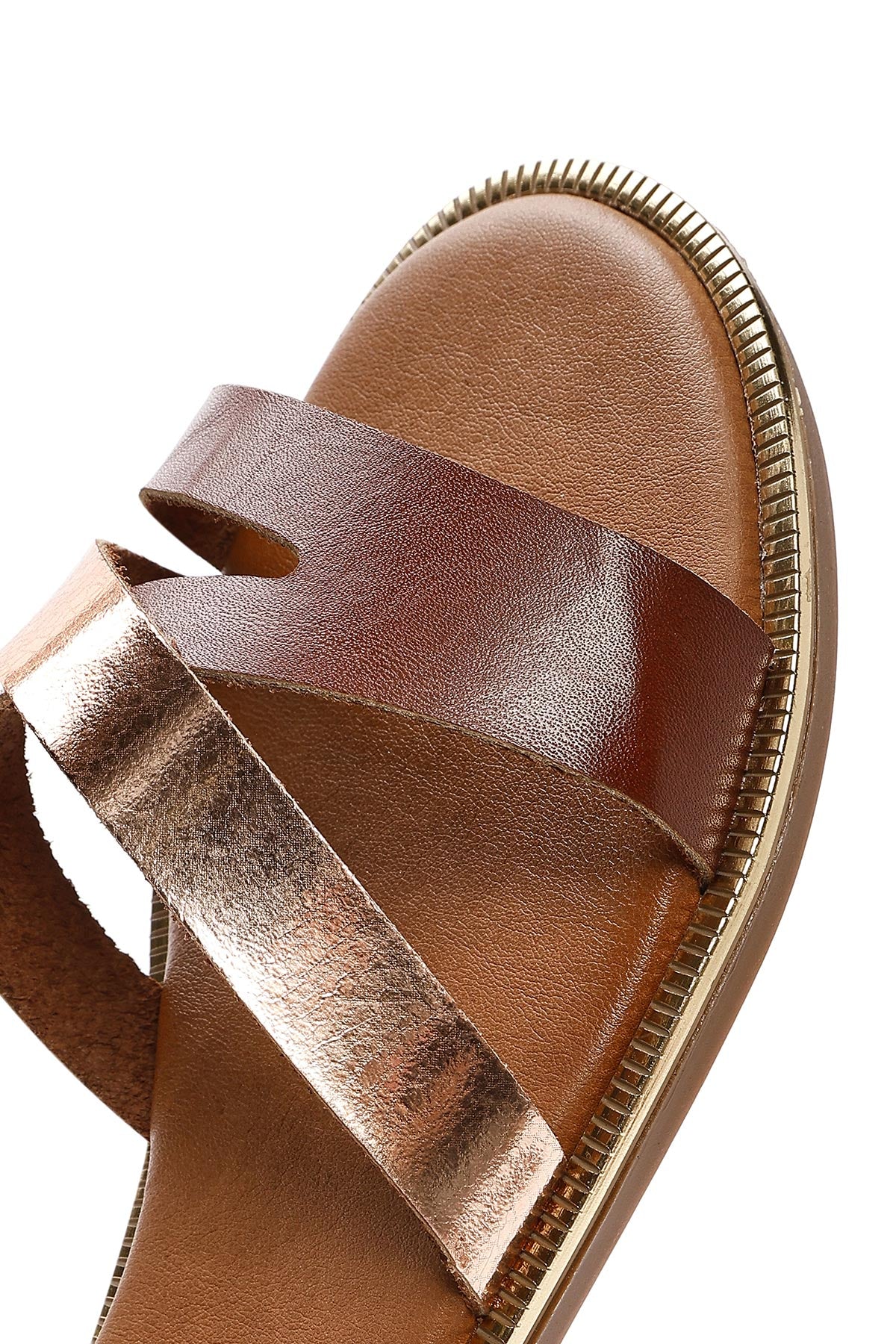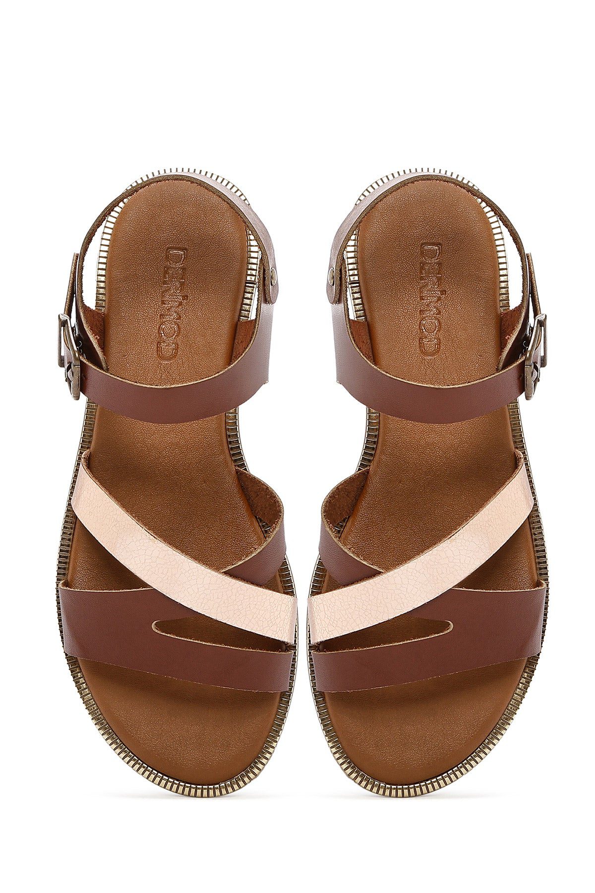 صندل زنانه قهوهای چرم بنددار دری مد