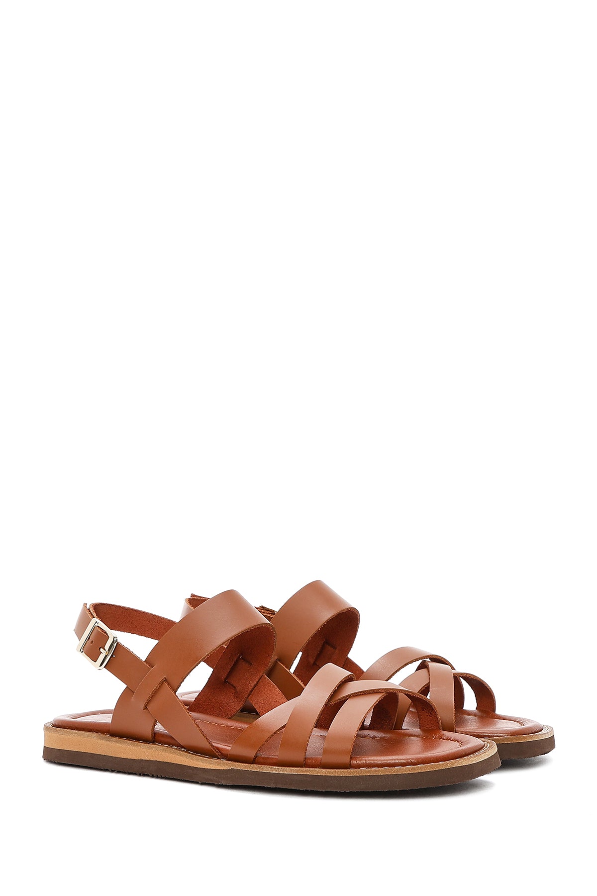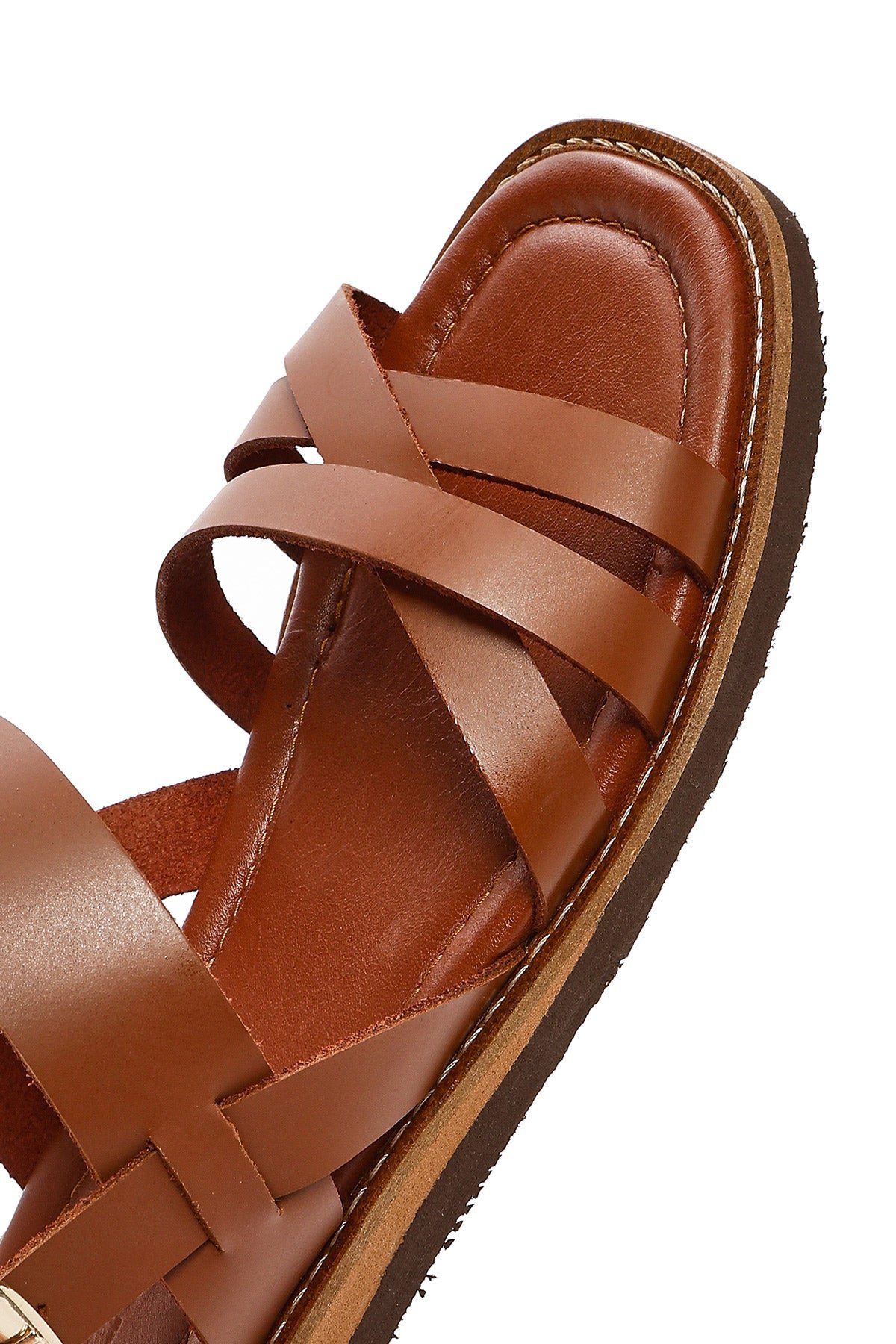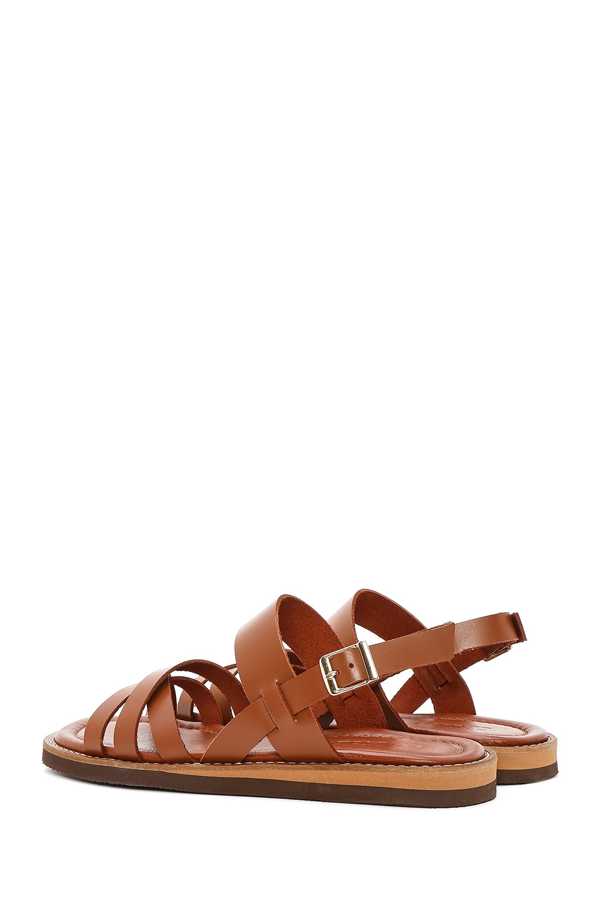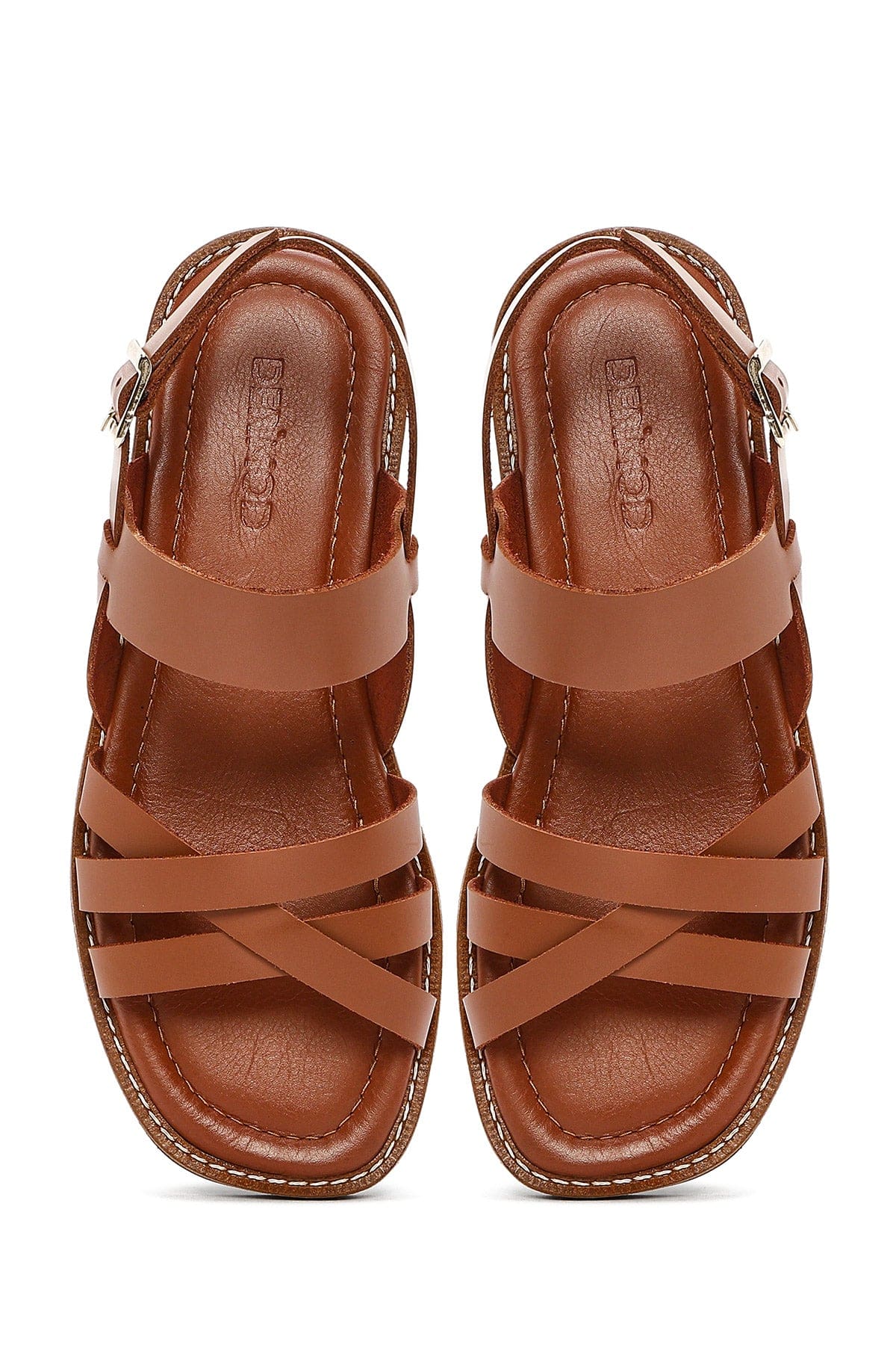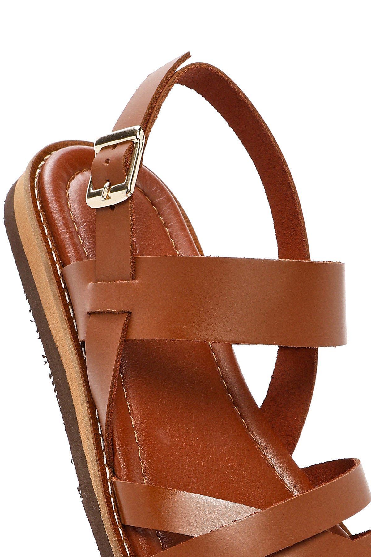 Kadın Kahverengi Bilekten Tokalı Deri Sandalet