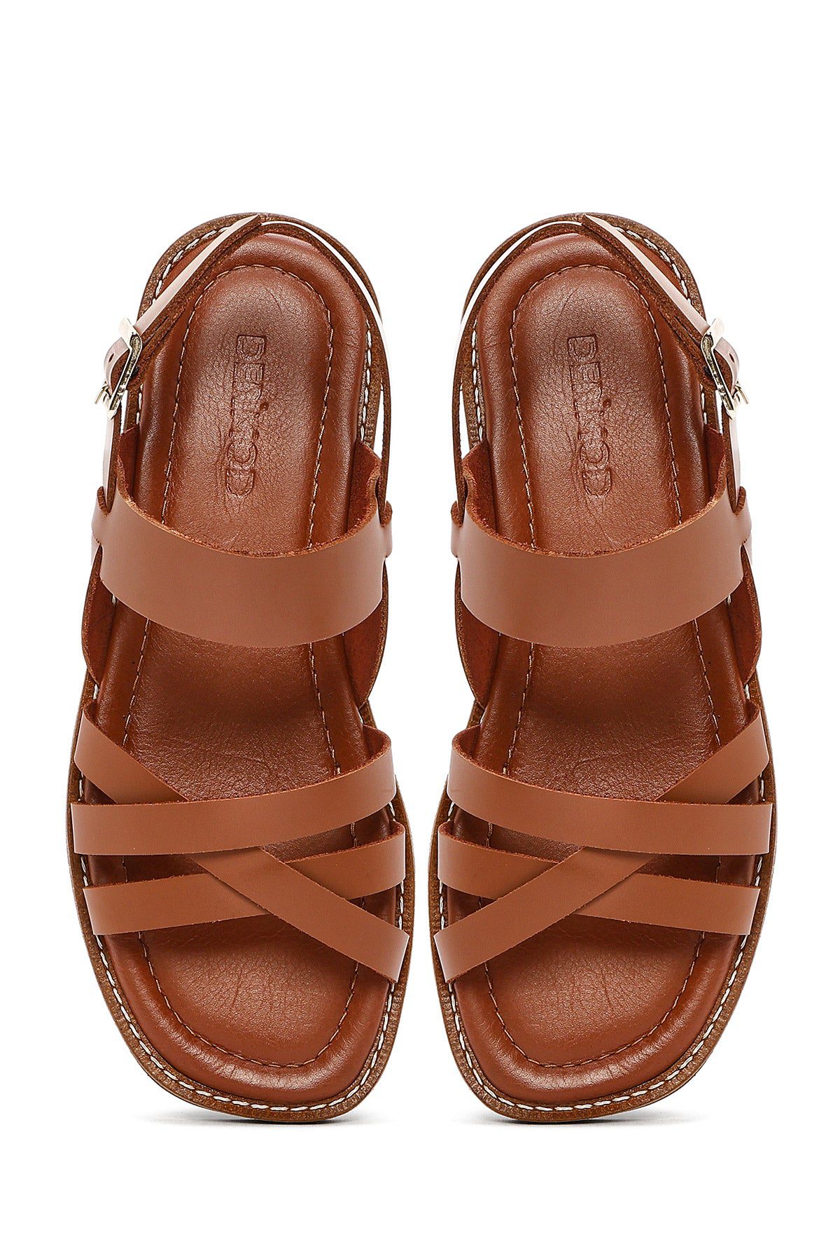 صندل زنانه قهوهای چرم بنددار دری مد