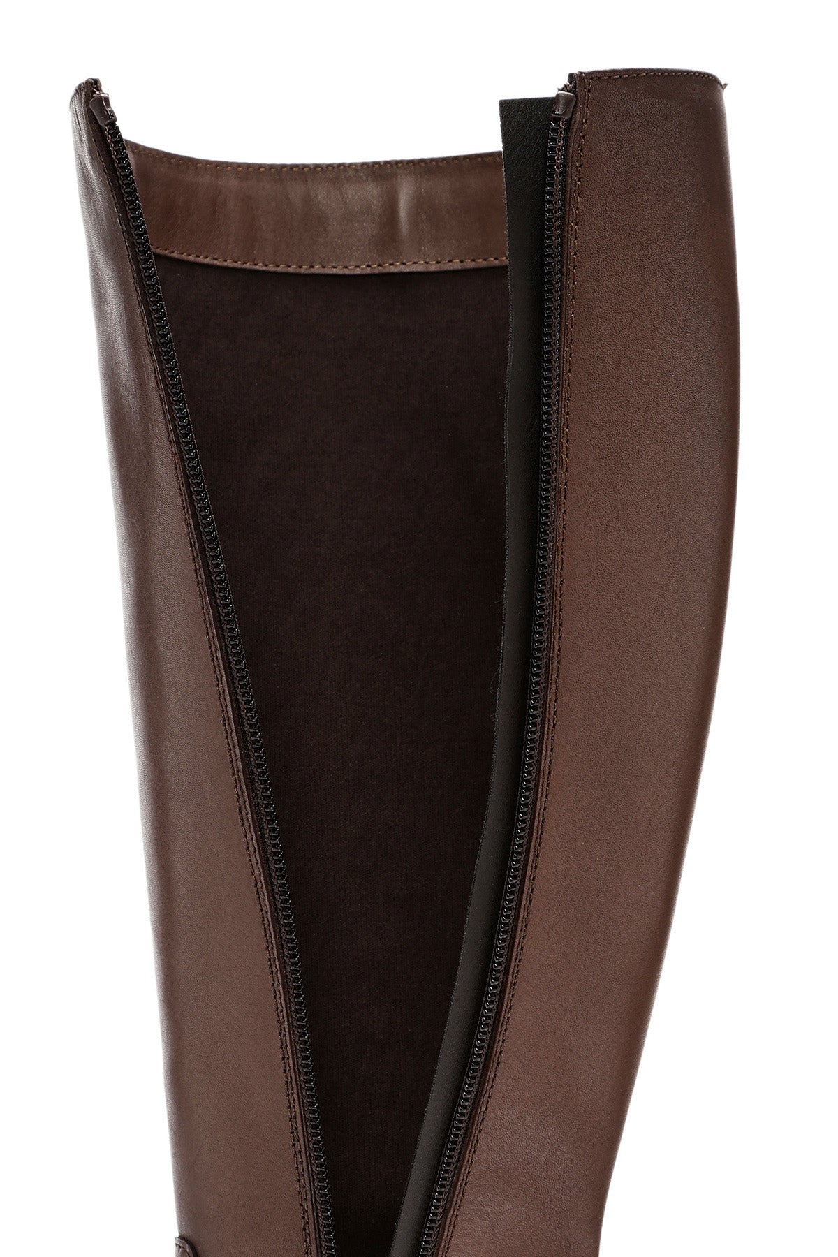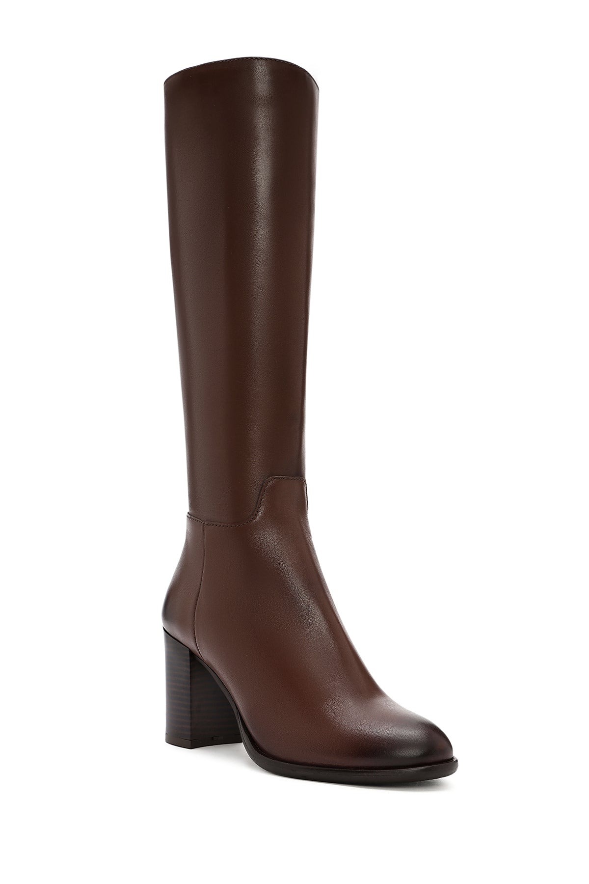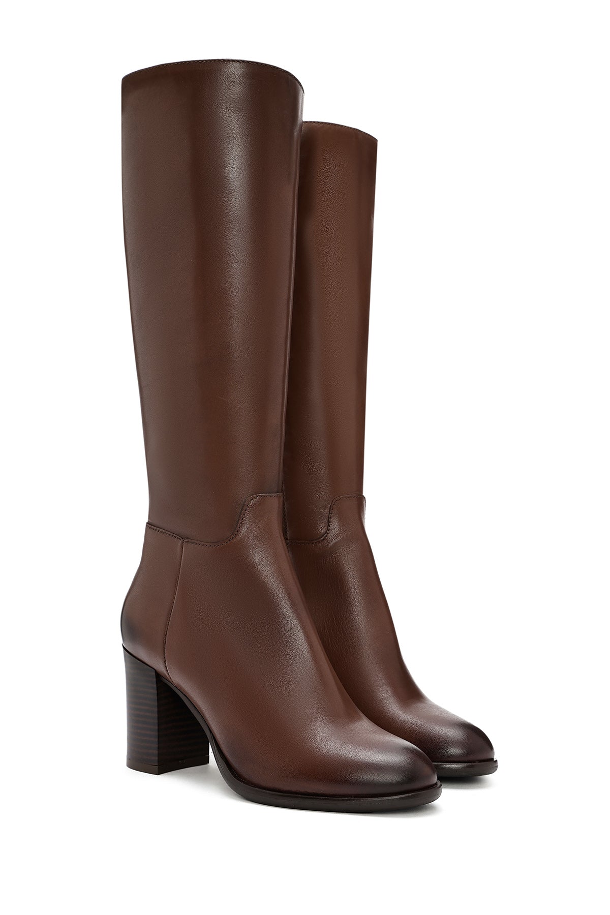 Kadın Kahverengi Fermuarlı Kalın Topuklu Deri Çizme