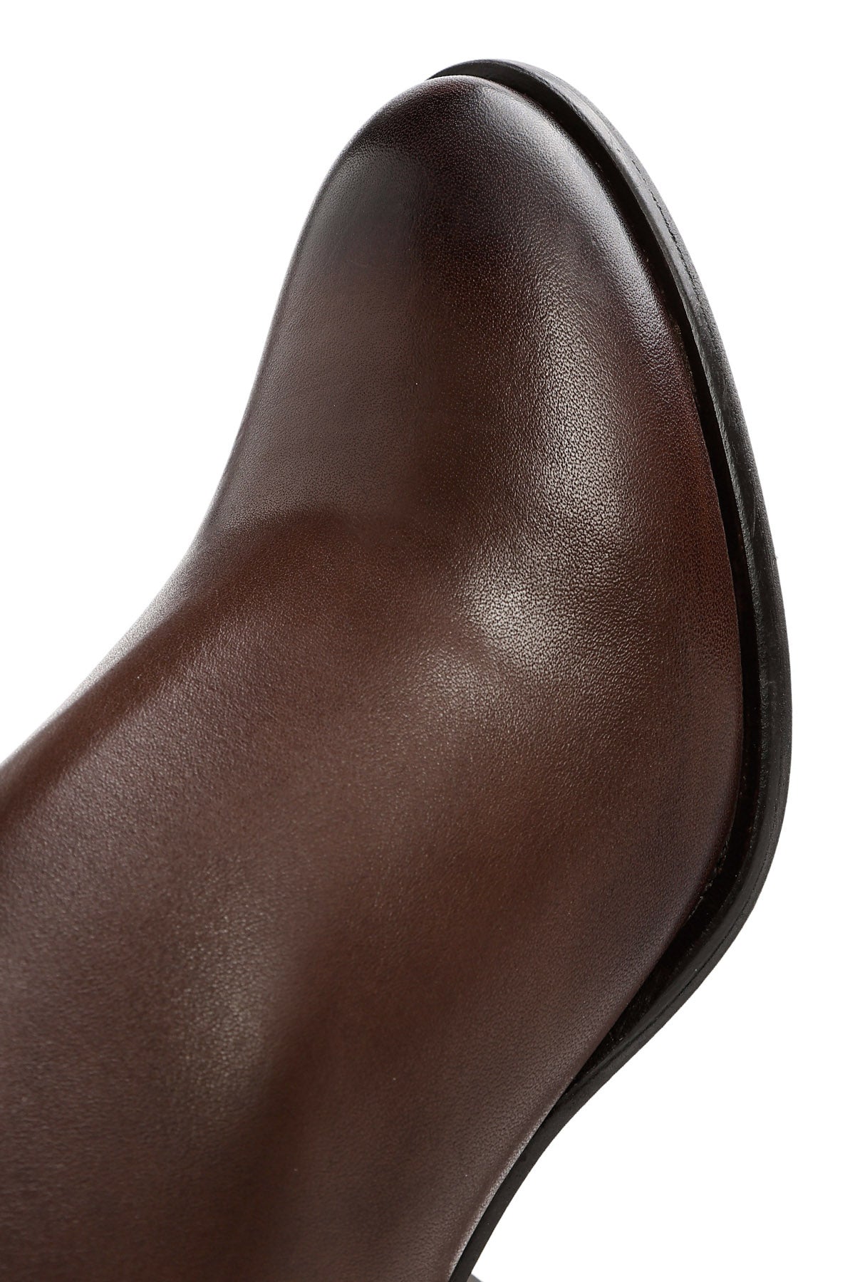 چکمه زنانه چرمی قهوهای پاشنهبلند ضخیم زیپدار دری مد