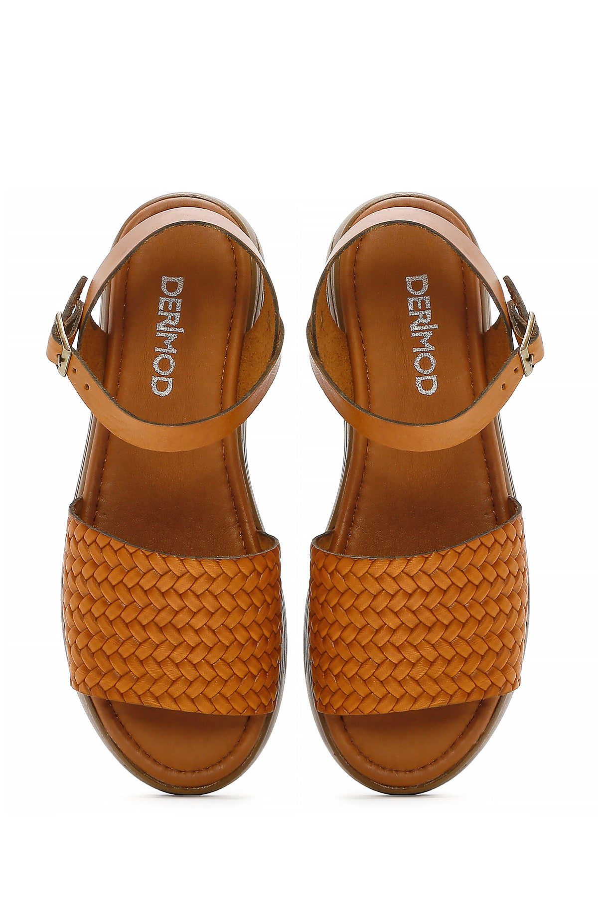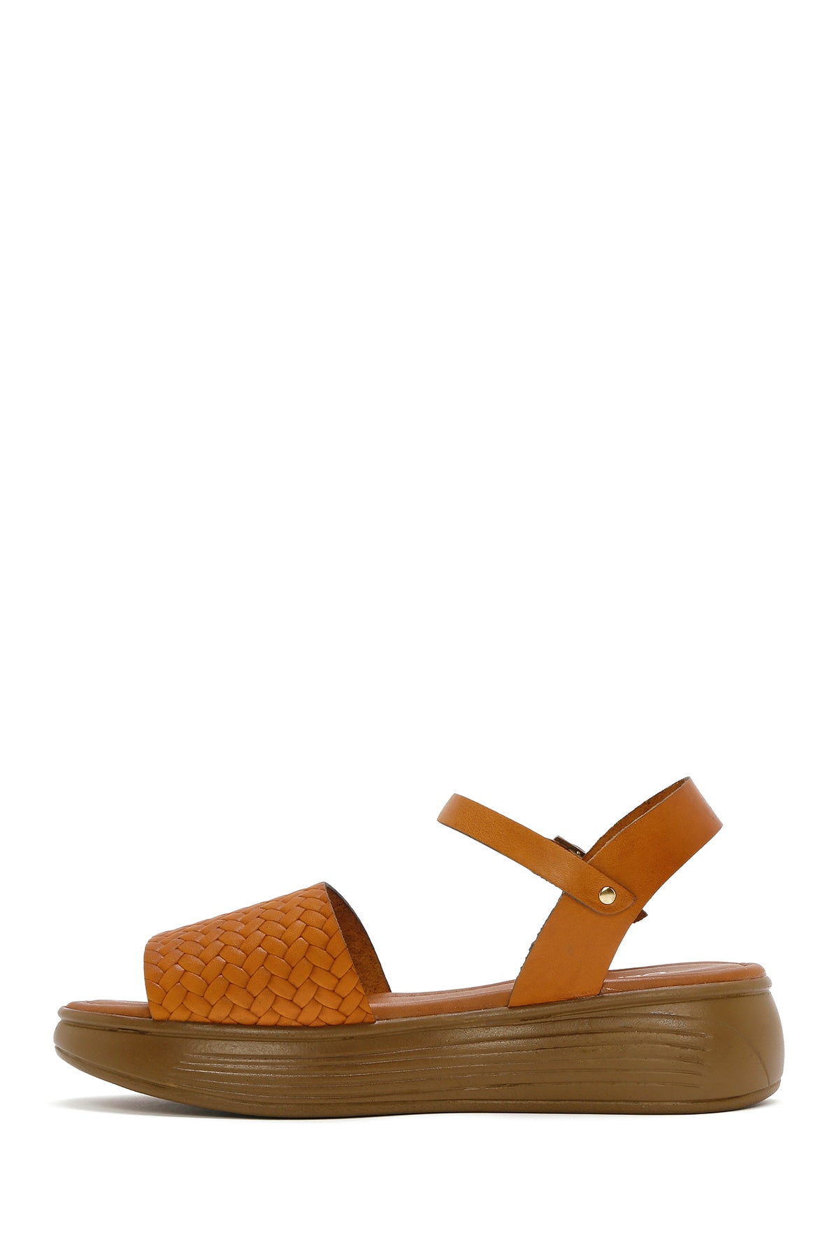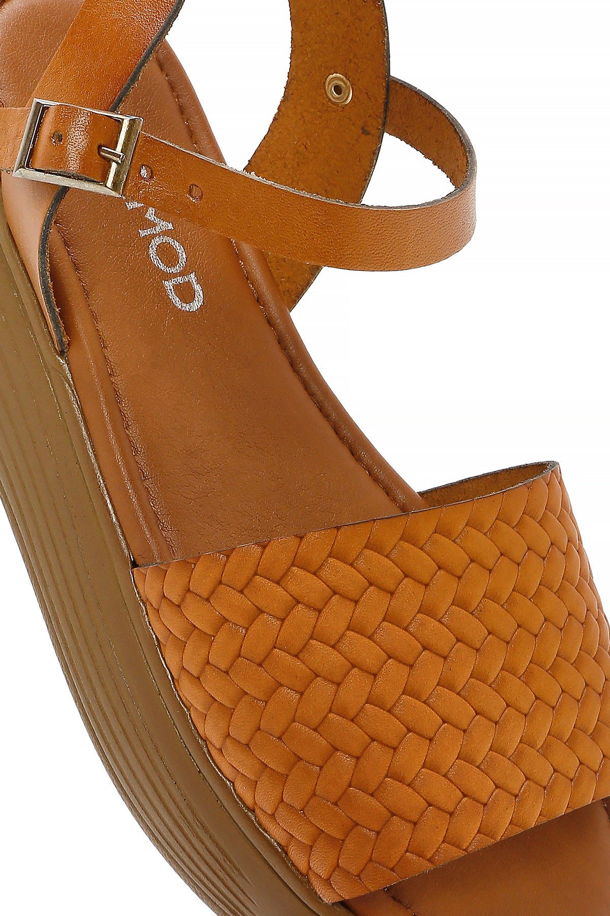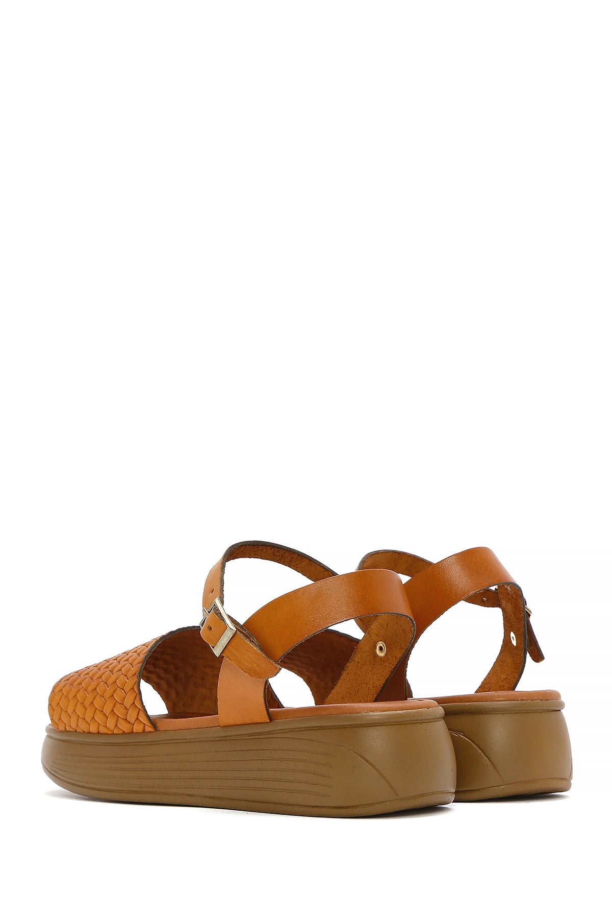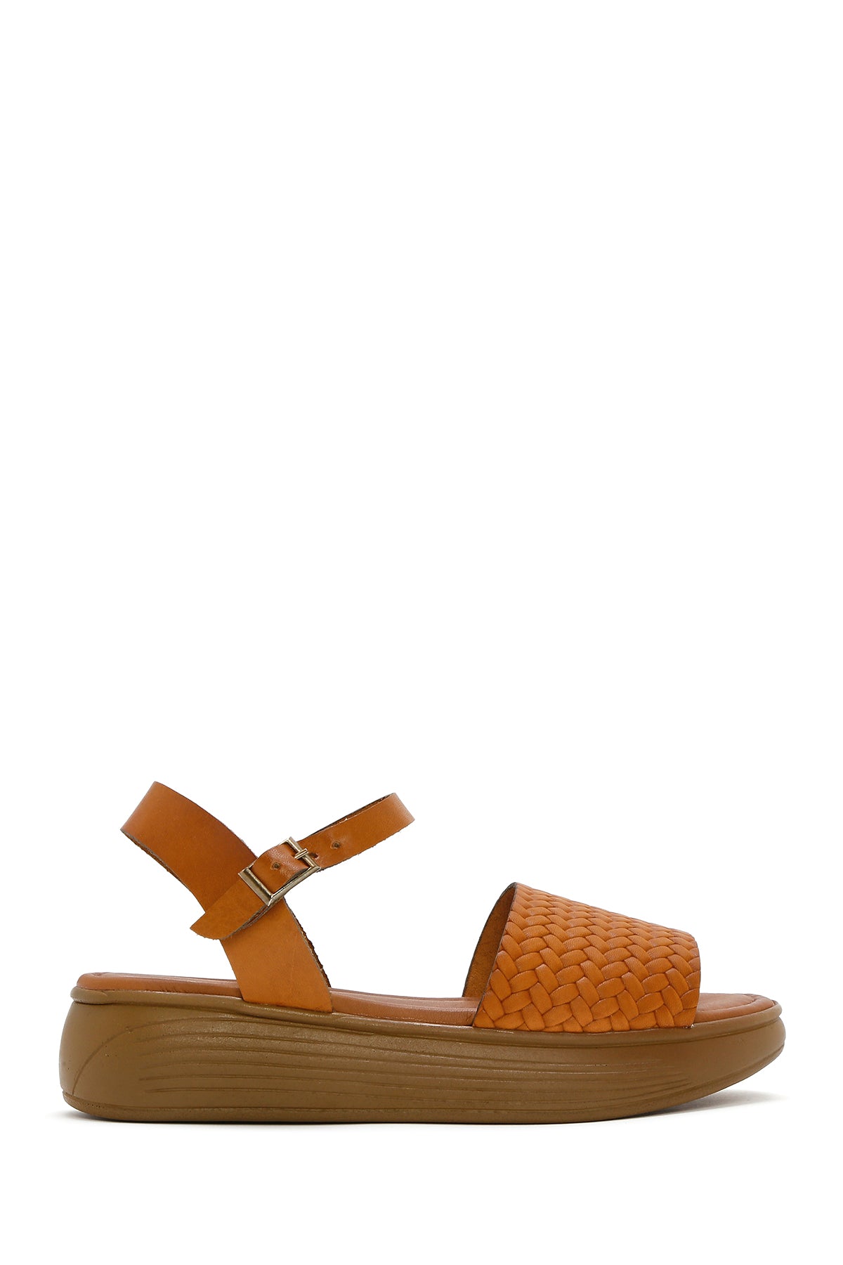 Kadın Taba Bilekten Bağlamalı Örgülü Kalın Tabanlı Deri Sandalet