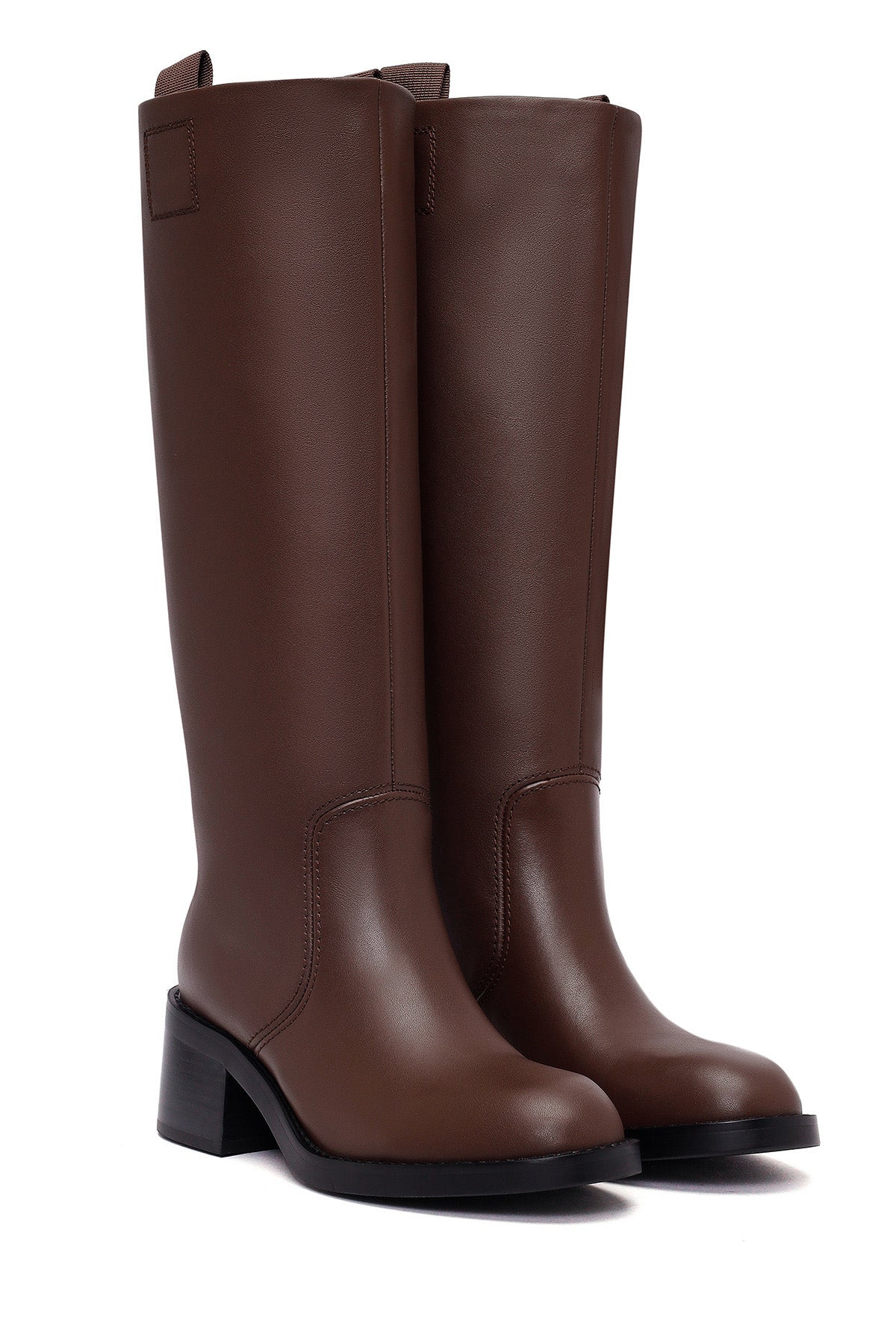Kadın Kahverengi Kalın Topuklu Deri Çizme